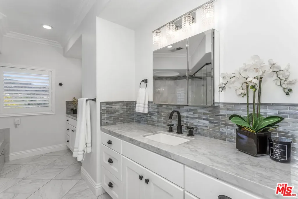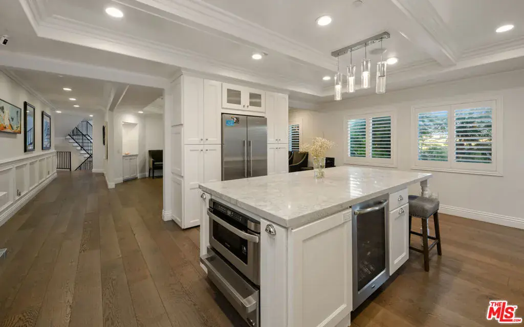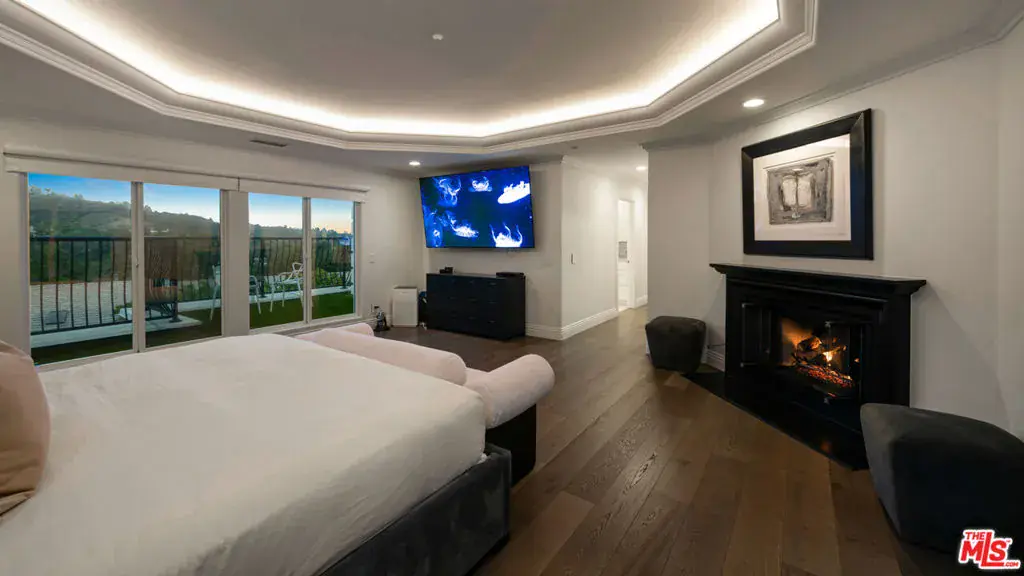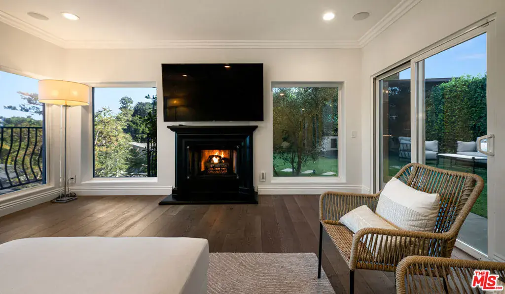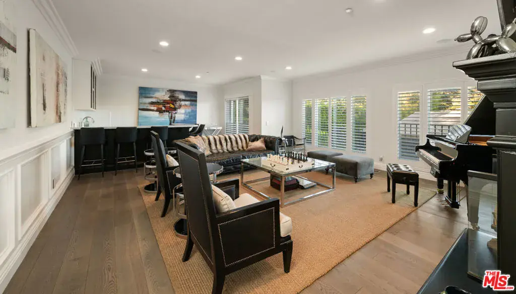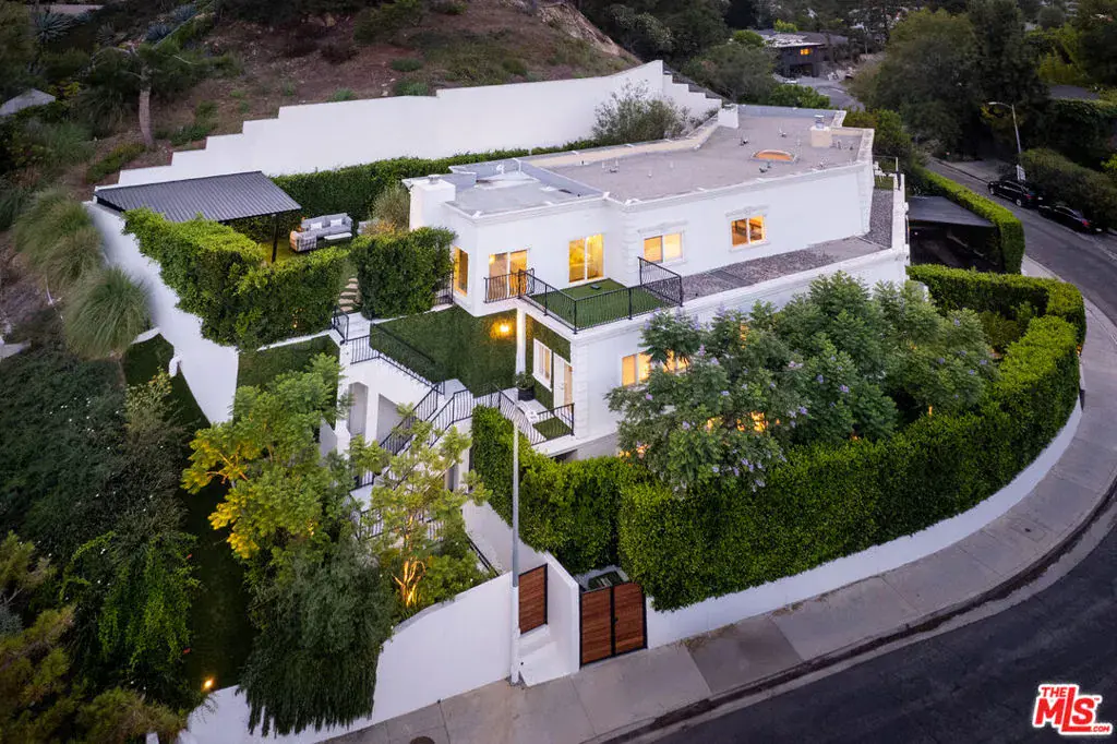 Wonderfully expansive Mediterranean-style home uniquely sited at an east-west curve on Banyan Drive in Mandeville Canyon. Three stories, with a double-height entry, 2209 Banyan boasts vast entertainment spaces, many with grand ebony-colored fireplaces, the formal living room is host to a custom-built marble-topped wet bar, elegant coving, wainscoting, and banks of modern bespoke shuttered windows. The family room with tray ceiling leads to a beautifully appointed chef’s kitchen with 60″ dual oven range, wine cooler, generous pull-up island, and access to outside. This bright 5-bedroom, 5-bathroom home has undergone a comprehensive list of renovations and upgrades with unmatched quality throughout; no corner of this stand-out property or grounds has been left untouched. Many of the bedrooms feature fireplaces, large closets, detailed ceilings, and walk-out balconies, some with city or mountain views. En-suite features include marble floors and vanities, as well as a combination of stand-alone bathtubs and walk-in showers. Privacy abounds in the unique tiered gardens, with vignettes that house a hot tub, red-light sauna, sheltered seating, and an outstanding pavilion over an outdoor kitchen with counter-height dining for eight and wall-mounted TV, perfect for viewing parties and sports events. Other standout features include an elevatorrecently serviced and wallpaperedan Lutron Smart lighting system (app-controlled), electronic blinds in the primary suite, and a three-car garage with Tesla charging station. This home is close to the Westridge Trailhead, a paradise for hikers and bikers alike, and is situated in a quiet, notable neighborhood of Brentwood