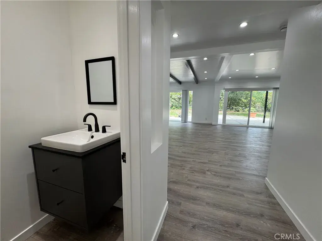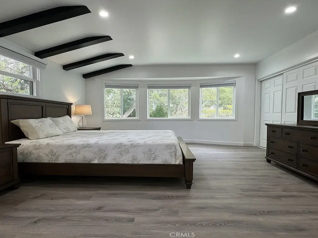 Upper Bel Air | 3 Bed, 2.5 Bath | EV Charging | Garage | Backyard | Roscomare School District This beautifully updated 3-bedroom, 2.5-bath residence blends timeless post-and-beam architecture with thoughtful modern upgrades. Clean lines, expansive windows, and an open-concept design create a seamless connection between indoor comfort and outdoor living. The sunlit living room highlights dramatic exposed wood beams and luxury vinyl plank flooring, with sliding glass doors opening to a spacious patio, perfect for relaxed gatherings or effortless entertaining. The renovated kitchen and bathrooms feature custom fixtures, quartz countertops, and vanities, balancing contemporary finishes with the home’s original architectural character. The generous primary suite includes exposed beams, recessed lighting, and a large closet. Additional features include a garage with EV fast charging and ample storage. Central air conditioning and heating will keep you comfortable. Located within Roscomare Elementary School District, offering easy access to both the Valley and the Westside.