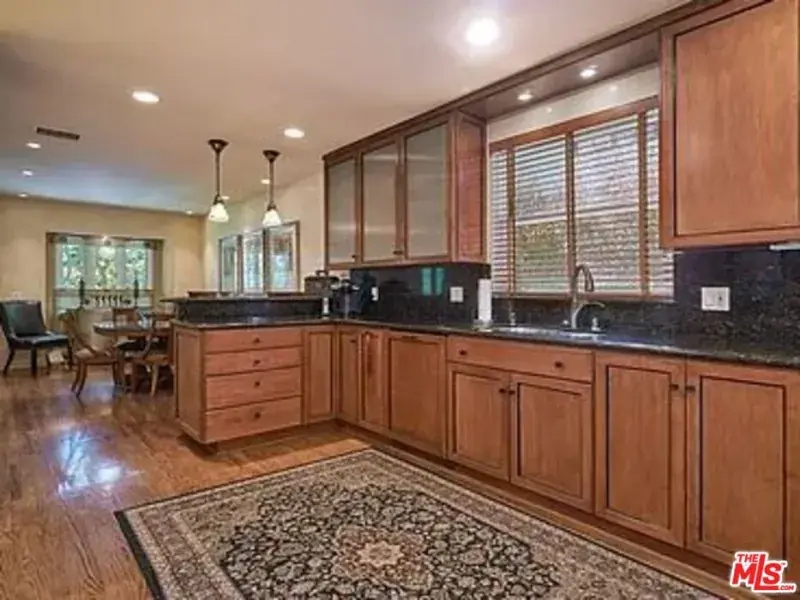 This 2BD/2BA ~2,000 sqft traditional home is located in the highly-desirable neighborhood of Beverlywood. Step through a double-door into a foyer which leads to an impressive living room with dramatic vaulted ceilings, skylights, recessed lighting, French doors, and gleaming hardwood floors. Venetian plaster lines most walls and allows light to reflect from one room to another. A spacious kitchen showcases stainless-steel appliances, custom-made cabinets, and granite counter tops. A dining area is adjacent to the kitchen, as is a laundry room. The master bedroom has a travertine fireplace, floor-to-ceiling windows, and a walk-in-closet. Master bath has dual sinks, spa tub, water closet, and an oversized step in shower. Another large bedroom (with access to a bathroom) has French doors to the backyard. The backyard area is a “secret garden”-like setting with lush, colorful vegetation and a soothing fountain.
