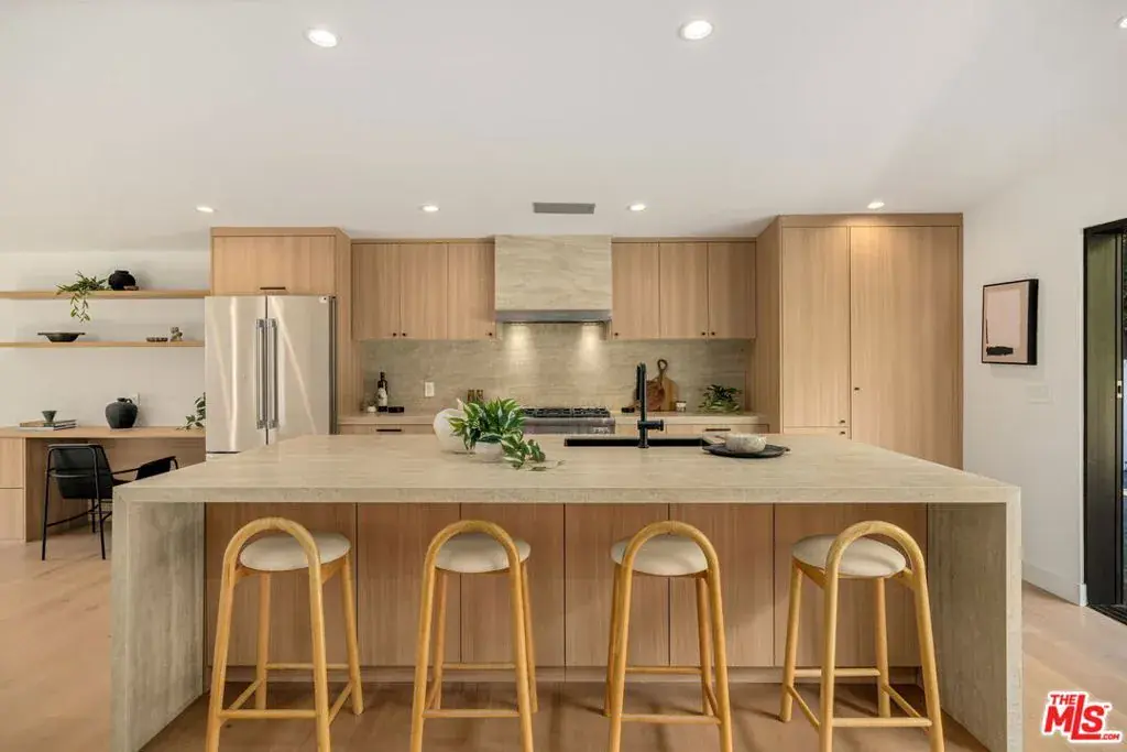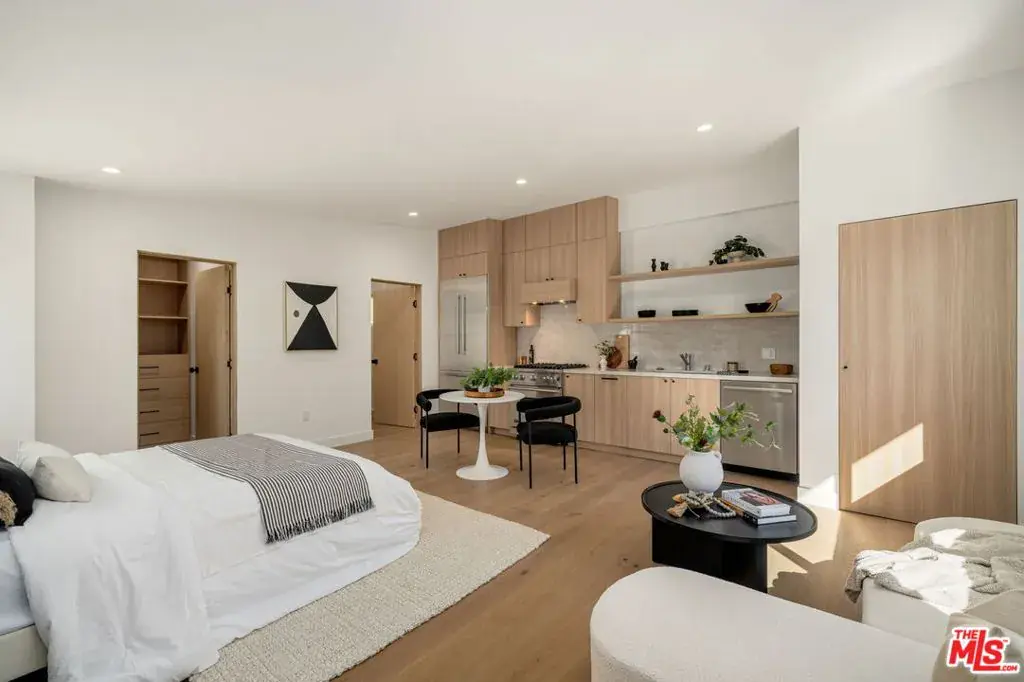 Introducing a rare ultra-luxury modern retreat in the Hollywood Hills, thoughtfully designed with no expense spared. This fully reimagined compound features a 2-bedroom, 2-bath main residence complemented by a separate, fully permitted 1-bedroom, 1-bath ADU offering exceptional privacy and versatility. Blending refined architecture, premium finishes, and seamless functionality, the property is designed for today’s most discerning buyer. The main residence showcases meticulous craftsmanship throughout, highlighted by wide-plank Carrara hardwood flooring, hand-plastered detailing, and a dramatic plaster fireplace that anchors the living space. The designer kitchen serves as a true centerpiece, featuring custom cabinetry, an oversized island, honed Taj Mahal stone surfaces, and a full suite of high-end Thermador appliances, perfectly suited for both everyday living and elevated entertaining. Expansive sliding glass doors open on both sides of the space, creating effortless indoor-outdoor flow and an ideal setting for al fresco dining under the stars. Down the hall, spa-inspired bathrooms impress with custom plaster finishes, luxury stone countertops, and elevated hardware selections. Thoughtful details throughout the home include custom closets, surround sound, recessed lighting, and integrated climate features that enhance comfort and sophistication. The spacious primary suite offers a private outdoor retreat and a luxurious ensuite bathroom complete with a double vanity, a large walk-in shower with dual Axor shower heads, and a generously sized walk-in closet with custom lighting. The permitted 1-bedroom, 1-bath ADU features its own address and separate entrance delivers exceptional flexibility with a high-end kitchen, premium appliances, modern finishes that match the main residence, and a custom walk-in closet, making it ideal for rental income, guests, or a private office. Multiple outdoor spaces are designed for low-maintenance living and entertaining, featuring mature drought-tolerant landscaping, desert-inspired design elements, a sleek fire fit w a dedicated pre-plumbed gas line, an epoxy-finished concrete yard, and a large grassy area perfect for relaxation. Driveway with parking for three cars! Enhanced with modern security and smart entry features, this turnkey property offers luxury without compromise. A truly one-of-a-kind opportunity to own a private modern compound in the Hollywood Hills, offering exceptional quality, flexibility, income potential, and elevated Los Angeles living. This rare offering is not to be missed!