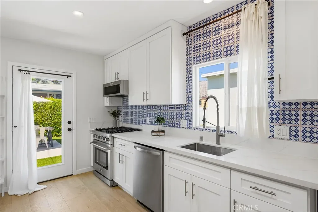 Discover this beautifully updated gated home with an ADU, ideally situated in the highly sought after Highland Park neighborhood. Offering exceptional versatility, this four bedroom, two bath property presents a rare opportunity for multi-generational living, rental income, or a private guest retreat. Step inside the main home and experience a thoughtfully designed interior featuring wide plank wood style flooring in a white oak tone, designer lighting, plantation shutters, and custom window treatments. Expansive windows throughout flood the home with natural light, enhancing the warm yet modern aesthetic. The updated kitchen is both stylish and functional, showcasing white shaker cabinetry, gorgeous cement toned quartz countertops, a classic subway tile backsplash, and stainless steel appliances. The dining area is highlighted by a charming bay window, adding architectural character and complemented by a contemporary statement chandelier. The main home’s bath has been tastefully remodeled with a dual-sink vanity with marble counters and a beautifully designed tub and shower combination featuring elegant tile work. The ADU mirrors the home’s cohesive design with an open floor plan and could be a one bedroom or studio! You will love the ADU’s own well-appointed kitchen, complete with white shaker cabinetry, stainless steel appliances, and light quartz countertops. The secondary bath offers dual vanities and an oversized walk-in shower with refined tile finishes. Outdoors, enjoy a private, low-maintenance yard designed for both relaxation and entertaining, featuring artificial turf, mature succulents, and multiple seating areas. Additional highlights include a single-car garage and an extended driveway for ample parking. Modern upgrades include energy-efficient windows, updated plumbing, a newer sewer line, mirrored closet doors, upgraded insulation, separate addresses, a newer roof, individual AC systems, and an upgraded electrical panel. Ideally located near award-winning schools and just moments from Highland Park’s vibrant dining, shopping, and exciting future developments!