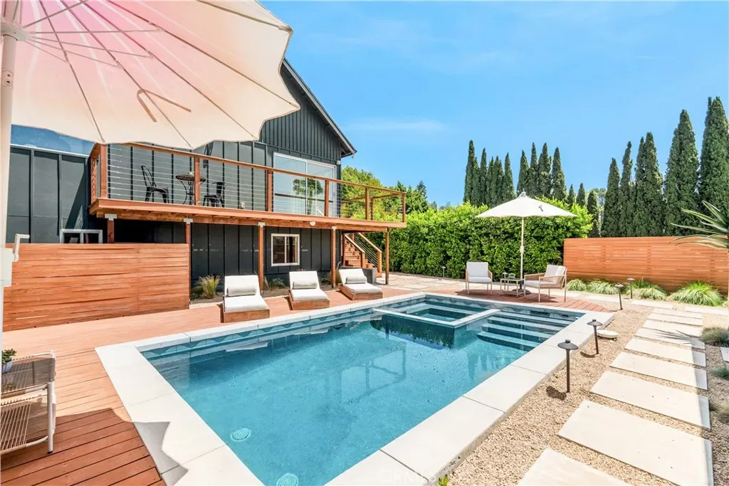 SFR + ADU + POOL + VIEWS! Welcome to 2238/40 Ewing St, a stunning modern retreat that combines high-end design, smart technology, and resort-style living in one beautifully appointed property. Featuring vaulted ceilings, skylights, custom finishes, and white oak flooring throughout, the home is equipped with keyless Yale locks, a Vivint security system, and an Nest thermostat for ultimate comfort and peace of mind. The chef’s kitchen boasts top-of-the-line Thermador appliances, a wine fridge, terrazzo countertops, a stainless steel farmhouse sink, and a spacious island with seating. The luxurious primary suite offers downtown LA skyline views, pool access, a walk-in closet, and a spa-like bath with dual rain showers and WinZo sinks. Additional highlights include a Jack and Jill bathroom for guest rooms, a detached ADU with full kitchen and in-unit laundry, a versatile office/pool room, and a loft ideal for a playroom, studio, or meditation space. Outdoor living shines with a pool, spa, Brazilian redwood decks, and multiple lounge and dining areas—all behind a gated driveway with parking for up to four cars. Located in the heart of trendy Silver Lake, you’re just minutes from some of LA’s best restaurants, boutique shopping, weekly farmers markets, and the vibrant energy of Sunset Junction. You just have to see it for yourself!