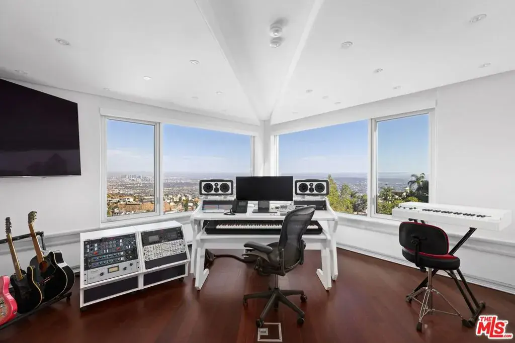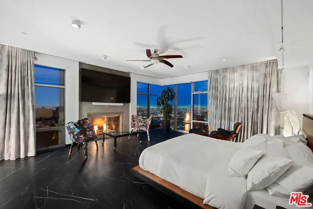 *** Skycastle has been reduced for a summer rental at $300,000 from June 1st-August 31st, 2025. Extended lease options available upon request.*** Welcome to Skycastle, a breathtaking architectural masterpiece designed by David Lawrence Gray, AIA, nestled in the Hollywood Hills. Previously enjoyed by celebrities, this stunning 12,000 sq ft home sits atop a privately gated half-acre promontory, offering 270-degree views from downtown to the Pacific Ocean. The elegant open floor plan features a spacious living area that flows into a gourmet kitchen designed by the Porsche Design Group, equipped with top-of-the-line stainless steel appliances (4 Miele Ovens, Miele Cook Top, Sub-Zero Fridge, Custom Southbend commercial 80,000 BTU broiler, and more). The property includes 7 bedrooms, with 6 private suites and a detached guest house. The lavish master suite boasts panoramic views, a private balcony, a palatial walk-in closet, a kitchenette with wet bar & Sub-Zero refridgrator-freezer, and a spa-like bathroom with a digital temperature controlled soaking tub and LED rainfall steam shower. Additional highlights include a large industry specked screening theatre room with full bar, fully equipped professional gym, 6 car motor court, and an infinity pool with a 12-person spa. Outdoor spaces feature a landscaped patio perfect for gatherings or tranquil evenings. Floor-to-ceiling windows and the 60′ grand entry flood the space with natural light. Situated in a prestigious neighborhood, this exquisite property uniquely offers both unrivaled privacy and views, but with access to the vibrant lifestyle of Los Angeles. Additional A/V features: Crestron Home System, Concert quality main house audio system, large high-end flat screens throughout, Detached State-of-the-Art recording studio with panoramic views (available on request). Don’t miss the opportunity to experience the very best of LA living in this extraordinary home!
