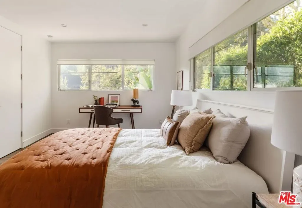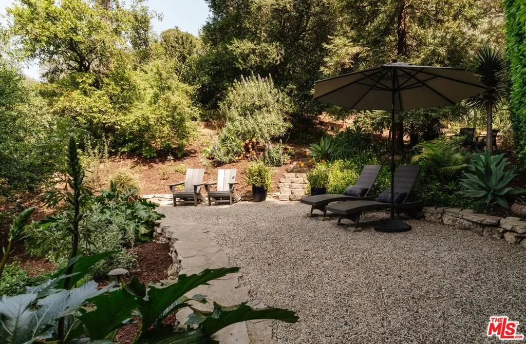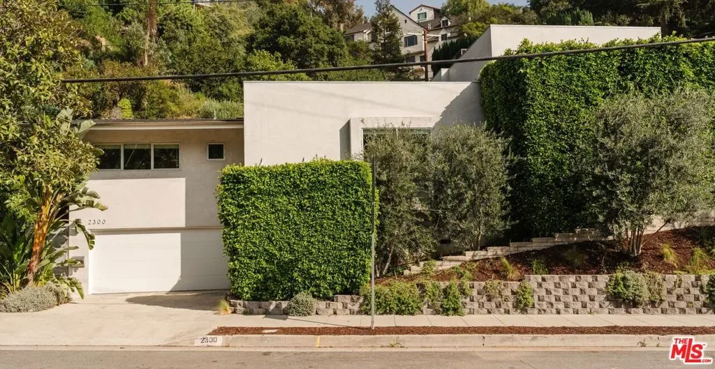 A striking architectural retreat, set behind lush hedges on a private 13,000+ sf corner lot in the coveted Los Feliz Oaks. With architecture by Landworth DeBolske AIA in 2013, the residence is thoughtfully conceived to balance architectural sophistication with easy livability, seamlessly connecting interior spaces to serene, park-like grounds. A dramatic, light-filled 17-foot foyer welcomes you in and leads to the home’s main level open concept plan, offering multiple points of access to the surrounding gardens. The chic, functional kitchen with island is lined with an array of windows previewing the gently rising landscape, creating a constant dialogue with nature. The living room is anchored by an original brick fireplace and extends outward through Fleetwood sliders to the outdoor living room. Nearby, the dining area opens to an intimate, hedged courtyard with a tranquil fountain, an ideal setting for evening gatherings. Primary suite is a peaceful sanctuary overlooking the grounds, complete with a generous walk-in closet and dressing area. A skylight bathes the spacious bathroom in natural light, featuring a soaking tub and separate shower for a spa-like experience. Two additional bedrooms, hall bathroom, and discrete laundry area complete the home’s 2,218sf plan. With spring in full bloom, enjoy day to night in the gardens with spectacular showpieces like the towering Redwood and mature California natives. Two additional lounging terraces are the perfect place to take in the sunset and appreciate the expansive natural world in your backyard. Wonderfully positioned in this sought after neighborhood, with easy access into the many trails of Griffith Park as well as Franklin Village’s amenities including Gelson’s and The Oaks Gourmet. This rare offering is a refined, modern expression of California’s quintessential indoor-outdoor lifestyle.