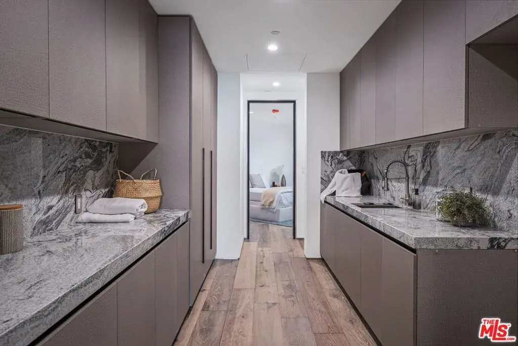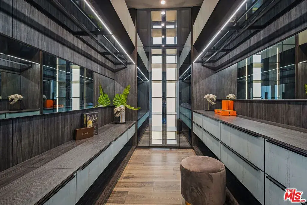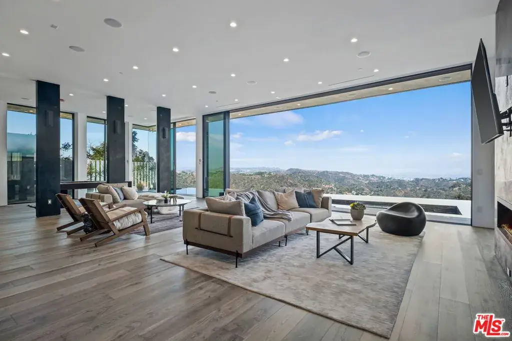 Privately set on a coveted cul-de-sac in prime Bel Air, 2304 Donella Circle is a striking architectural residence that defines contemporary luxury. Elevated above the city, this three-level estate commands sweeping views from every floor, overlooking the hills and the iconic Stone Canyon Reservoir, offering an exceptional sense of light, openness, and privacy throughout. Soaring ceilings and expansive walls of glass flood the interiors with natural light, creating a bright, airy ambiance across all levels. Designed for both sophisticated entertaining and everyday living, the home features expansive entertainment and family spaces that flow effortlessly from one level to the next. At the heart of the residence, a bespoke Italian kitchen makes a dramatic statement, showcasing two sculptural islands, sleek black finishes, and impeccable craftsmanshipperfectly suited for both grand hosting and intimate gatherings. The primary suite is a true sanctuary, evoking a five-star retreat with a double-sided fireplace and a spa-inspired bath wrapped in exotic Spanish tile, featuring a steam shower, sculptural soaking tub, dual stone vanities, and custom designer his-and-her walk-in closets.An elevator connects all three levels, unveiling thoughtfully curated amenities including a private movie theater, a glass-enclosed, temperature-controlled wine cellar accommodating over 1,000 bottles, spacious en-suite bedrooms, and dedicated maid’s quarters. The estate is further enhanced by a state-of-the-art security system, gated driveway, five-car garage, integrated Sonos sound, designer LED lighting, crystal chandeliers, and wide-plank white oak floors throughout. Floor-to-ceiling glass walls open to expansive terraces, creating seamless indoor-outdoor living. A fully equipped outdoor kitchen complements the expansive entertaining areas, while the infinity-edge pool appears to float above the lush landscape, offering a tranquil yet dramatic setting for both intimate relaxation and grand gatherings. Bold, refined, and impeccably designed, this exceptional residence represents Bel Air living at its finest. Also available for lease.