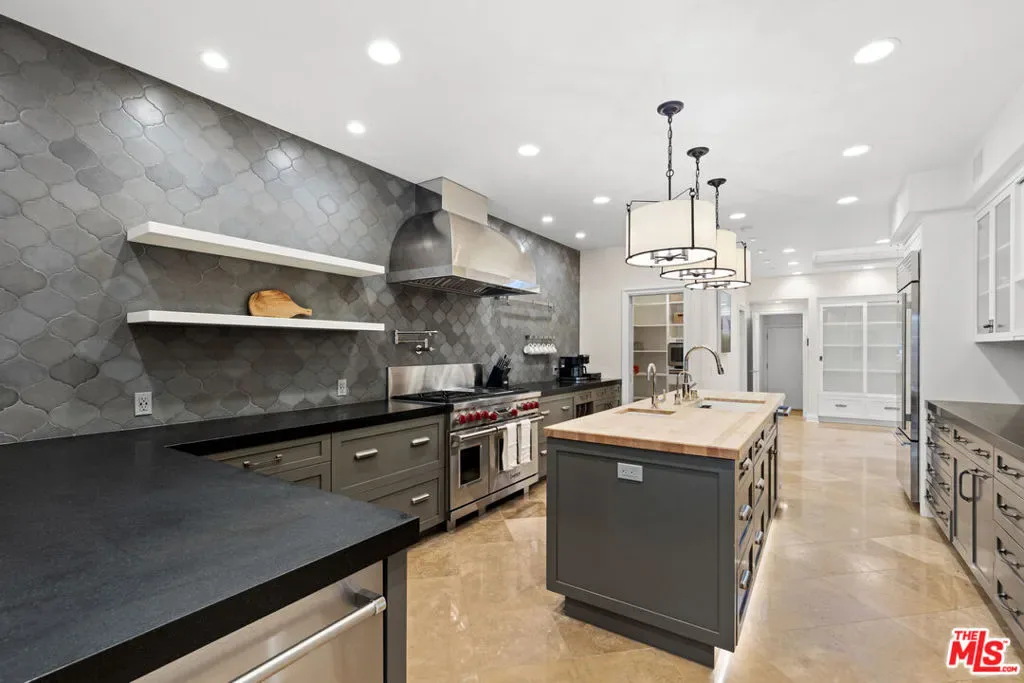 Nestled within the Mountaingate community, this beautifully remodeled Brentwood residence offers 4,488 square feet of refined living set against a tranquil canyon backdrop. Designed with both comfort and sophistication in mind, the home features a warm, contemporary aesthetic, enhanced by curated Roche Bobois furnishings, designer lighting, and expansive living spaces ideal for both everyday living and entertaining. The grand living room impresses with soaring ceilings and scale, while the chef’s kitchen is outfitted with premium Wolf appliances and opens to both formal and casual dining areas. Upstairs, the primary suite serves as a private retreat, capturing serene canyon views and featuring a spa-inspired marble bath and generous walk-in closet. Additional en-suite bedrooms offer high ceilings, updated finishes, and private outdoor access. The backyard is a peaceful escape, complete with a built-in BBQ and grassy lawn, perfect for relaxing or hosting. Residents enjoy 24-HR on-site security with hourly patrol along with access to Mountaingate’s amenities, including tennis courts, pool, spa, and nearby hiking trails. Ideally located moments from UCLA, the 405, and the best of the Westside, this offering combines privacy, convenience, and elevated living. Available fully furnished or unfurnished.