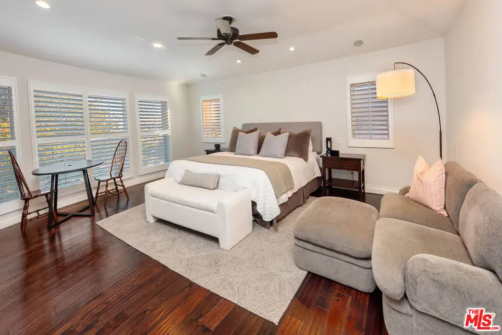 Luxury Beverlywood Lease with Downtown Views, Resort-Style Yard & Smart Home FeaturesOffered furnished or unfurnished, this exceptional 3,800 sq ft residence in the heart of Beverlywood combines privacy, security, and refined living with a flexible floor plan ideal for modern lifestyles. Available on a minimum one-year lease, with the possibility of extensions.The main level features a spacious and elegant layout, including a formal dining room with natural gas fireplace, a welcoming living room, and a large family room with custom built-ins designed to accommodate a 75-inch television. An ensuite guest bedroom on the first floor provides excellent flexibility as a guest suite or private home office. A powder room completes the main level.The chef’s kitchen is thoughtfully designed for serious cooking and entertaining, equipped with 36-inch side-by-side refrigerator and freezer, three ovens, two sinks, two dishwashers, and two microwaves.Upstairs are four generously sized bedrooms, each with its own full en-suite bathroom, offering privacy and comfort throughout. The primary suite enjoys a spectacular view of Downtown Los Angeles, creating a striking and memorable retreat.The private backyard is a true oasis, featuring a pool and jacuzzi, a furnished seating area, and a wood-burning fire pit. Outdoor entertaining is effortless with a natural gas BBQ and a dedicated mini-refrigerator.The home offers enhanced security and peace of mind, with an elevated front entrance above street level, gated driveway, alarm system, multiple security cameras, and motion-sensing exterior lighting. The gated driveway accommodates one car outside the gate and two to three cars stacked inside, plus easy street parking with no alternate-side restrictions on Bagley Avenue.Additional highlights include solar power, numerous smart home features, and a highly desirable Beverlywood location close to shops, dining, and major routes. Pets considered.A rare opportunity to lease a beautifully designed, secure, and fully equipped home in one of Los Angeles’ most sought-after neighborhoods.