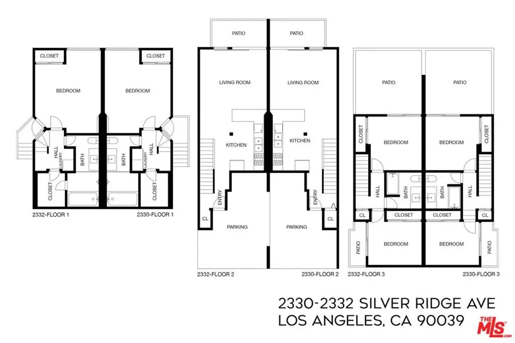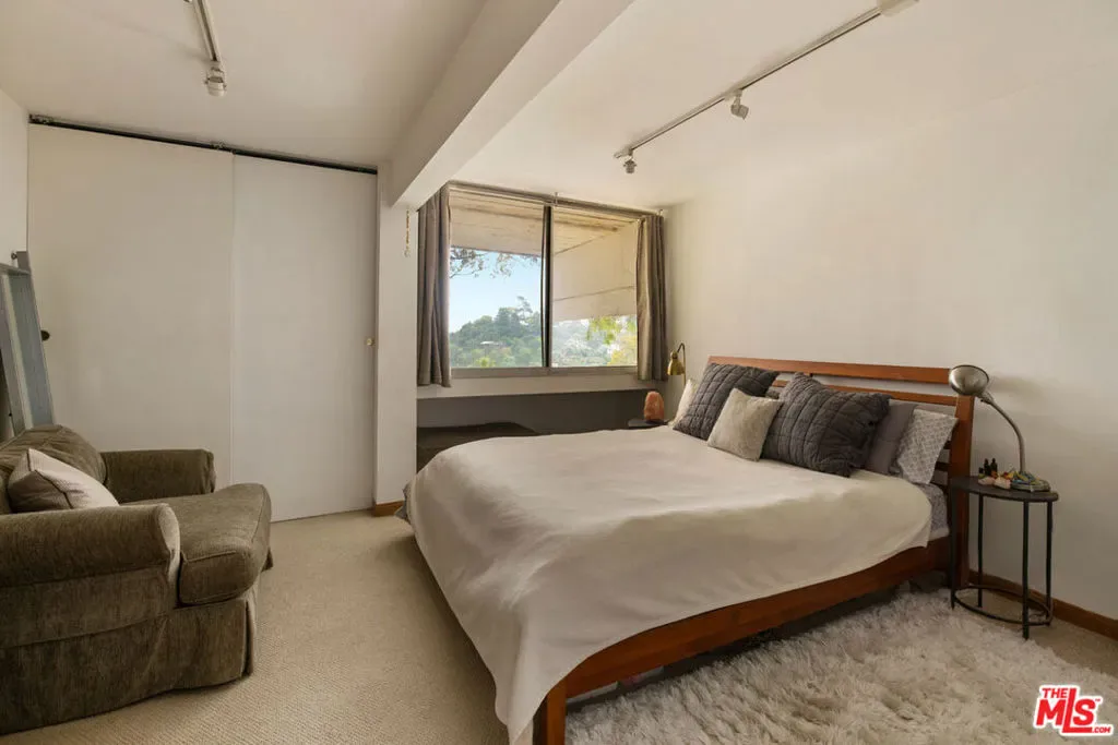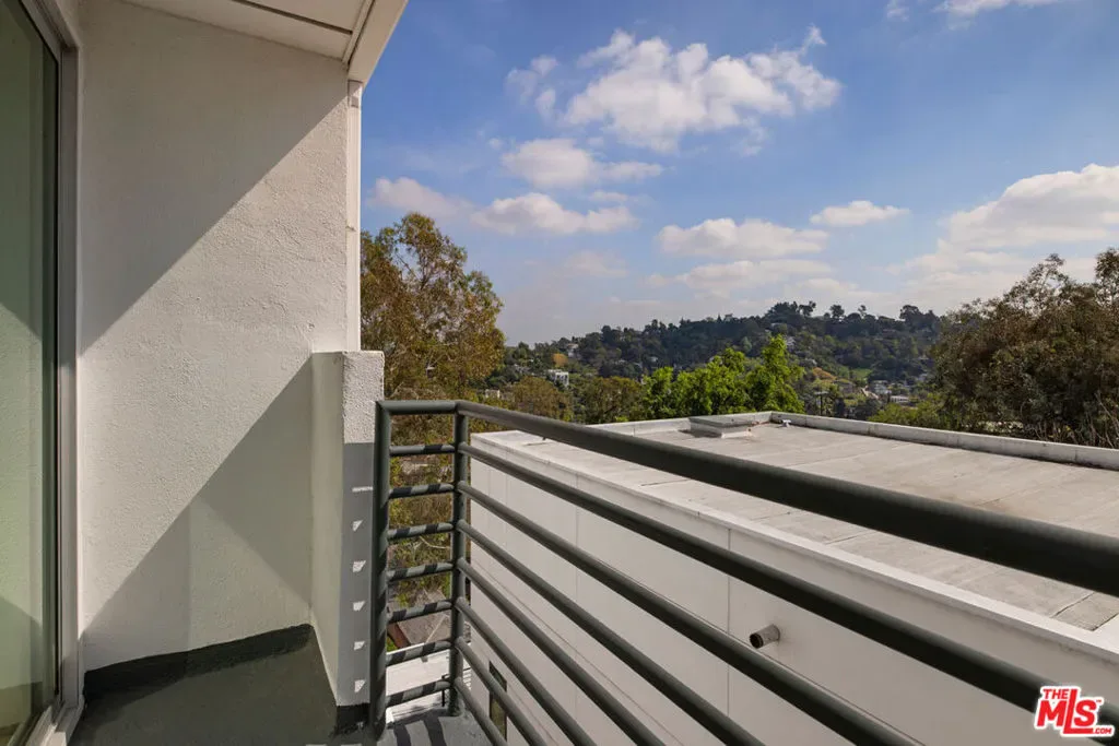 Perched in Silver Lake with soaring views, this midcentury duplex by Allyn E. Morris circa 1964 is a compelling owner-investor opportunity with one unit delivered vacant. Arranged side by side, both residences have been updated and span three levels, with walls of glass bringing in abundant natural light. The main levels present an open layout with multiple balconies to enjoy the stunning panoramic vistas. Both kitchens are appointed with granite countertops, wood cabinetry, and Bosch and LG stainless appliances, and hardwood floors run throughout. Each residence includes a lower-level primary suite with a large shower and tub, hallway laundry, and generous closet storage; two additional bedrooms occupy the upper level, both opening to balconies. Amenities include central AC and a carport. Head down the hill to Whole Foods, Gingergrass, Constellation Coffee, the Silver Lake Library, and the Silver Lake Reservoir.
