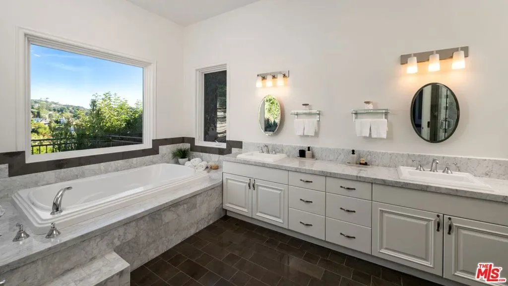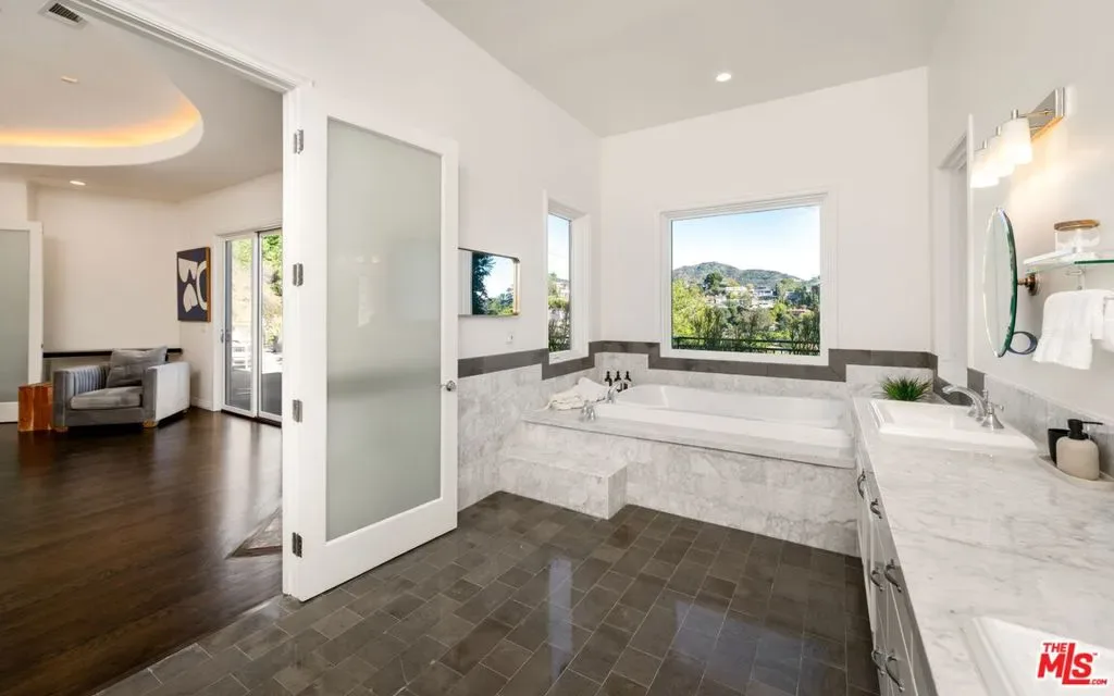 Welcome to this modern hillside retreat tucked into the iconic Beachwood Canyon. The home features over 5,300 sqft and rare 6 beds with bright, open spaces with ebony stained oak floors, high ceilings, and large windows that bring in steady natural light and frame peaceful canyon and Griffith observatory views. A well-appointed chef’s kitchen with Viking appliances connects directly to the main living and dining areas, creating an easy flow for everyday use and entertaining. The primary suite provides a spacious layout with a spa-style bath and peaceful canyon outlooks, while each additional bedroom includes its own en-suite bath for convenience and privacy. The gym room is accompanied by a large steam shower perfect for health and wellness. Multiple outdoor seating areas, elevator, outdoor workout area, rooftop deck and a private spa extend the living space outdoors, ideal for relaxing or hosting. A rare collector’s garage with a parking lift adds practical value for car enthusiasts. Located just minutes from Hollywood and Beachwood Village, the property delivers a curb appeal with a balanced lifestyle and quiet hillside living with quick access to restaurants, studios, and city amenities. It would be very hard if not impossible to build a house of this size and bedroom count in this neighborhood with current construction costs. Your getting scale, style, and value all in one move.