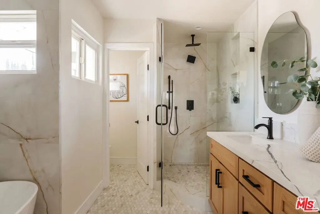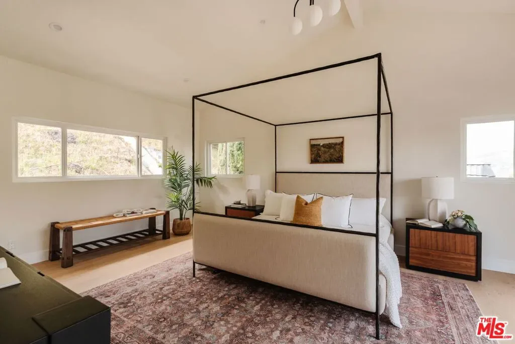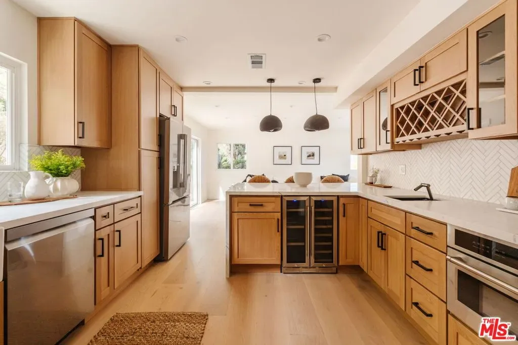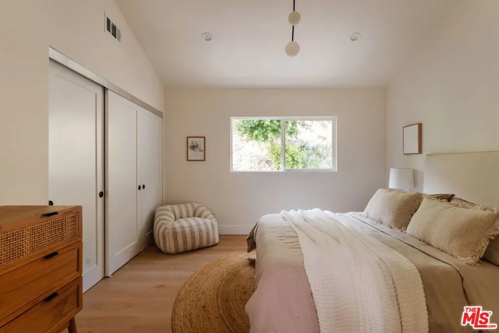 Welcome to 2339 Jupiter Drive, a beautifully reimagined multi-level residence offering hillside views in the prestigious Mount Olympus enclave of the Hollywood Hills. Set on a wide street with abundant parking, this fully renovated home blends elevated design, thoughtful upgrades, and effortless indoor-outdoor living. The exterior features smooth stucco accented by fire-resistant metal wood-look siding, creating a clean, modern facade. Enter through the dramatic pivoting frosted tempered-glass front door to light-filled foyer with marble entry, engineered white oak floors, and custom glass railings. The redesigned staircase, illuminated with built-in LED step lighting and creates a striking architectural centerpiece. The main living areas flow seamlessly to front-facing balconies where views of rolling hills provide a breathtaking backdrop from sunrise to sunset. A gas fireplace with ceramic logs anchors the living room, adding warmth and ambiance next to the formal dining room. The reimagined kitchen features oak shaker cabinetry, ocean-grey quartz countertops, a stylish wet bar, a spacious eat-in peninsula, complemented by a full suite of stainless appliances. Upstairs, 4 bedrooms and 3 bathrooms have been fully remodeled with modern finishes, LED fogless mirrors, and a cohesive, spa-like aesthetic. The principal suite boasts vaulted ceilings, a walk-in-closet, ensuite bathroom with soaking tub, washlet toilet, and a private balcony that overlooks the city lights. Extensive system upgrades include a new all-electric furnace, new AC compressor, updated 220 electrical wiring, integrated CCCT wiring for cameras, speakers, and security. Located just moments from the Sunset Strip, West Hollywood, and Studio City, this turnkey Mount Olympus residence delivers iconic Hollywood Hills living with modern comfort and design. Welcome home!
