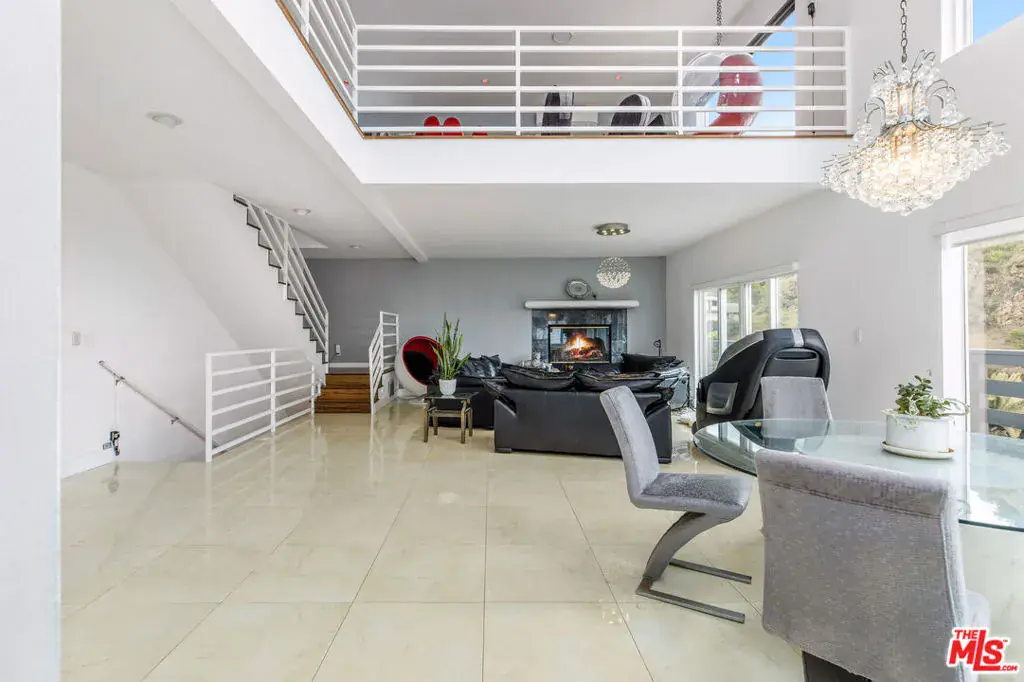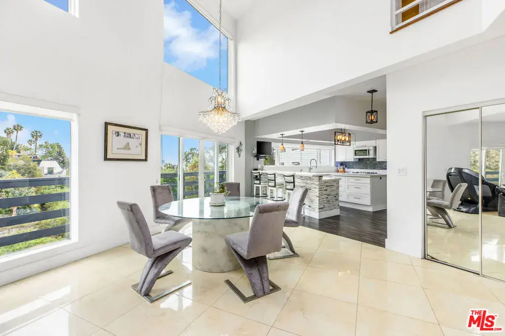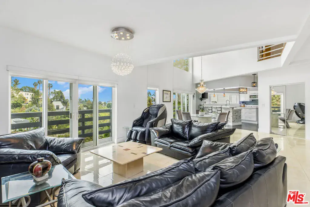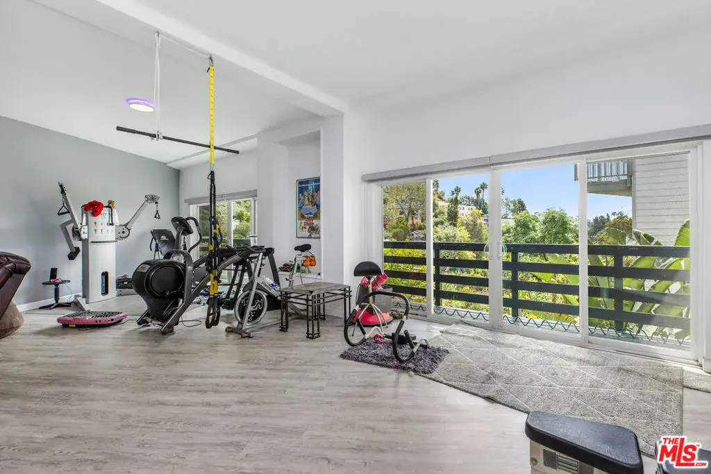 Perched atop the hills of the Hollywood Dell, stands this custom-built contemporary home with mountain and city views from every room. The open concept living and dining rooms with double height ceilings seamlessly flow into the updated kitchen with white quartz countertops and center island. Upstairs, a loft serves as the ideal office or TV room, and the oversized primary suite offers a private balcony, two closets, a marble-clad spa-like bathroom with skylights and infrared sauna. Downstairs are two guest bedrooms with en-suite bathrooms and sliding glass doors that lead to wrap-around balconies, and a large bonus room that functions as an entertaining space, gym, family room or another primary bedroom. Other amenities include: a recording studio, rock climbing wall and two car garage. All this, just moments from hiking trails, the Hollywood Reservoir, The Hollywood Bowl and the world class dining, shopping and nightlife of Hollywood.