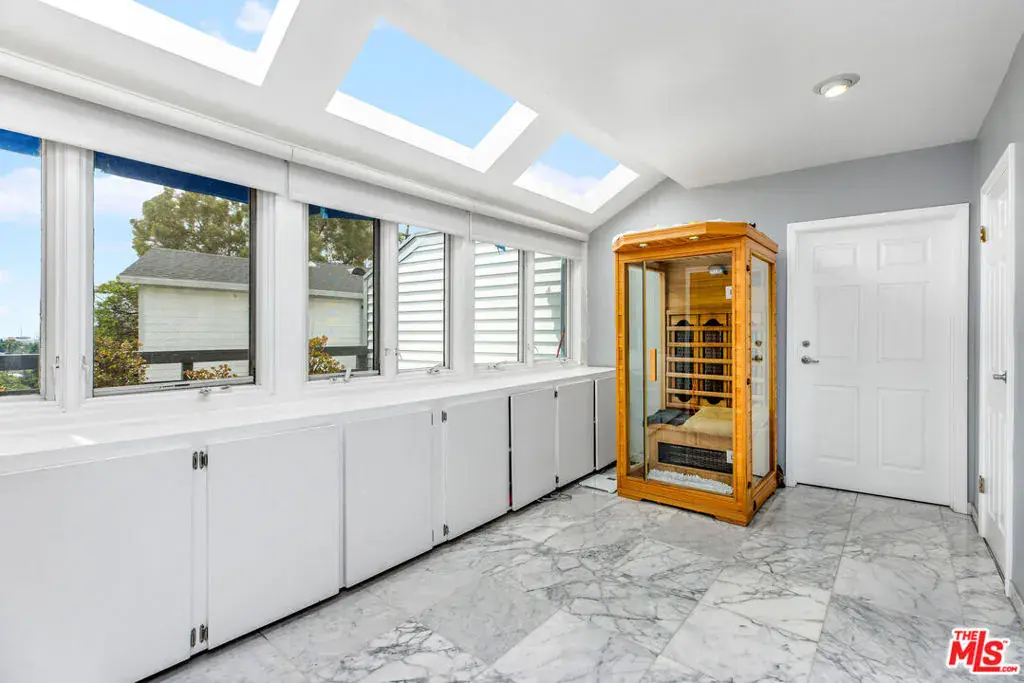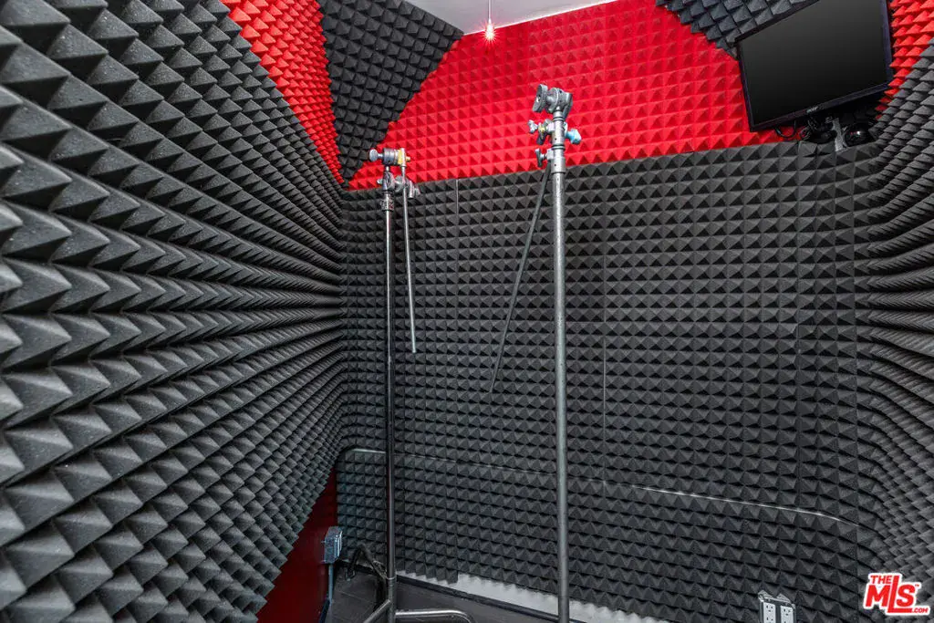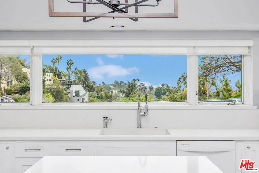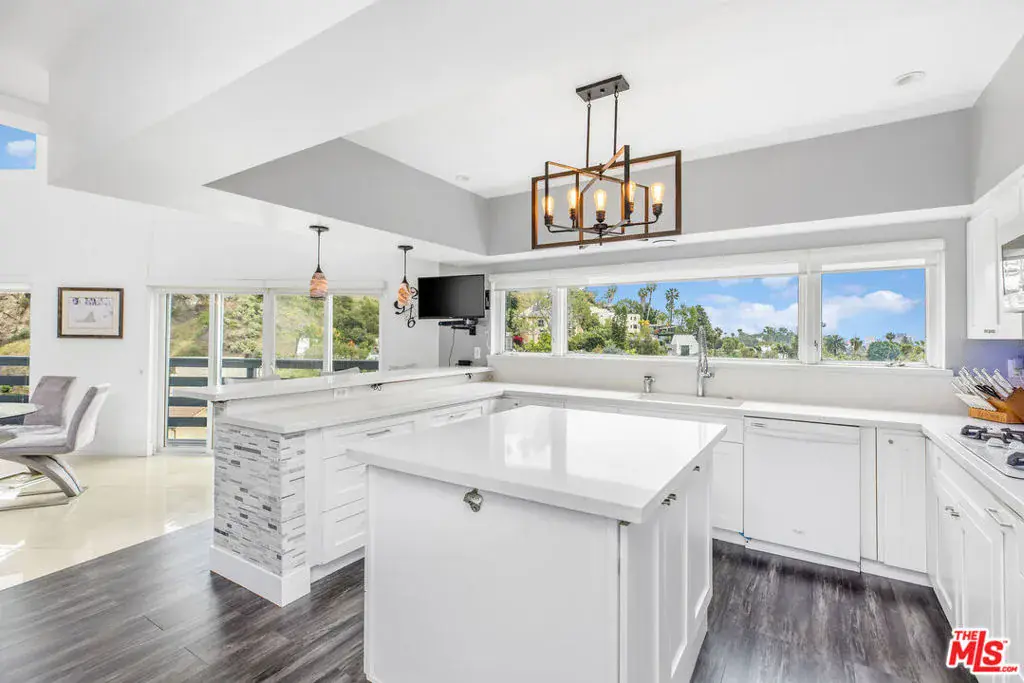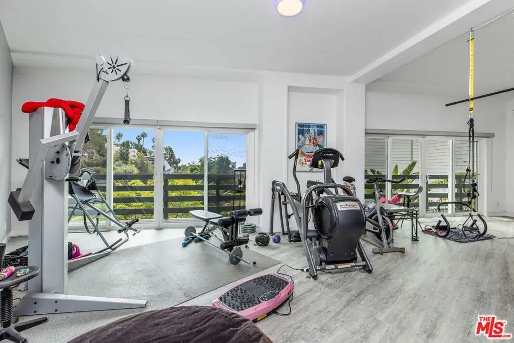 Perched atop the hills of the Hollywood Dell, stands this custom-built contemporary home with mountain and city views from every room. The open concept living and dining rooms with double height ceilings seamlessly flow into the updated kitchen with white quartz countertops and center island. Upstairs, a loft serves as the ideal office or TV room, and the oversized primary suite offers a private balcony, two closets, a marble-clad spa-like bathroom with skylights and infrared sauna. Downstairs are two guest bedrooms with en-suite bathrooms and sliding glass doors that lead to wrap-around balconies, and a large bonus room that functions as an entertaining space, gym, family room or another primary bedroom. Other amenities include: a recording studio, rock climbing wall and two car garage. All this, just moments from hiking trails, the Hollywood Reservoir, The Hollywood Bowl and the world class dining, shopping and nightlife of Hollywood.