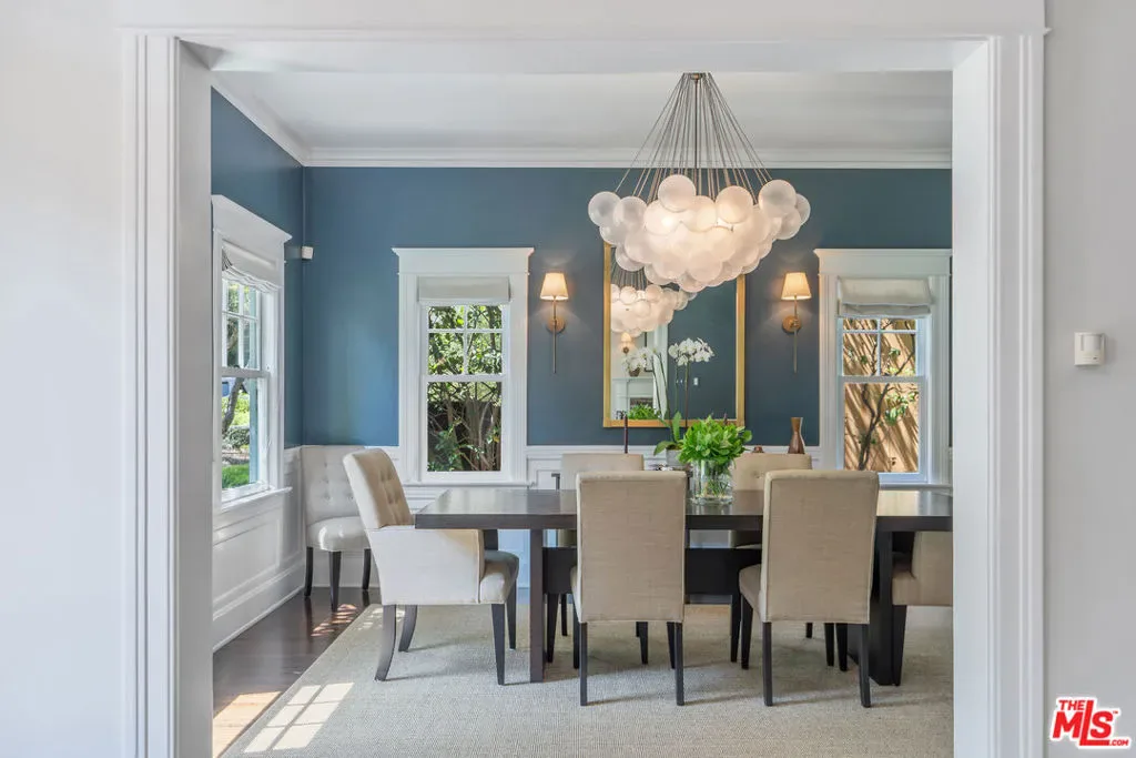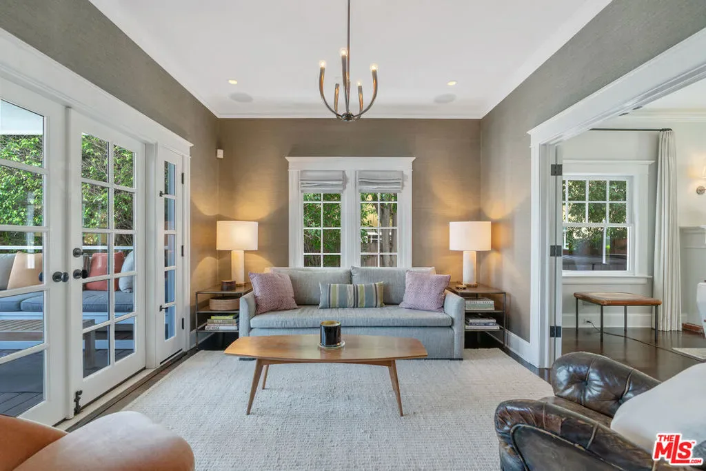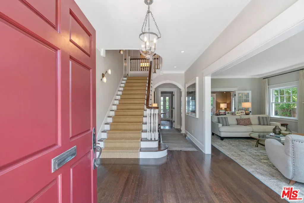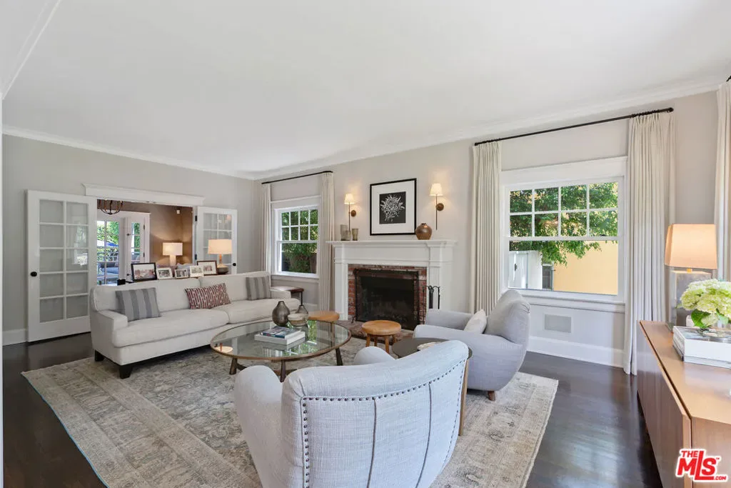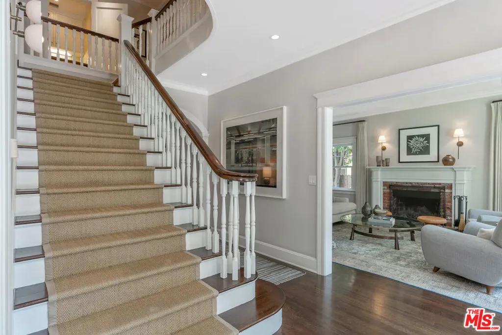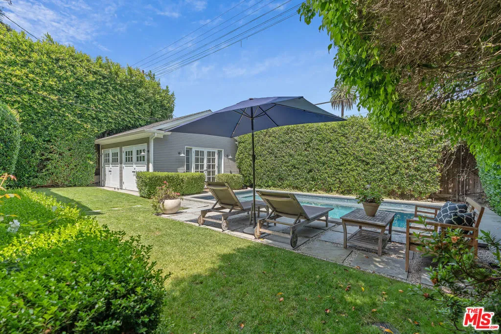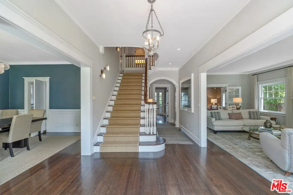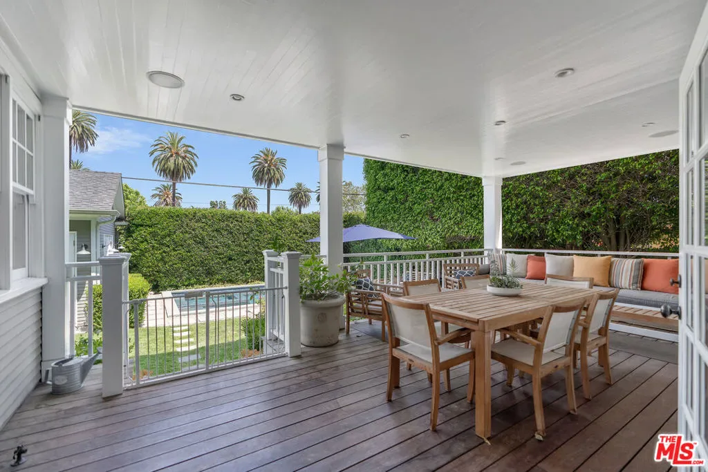 Beautiful East Coast Traditional on Coveted Irving Blvd in Prime Windsor Square. Welcome to this light-filled home that’s been lovingly remodeled while keeping all its original charm. A graceful center hall with a sweeping staircase sets the tone as you step inside. To the right, a bright living room with a fireplace opens through French doors to a cozy den overlooking the yard, the perfect spot to relax, watch TV or read a book. A breakfast room connects to the fantastic cook’s kitchen featuring high-end appliances, a large center island, tons of storage, and endless counter space. There’s even a casual dining area and hangout space with views of the gardens. The back of the house opens to a large entertaining deck that’s ideal for summer BBQs and family dinners. You’ll also find a formal dining room, a small butler’s pantry, and a stylish powder room on this level. Upstairs, the spacious primary suite sits quietly at the back of the house and includes a large walk-in closet, a spa-like bath with a steam shower, and a private roof deck with city and neighborhood views. Three additional bedrooms, two beautifully remodeled bathrooms, and a laundry room complete the second floor. The third floor offers a great bonus space perfect for a gym, playroom, or home office. Out back, the private, hedged yard feels like your own little retreat with a newer pool and spa, outdoor shower, and a great guest house for family and friends. All this just moments from Larchmont Village and everything Windsor Square has to offer. Square footage includes the main house, 3rd floor gym/office and guest house.