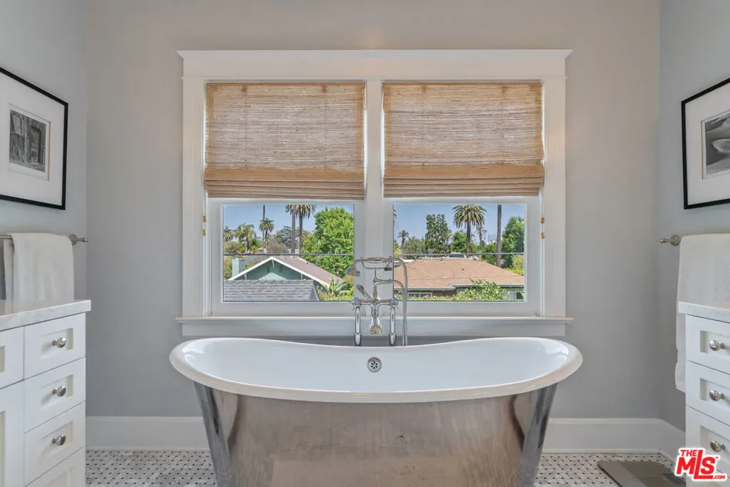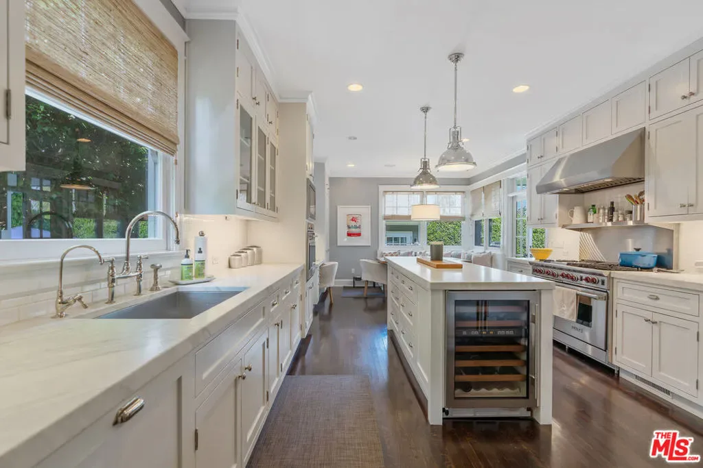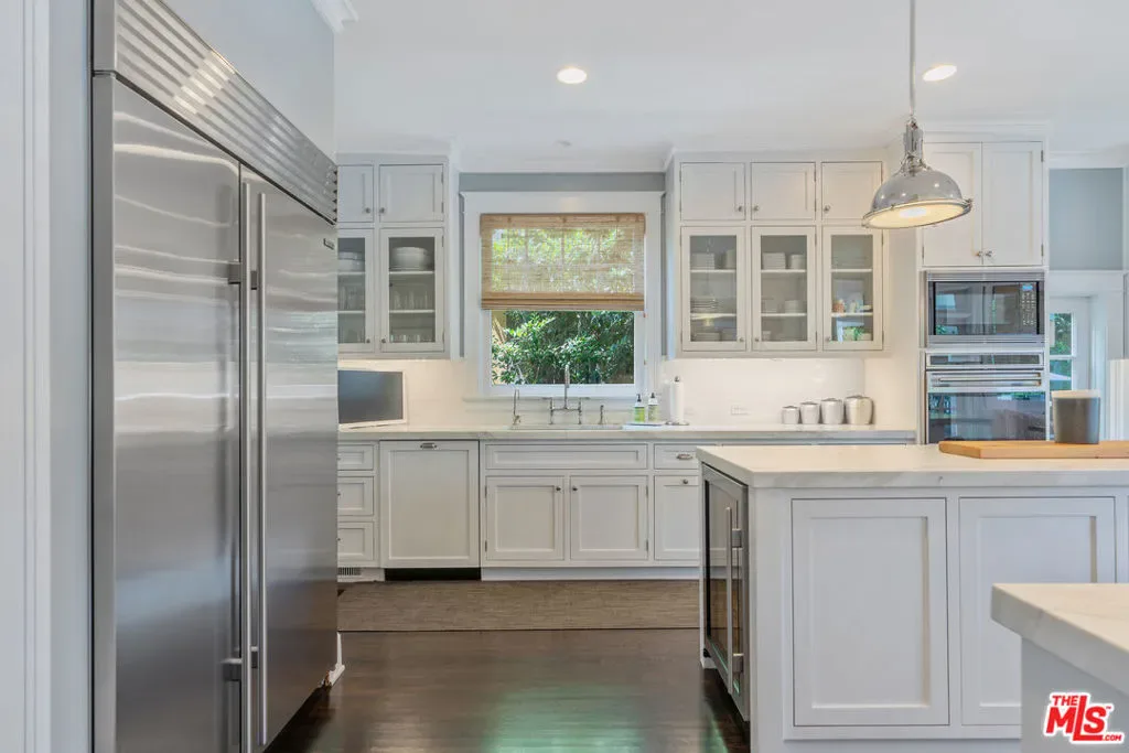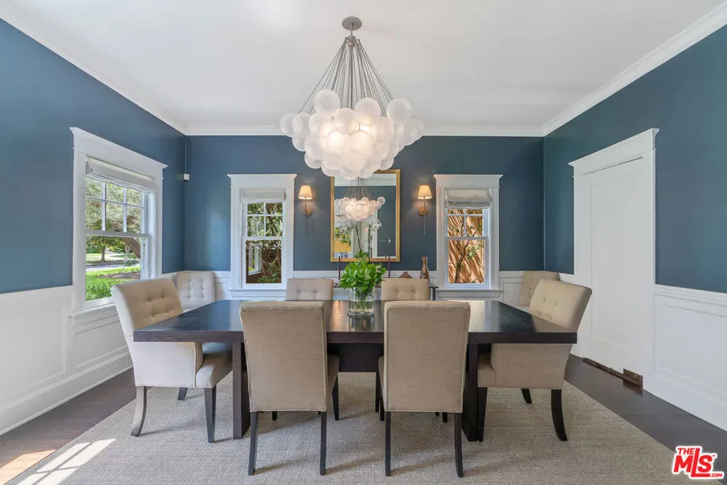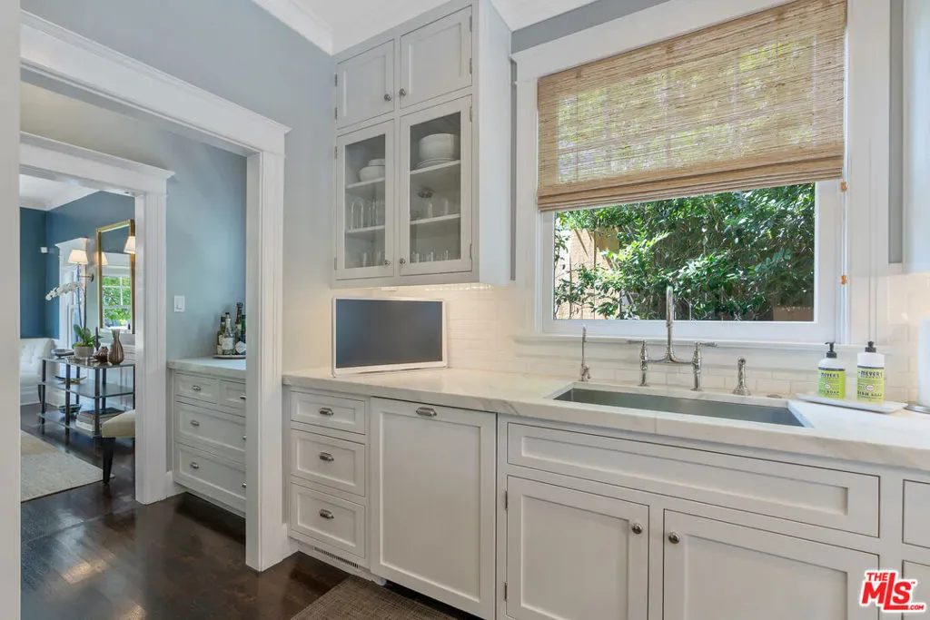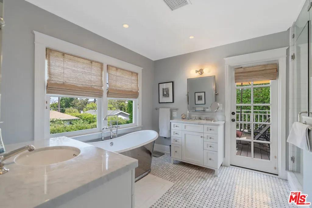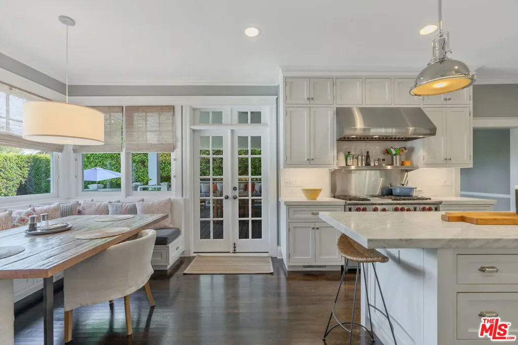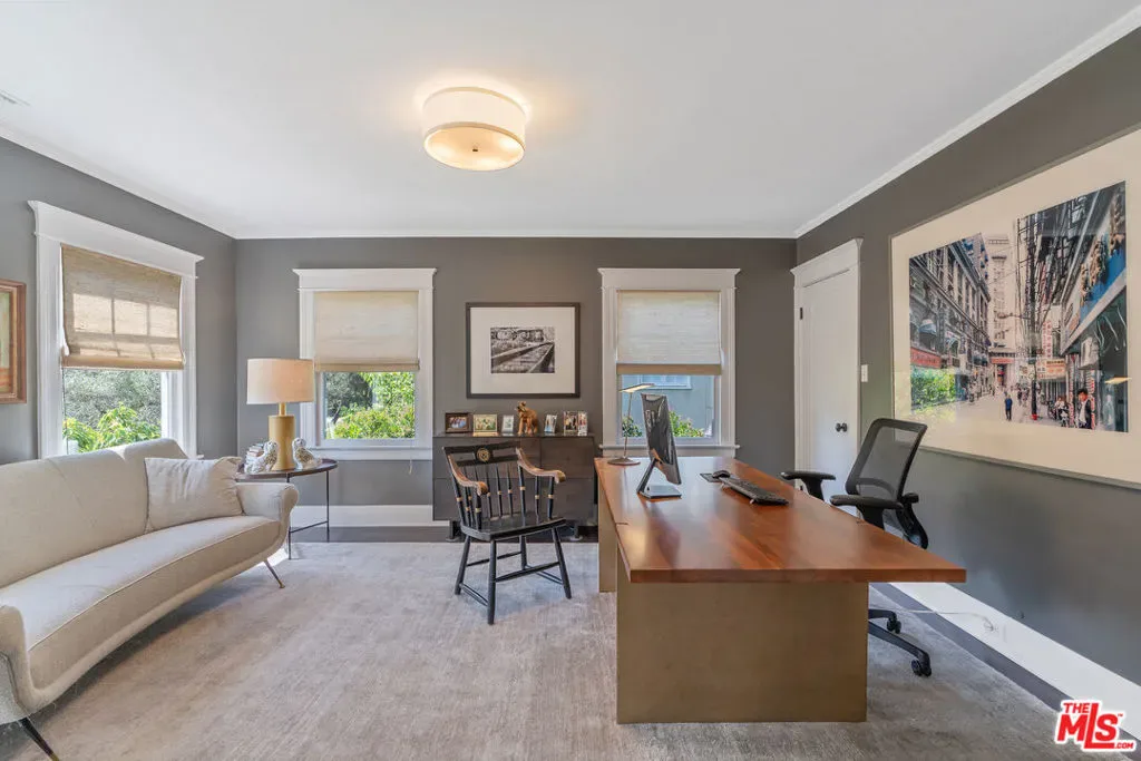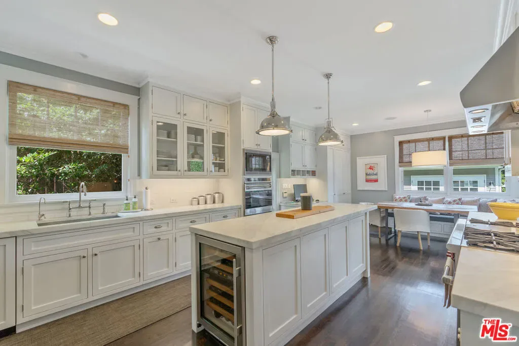 Beautiful East Coast Traditional on Coveted Irving Blvd in Prime Windsor Square. Welcome to this light-filled home that’s been lovingly remodeled while keeping all its original charm. A graceful center hall with a sweeping staircase sets the tone as you step inside. To the right, a bright living room with a fireplace opens through French doors to a cozy den overlooking the yard, the perfect spot to relax, watch TV or read a book. A breakfast room connects to the fantastic cook’s kitchen featuring high-end appliances, a large center island, tons of storage, and endless counter space. There’s even a casual dining area and hangout space with views of the gardens. The back of the house opens to a large entertaining deck that’s ideal for summer BBQs and family dinners. You’ll also find a formal dining room, a small butler’s pantry, and a stylish powder room on this level. Upstairs, the spacious primary suite sits quietly at the back of the house and includes a large walk-in closet, a spa-like bath with a steam shower, and a private roof deck with city and neighborhood views. Three additional bedrooms, two beautifully remodeled bathrooms, and a laundry room complete the second floor. The third floor offers a great bonus space perfect for a gym, playroom, or home office. Out back, the private, hedged yard feels like your own little retreat with a newer pool and spa, outdoor shower, and a great guest house for family and friends. All this just moments from Larchmont Village and everything Windsor Square has to offer. Square footage includes the main house, 3rd floor gym/office and guest house.