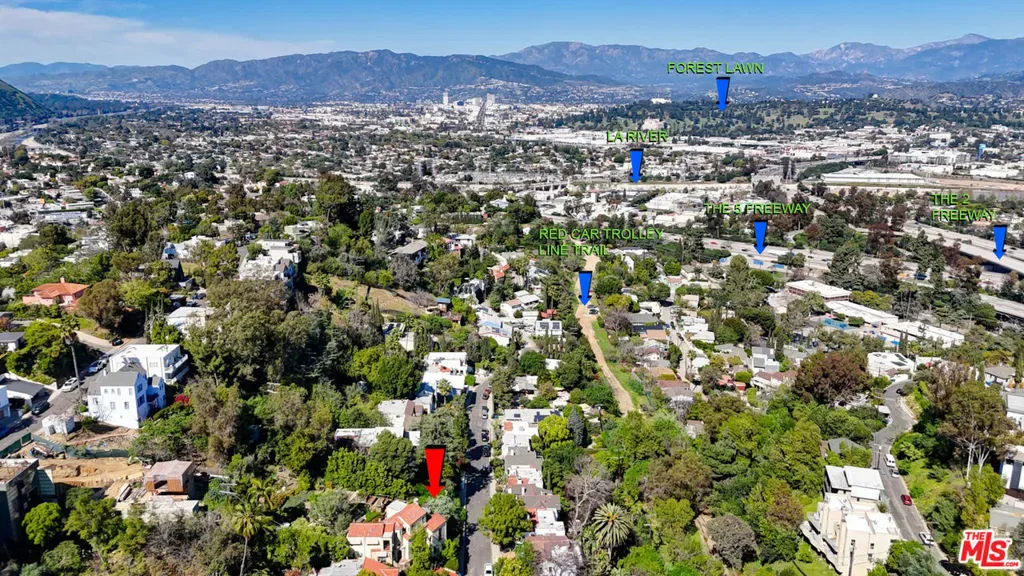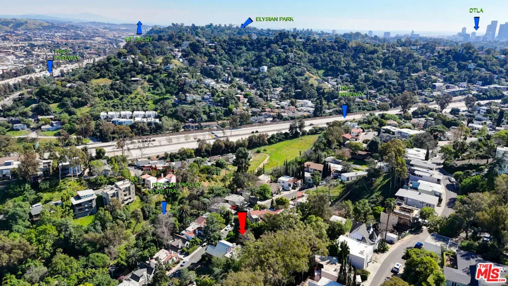 Amazing VIEWS from this Silver Lake hillside lot. Thoughtfully designed plans are already in place and nearing Ready-To-Issue (RTI) status, saving significant time and fast-tracking construction. Set within a charming neighborhood just moments from Whole Foods, the reservoir and the old redline trail. Plans for a 4 bedroom, 4 bath home, plus a 2 bedroom, 1 bath ADU (collectively 4,045 sq feet), including a 2 car garage, elevator, pool/spa, outdoor patio, and recreation room designed for indoor/outdoor living. For those of you who know construction, per soils report, bedrock is 1 to 2 feet below grade unlike some near impossible-to-build hillside lots, meaning that there are no caissons required, which means less cost on foundation. Stacked floors means less construction per square foot. Building geometry is straightforward with expansive openings, yet zero moment frames. Concrete structure means quiet and safe. Services (laundry, storage and mechanical systems) in the hill leaves room for living space – each with its own amazing view. Main floor opens directly to the back yard or to an outdoor patio with a street-facing view of Elysian Park. Beautiful trees put you in a Zen-like state with views of Mt. Baldy and forest lawn, yet easy access to the freeway and downtown. A mechanical electrical plumbing engineer has already designed a highly efficient ventilation system with zoning for each floor. Electrical system for solar and electric car charging. Half underground (for video game room or laundry, storage, garage and mechanical) means low heating and cooling. R2 zoning (already cleared for ADU for guests or rental income). Build your dream home here!