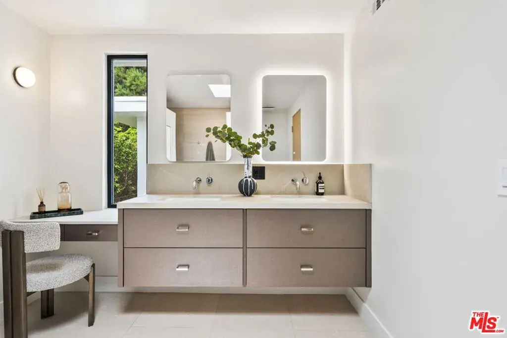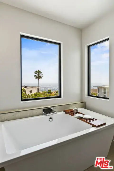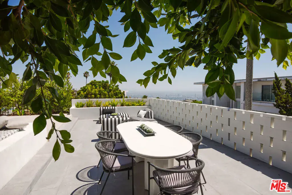 Recent $500k price reduction! Thoughtfully reimagined by Devall Design Home, this stunning five-bedroom, five-bathroom residence offers timeless style, natural light, and seamless indoor-outdoor living in the heart of the Hollywood Hills. Every detail has been curated with intention, from the uniquely designed architectural features to the expansive views spanning from Downtown to Catalina Island. The home’s open layout is ideal for entertaining, with multiple living spaces, including one centered around a living tree that brings a touch of nature indoors. A dramatic curved staircase anchors the main living area, complemented by a custom-built bar and designer lighting. The oversized pool, outdoor kitchen, and fireplace create an effortless extension of the interior spaces. The chef’s kitchen is outfitted with a full suite of Miele appliances, a built-in coffee bar and is the heart of the home. Sleek floor-to-ceiling Fleetwood windows and doors flood the home with light. Three of the five oversized bedrooms feature en-suite bathrooms and private outdoor areas. Located just moments from the iconic Sunset Strip and set within a secure community with 24/7 neighborhood patrol, this home offers both tranquility and easy access to dining, entertainment, and culture. A true reflection of the lifestyle in the Hollywood Hills.