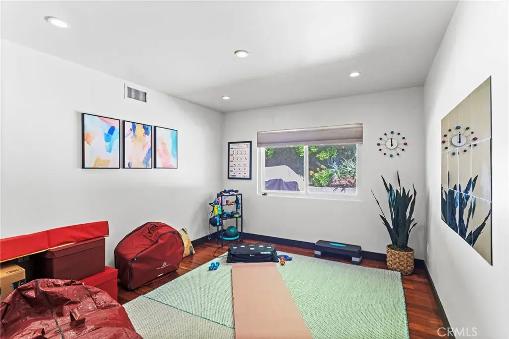 Hardwood flooring runs throughout, complemented by clean lines, recessed lighting, and a neutral palette that enhances openness and natural light. Bedroom spaces are clearly defined, comfortably scaled, and adaptable for family living, guests, or home office use.