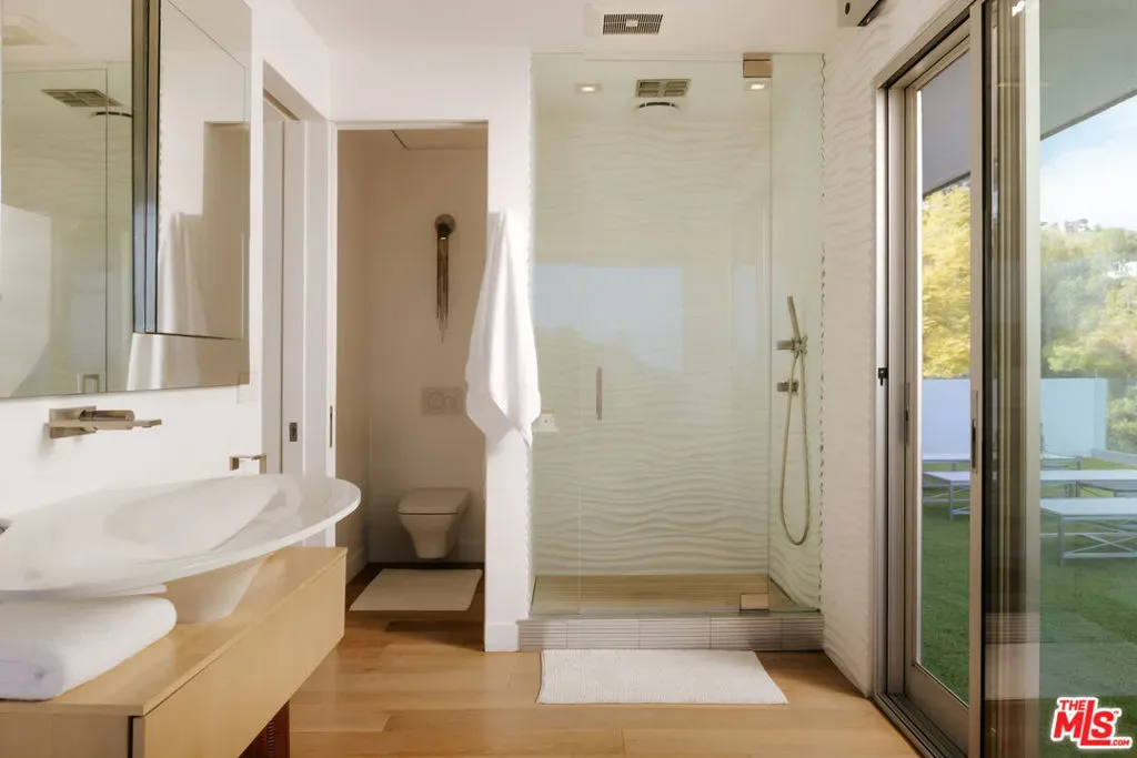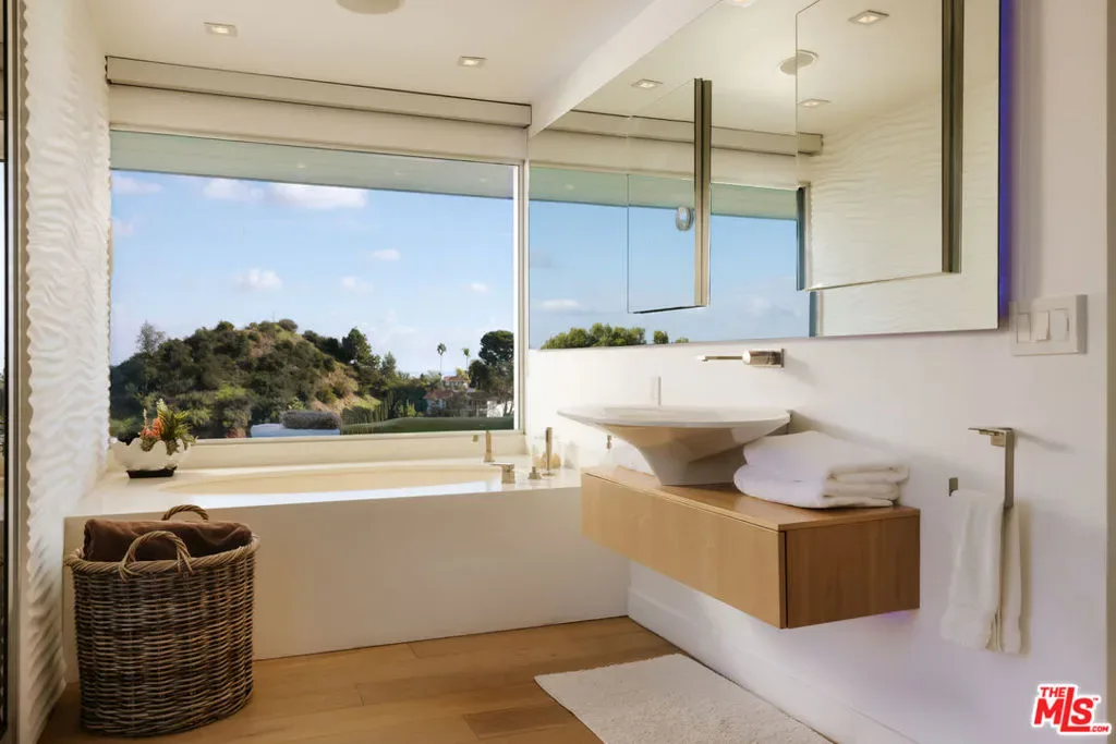 A rare and exceptional opportunity to own a private gated mid century retreat at the end of a quiet cul de sac with sweeping city to ocean views. Originally designed in 1958 by noted architect Thornton Ladd, this residence captures the essence of classic California modernism with high ceilings walls of glass and an open flow ideal for world class entertaining. The main house features expansive living spaces with gleaming hardwood floors a formal dining area and beautifully updated baths. The kitchen is equipped with Viking and Sub Zero appliances and opens to the views and outdoor areas. The luxurious primary suite includes a limestone bath and shower with refined contemporary finishes. The property sits on an extraordinary 1.35 acre promontory offering complete privacy and a pool surrounded by a large flat yard framed by dramatic panoramic vistas. A true zen like environment with a timeless architectural pedigree this home presents a unique and valuable opportunity in a premier location.
