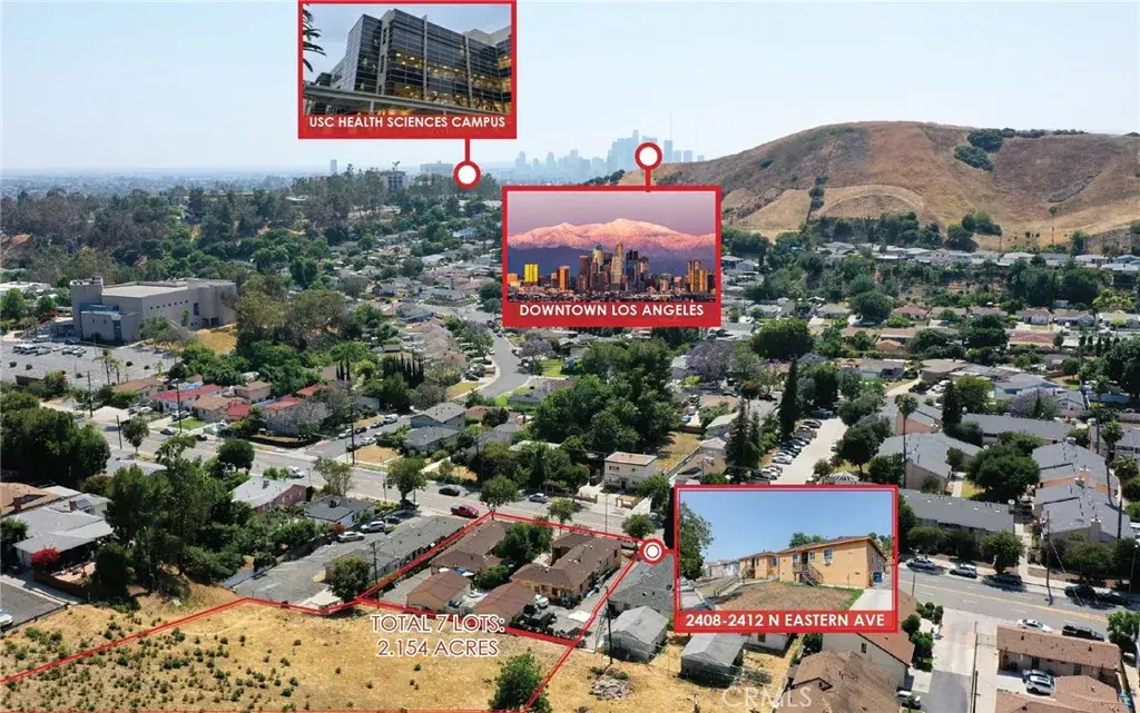 7 combined lots: 2408 N Eastern, 2410 N Eastern, and a ±1.82ACRE Residential development lots (5 parcels behind it) for sale. This combined portfolio totaling 2.154ACRE residential lot that is prime and ready to be redeveloped. These properties have been in the same family for more than 11 years and this is the first time they have been offered for sale. The properties are strategically located in El Sereno, bordering Alhambra and a short distance to Downtown Los Angeles.