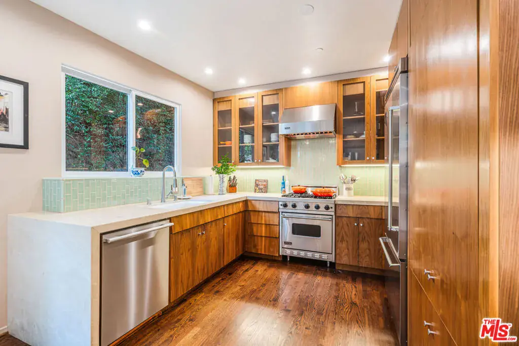 Discover this private and gated retreat nestled amidst the verdant landscapes of Laurel Canyon, located within the award winning Blue Ribbon Wonderland school district on a quiet non through street . This quality built architectural residence combines contemporary sophistication with peaceful serenity and offers the ideal haven from the urban life yet is just minutes from the dining , shopping and nightlife of West Hollywood , Beverly Hills and Sunset Plaza . Natural light abounds from the high ceilings and gorgeous window lines and its open spaces flow seamlessly from the inviting indoors to the spacious outdoors. The main level boasts an open- concept living room, dining room and kitchen, designed to feel both expansive and intimate. Soaring cathedral ceilings create a sense of grandeur, while oversized windows frame views of mature trees , filling the space with natural light and a magical , tree – house – like ambience. The gourmet chefs kitchen is a culinary enthusiasts delight. Outfitted with premium appliances, sleek counter tops, abundant storage and a large center island, it is ideal for hosting gatherings or enjoying intimate family dinners. If the outdoors is where you prefer to gather, then the outdoor BBQ and dining area is ready for your entertaining . After dinner, step into your lush private yard and dip into the large spa that doubles as a plunge pool, or siimply lounge in your lazy hammock that is engrossed by lush greenery. This home offers 3 generous bedrooms and 3 bathrooms, plus office , studio , or gym. Two of the bedrooms are accompanied by spa-inspired en-suite baths and walk in closets. The primary suite spans the entire top floor and is enhanced by an adjoining space ideal for mediation, yoga, exercise, studio or home office. Steps from the primary, you have your very own rooftop deck, perfect for morning coffee or evening wine and star gazing The tranquil, gated property is situated in prime Laurel Canyon offering the dual benefit of seclusion and easy access to Los Angeles’s vibrant culture.