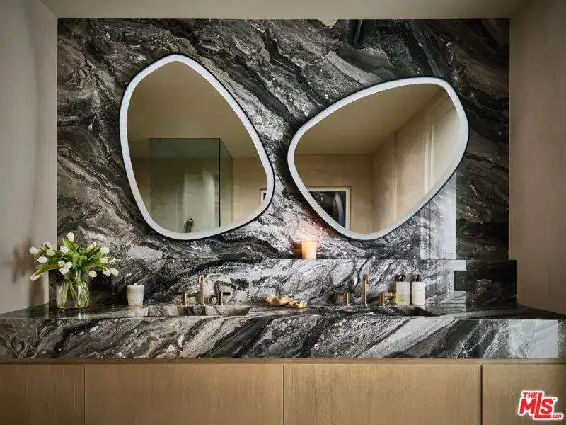 As featured in Architectural Digest, this modern Brentwood estate offers 7 bedrooms, 10 bathrooms, and sweeping ocean and canyon views. Set on a lush, private lot, the residence balances refined architecture with effortless indoor outdoor living. Walls of glass and natural materials flood the home with light and frame the landscape from nearly every room. Multiple patios and connected entertaining areas create an easy flow for hosting gatherings or quiet everyday moments. The chef’s kitchen pairs top-tier appliances with clean, modern lines and bold designer details – equally at home for early morning coffee or a lively dinner party. The serene primary suite offers a spa-worthy bath, expansive walk-in closet, private balcony, and warm, curated finishes. Other bespoke features include an intimate, clubroom-style speakeasy, a dedicated gym/wellness center, and a 1,000 sq ft rooftop deck that captures the breathtaking views. Designed for privacy and connection, the home transitions effortlessly between vibrant entertaining and tranquil retreat – California living at its finest.
