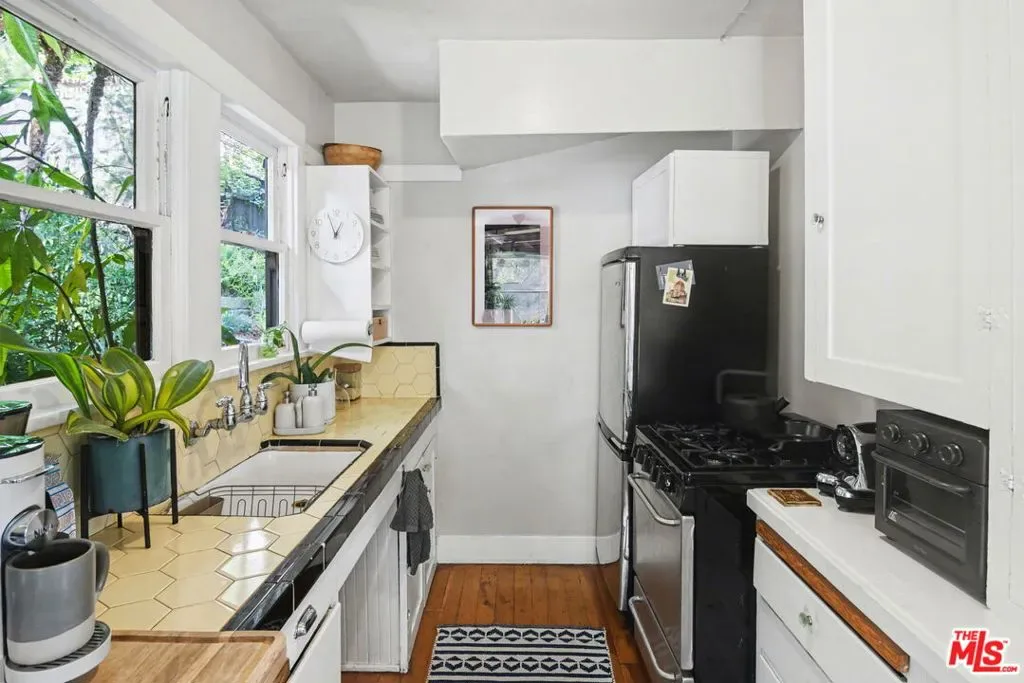 Set within a lush, garden-filled setting, this distinctive property blends classic California bungalow charm with flexible living and thoughtful design. The front residence is a beautifully maintained 1-bedroom, 1-bath bungalow surrounded by mature landscaping that creates a private, serene retreat. Warm wood floors, curated interiors, and an easy indoor-outdoor flow define the home, with multiple outdoor areas designed for both quiet living and relaxed entertaining. At the rear, a detached open floor-plan loft guest house offers a light-filled and versatile secondary living space. Vaulted ceilings with exposed beams and a lofted sleeping area create an open sense of volume, while the main level living area and kitchen provide functionality and flexibility. Ideal for guests, rental income, or a creative live/work environment. A detached office shed adds further flexibility, well-suited for work-from-home or studio use. The property backs to the historic Corralitas Red Car Trail, with nearby informal parking and direct gated access into the backyard. Layered outdoor spaces shaded by mature trees and thoughtfully composed to enhance the property’s sense of privacy and connection to nature, creating a relaxed, compound-like feel. Ideally positioned near the best of the eastside, with convenient access to major freeways, Sunset Boulevard, the Silver Lake Reservoir, Echo Park Lake, and a curated mix of cafes, restaurants, and boutique shops. Los Feliz, Atwater Village, Glendale and Downtown LA are all within easy reach. A rare opportunity to own a character-rich property with versatile living options in one of Los Angeles’ most sought-after neighborhoods. Parking on Riverside Place is limited. For open house visits please use the Google Maps link to park at the rear of the property. https://goo.gl/maps/Jeah9wUGZUTvxEYZ8 for ample parking at the rear of the property on the Corralitas Red Car Trail.