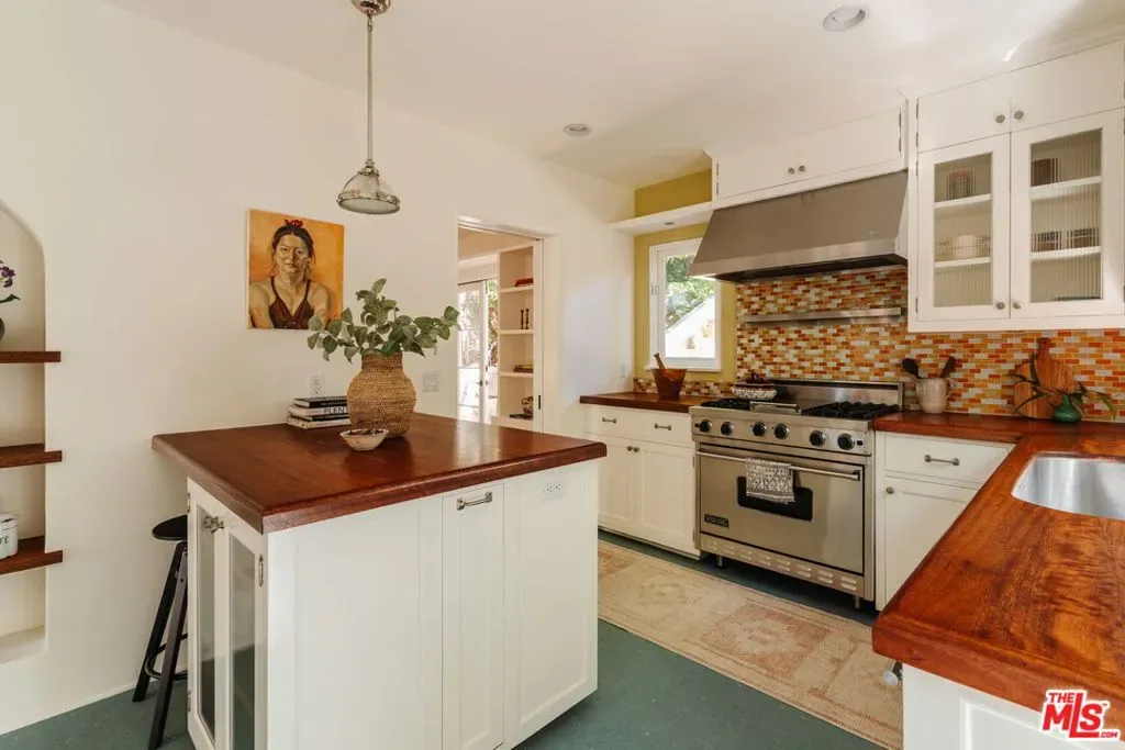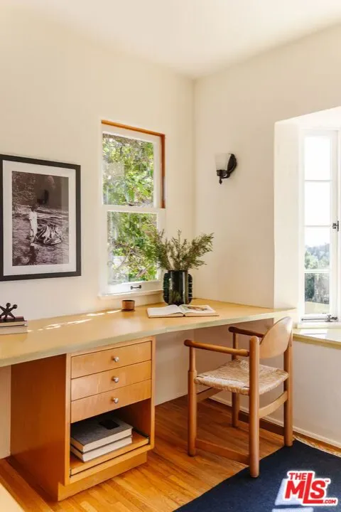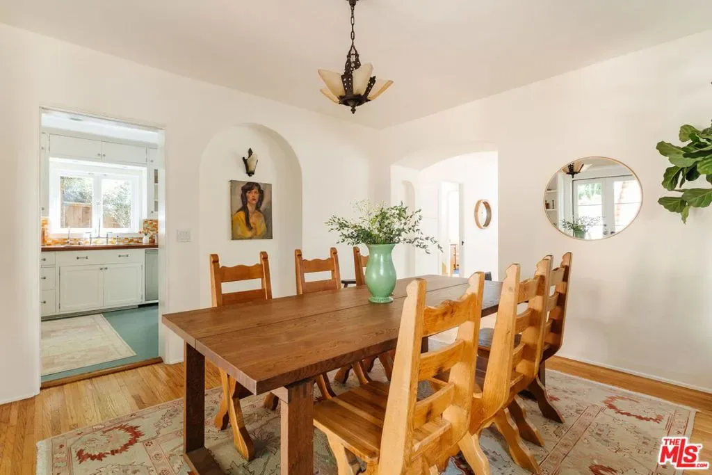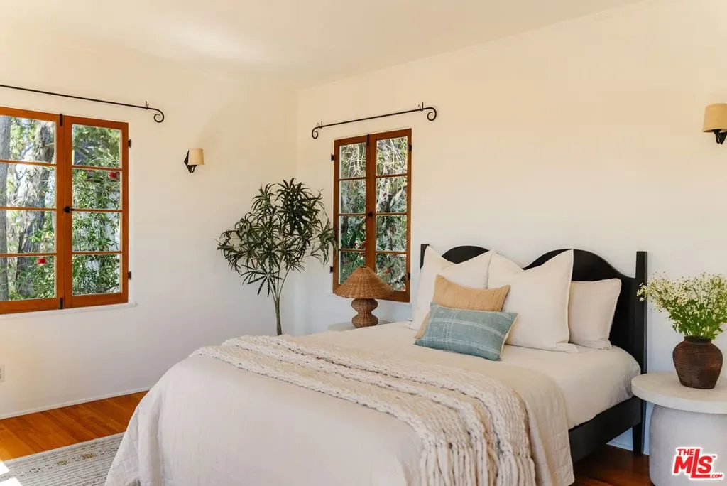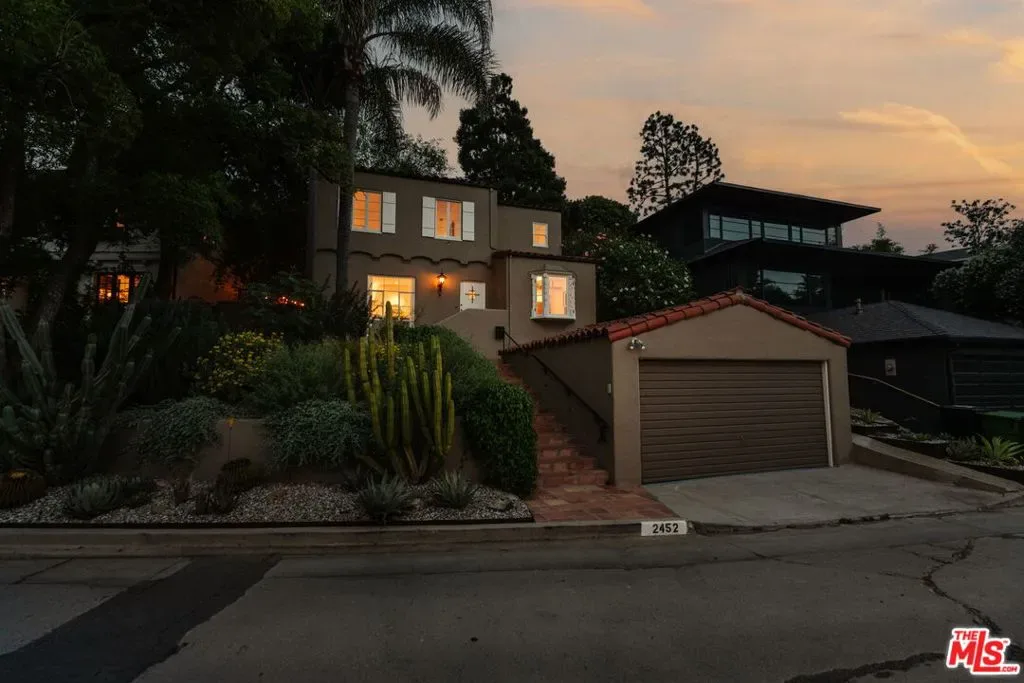 Perched in Silver Lake’s Moreno Highlands, this pristine 1935 character-filled Spanish blends timeless charm with city views and a beautifully preserved interior by its longtime owners. With its prime elevated setting, sunlight fills the inside which offers a great floorplan with living room, dining and kitchen on the main level along with an lovely office/guest room. Upstairs are two additional large bedrooms and full bathroom all with gorgeous views, ample closet space, warm hardwood floors and wood windows. Throughout, period details abound with original Spanish sconces and a stunning living room fireplace. The outdoor spaces are a rare find in this hillside location and provide effortless living with multiple flat terraces for entertaining, gardening or play, all flanked by incredible mature trees and lush gardens. Additional upgrades and features include newer electrical, updated plumbing, central HVAC, tankless water heater, detached garage and bonus storage room below the house. Located in the Ivanhoe School District and on one of the neighborhood’s best streets, the location offers peace and quiet while only moments from some of the best area hot spots in Sunset Junction, the Silver Lake reservoir and much more. A rare offering that combines classic Spanish architecture, modern updates, and city-view living in one of Silver Lake’s most desirable pockets.