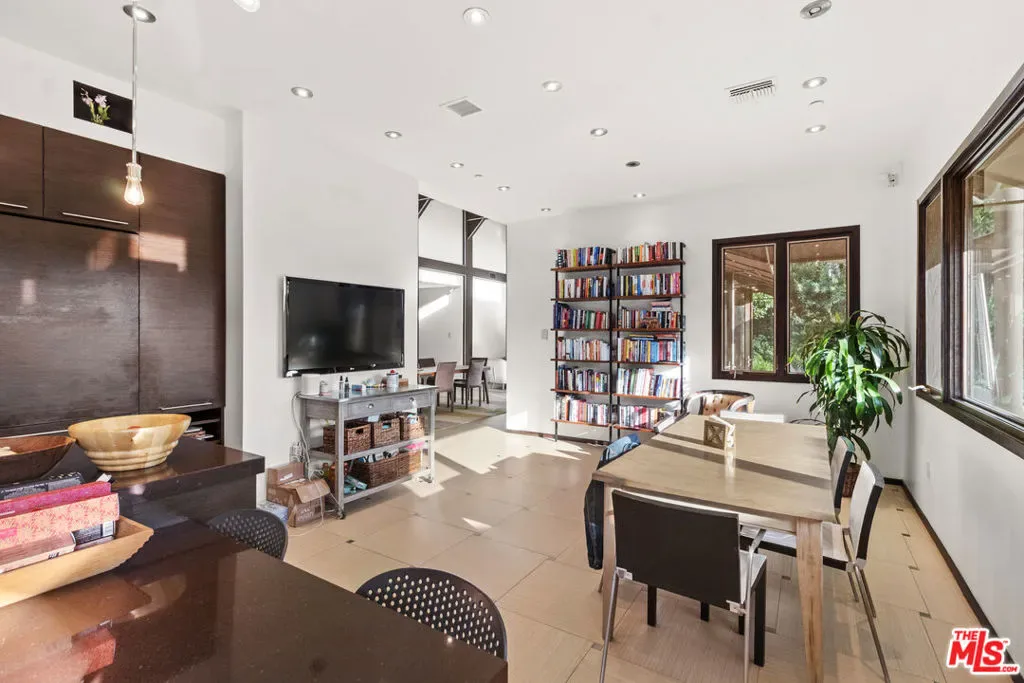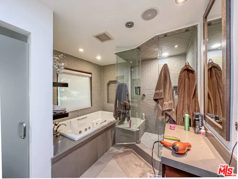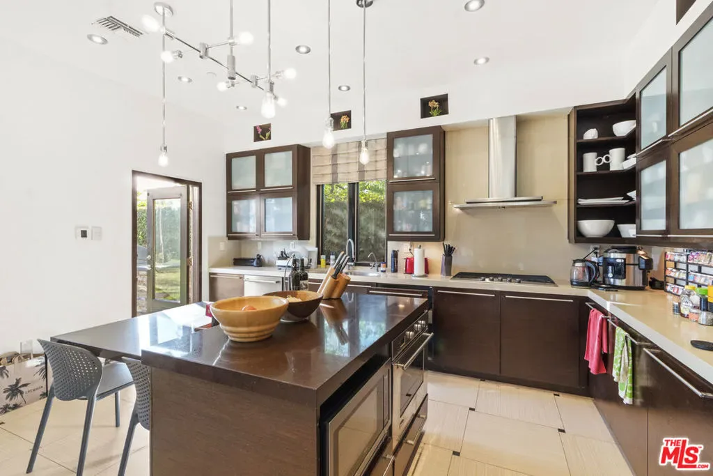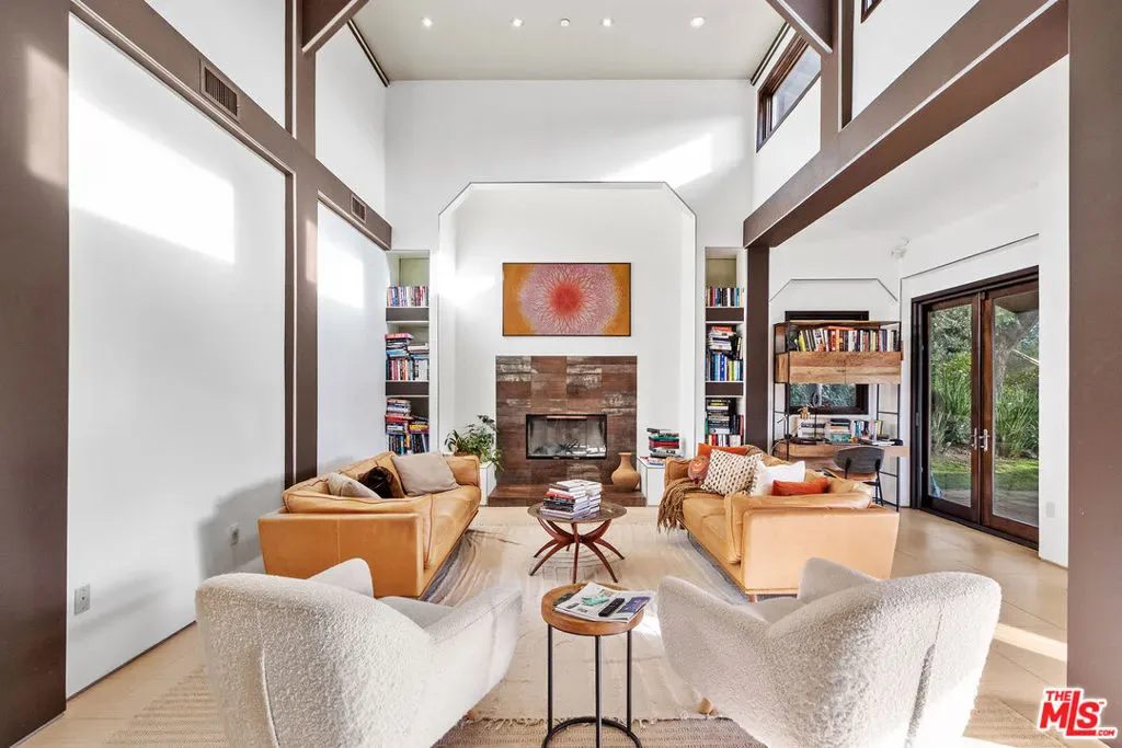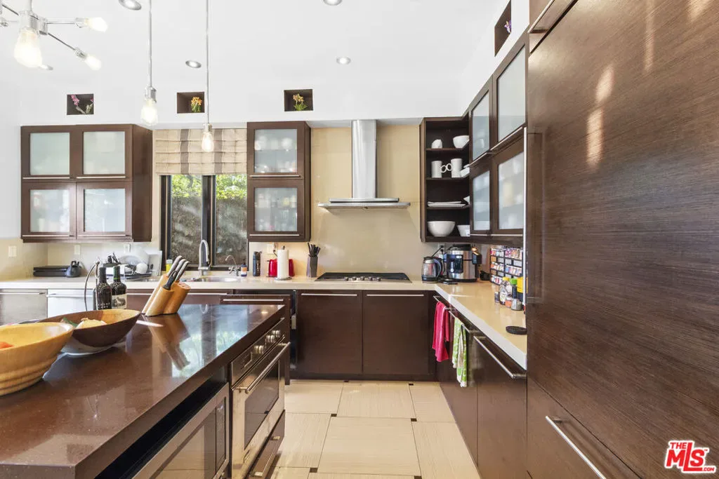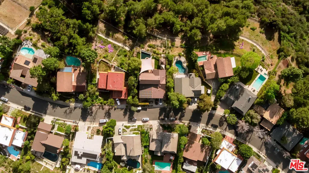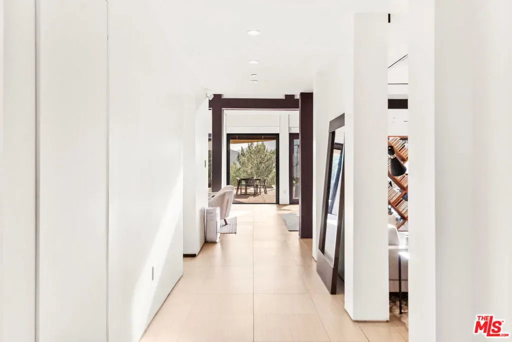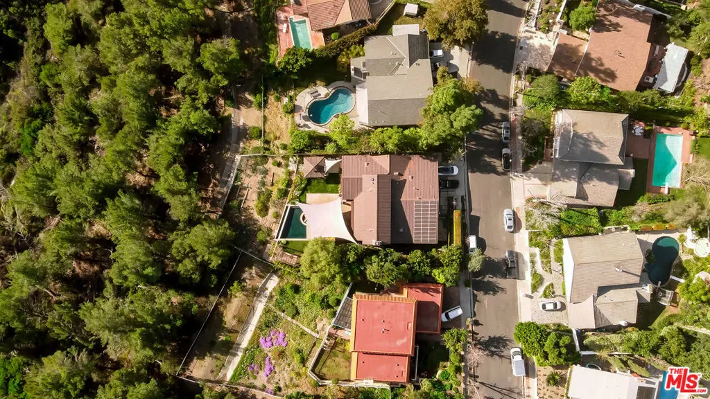 This updated California Contemporary blends clean architectural lines with seamless indoor-outdoor living, set on nearly an acre of serene Brentwood hillside just minutes from Sunset Boulevard. Offering exceptional privacy and sweeping canyon views, this 4-bedroom, 3.5-bath residence is designed for refined living and effortless entertaining. A thoughtfully designed open floor plan is complemented by a state-of-the-art automation system allowing control of lighting, climate, and security at your fingertips, along with whole-home water filtration and an advanced ventilation system. Italian terrazzo tile and bamboo flooring add warmth and architectural character throughout. The living room features soaring ceilings, a cozy fireplace, and walls of glass that frame breathtaking views of the infinity-edge pool, fire pit, and surrounding canyons. The kitchen flows seamlessly into the dining area and living room, both opening to the expansive backyard retreat. Outdoors, a spectacular infinity pool is perfectly positioned to capture the views, accompanied by a fire pit for intimate evenings under the stars, and a barbecue area with a lounge / dining area. Multiple entertaining areas create a true resort-style setting, ideal for gatherings or quiet relaxation. The primary suite is thoughtfully situated beside the tranquil entry pond and fountain, offering a peaceful, spa-like retreat and a true sense of serenity. Additional features include a 2-car covered garage with direct access and beautifully landscaped grounds that enhance the home’s quiet, private setting. A rare Brentwood offering combining privacy, views, technology, and timeless California design in an exceptional location just a block away from the popular hiking trail at Westridge-Canyonback Wilderness Park.