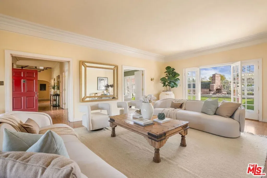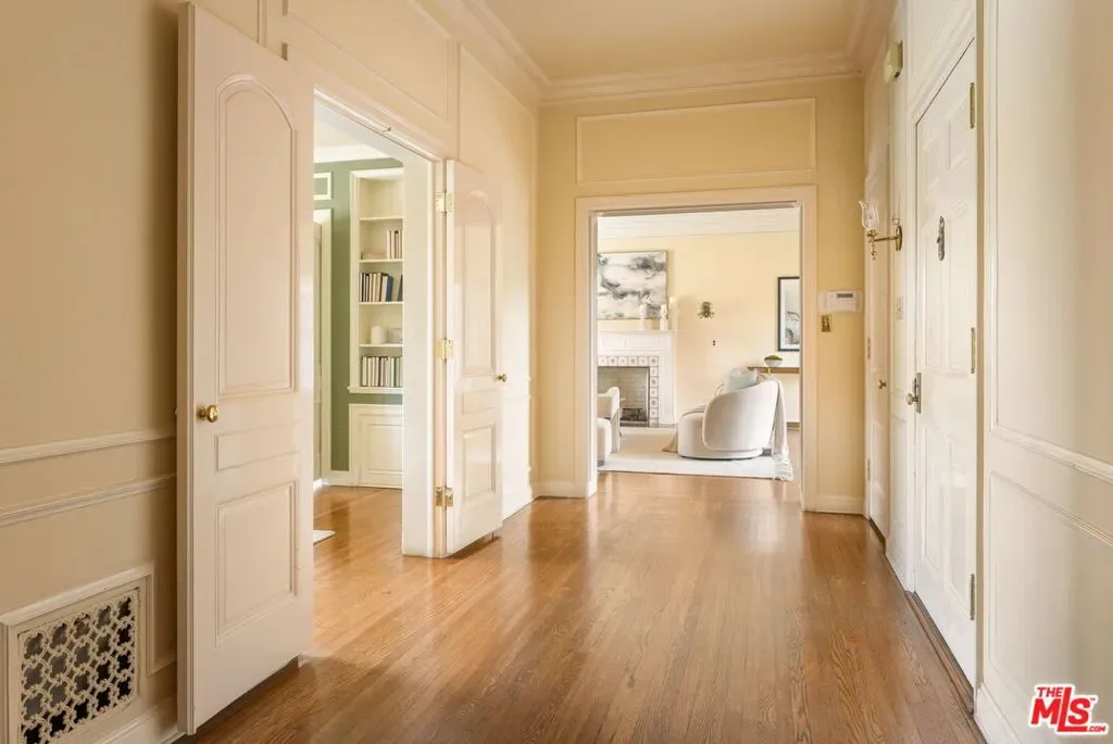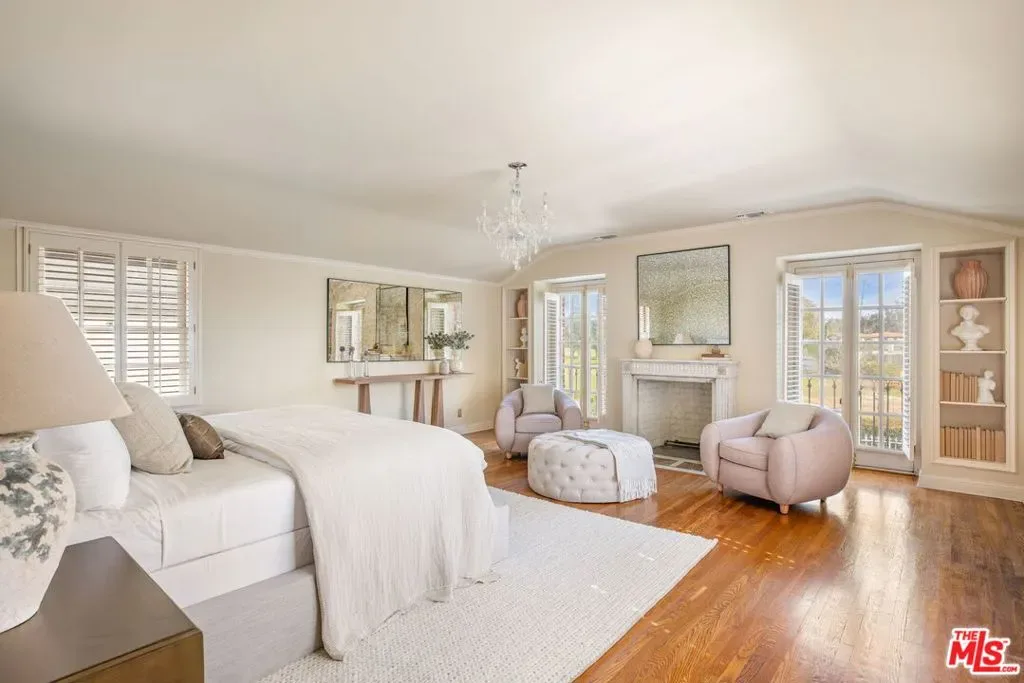Set on Hancock Park’s most coveted street, this grand Colonial estate overlooks the fairways of the Wilshire Country Club and embodies a rare blend of classic architecture with exceptional indoor-outdoor living. On the market for the first time in over 43 years, the residence is defined by large scale living spaces and exceptional privacy. A wide formal foyer introduces sophisticated interiors, including a formal living room and a refined library, both with fireplaces and access to a well-equipped garden. The dining room seats twelve, overlooking the manicured grounds. The chef’s kitchen is adorned with top-of-the-line appliances, ample storage, a large center island, a second site for laundry, and a sunlit breakfast area with fireplace. The main level also includes two powder rooms, a housekeeper’s suite, and direct access to the three-car garage. Upstairs, a sweeping staircase leads to a serene primary suite with panoramic golf course views, a fireplace, large dressing room, and en-suite bathroom. Completing the upper level are five additional, well-proportioned bedrooms, three updated baths, a playroom/flex space, a laundry room with kitchenette, and ample storage throughout. The sprawling backyard is ideal for entertaining, offering multiple outdoor lounge and dining areas, a private pool, fireplace patio, outdoor kitchen, unobstructed views of the golf course, all surrounded by lush landscaping. A rarefied opportunity in Hancock Park, moments to both the Wilshire Country Club and the perpetual buzz of Larchmont Village.