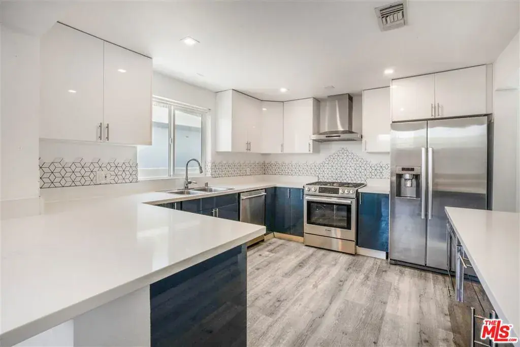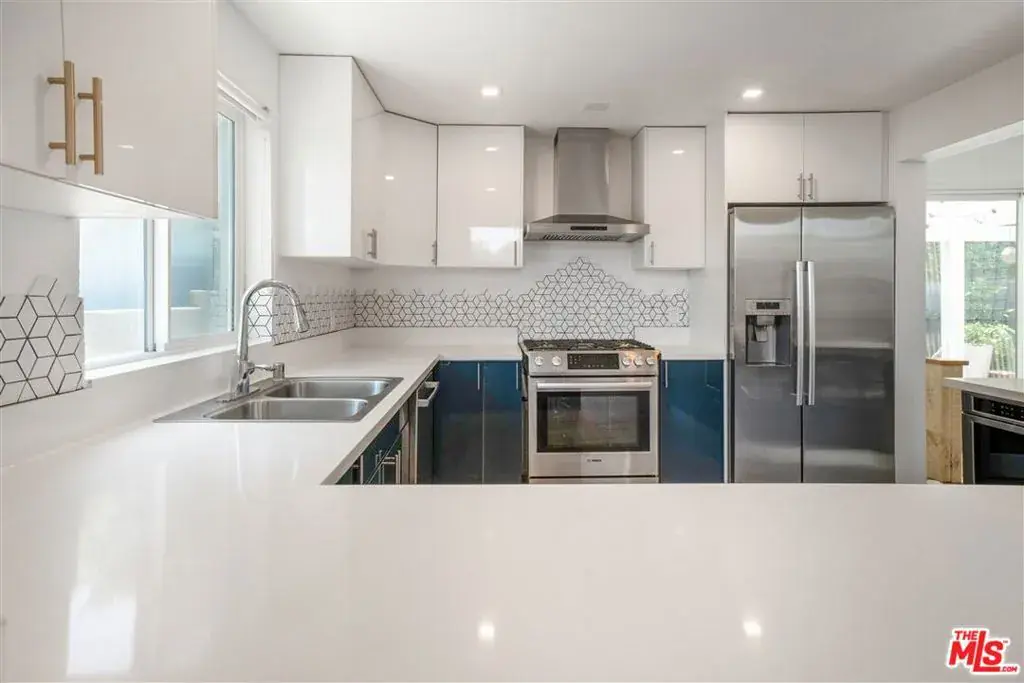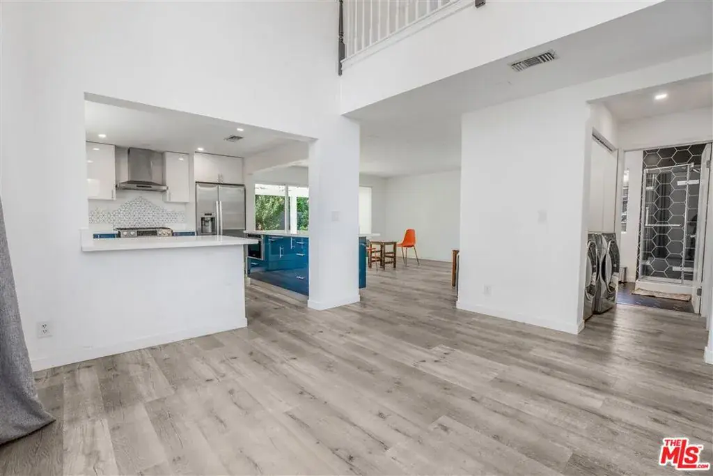 Stunning contemporary residence located at 2481 S Bundy Dr, offering over 2,300 sq ft of updated living space in a highly convenient West Los Angeles location. This spacious 4-bedroom, 3-bath home features an open and functional floor plan enhanced by exceptional natural light and soaring ceilings. A wall of oversized windows illuminates the main living area, creating a bright and inviting atmosphere throughout.The renovated kitchen is designed for both everyday use and entertaining, showcasing modern cabinetry, quartz countertops, stainless steel appliances, and a large peninsula with bar seating. The kitchen opens to the dining and living spaces, allowing for seamless flow and versatility. Large sliding glass doors lead to the private outdoor area, ideal for relaxation, gatherings, or additional dining space.The upper-level primary suite offers a generous layout and a spa-inspired bathroom featuring a soaking tub framed by a large picture window, a walk-in shower with stylish tilework, and a glass-block privacy wall that enhances both light and design. Additional bedrooms are well-proportioned, offering flexible options for guest rooms, home office use, or personal needs. Updated bathrooms include modern fixtures, clean finishes, and ample storage.Wide-plank flooring, recessed lighting, and contemporary finishes contribute to the home’s cohesive aesthetic. The property provides a comfortable balance of open communal spaces and private retreats, making it suitable for a variety of lifestyles. Sliding doors and expansive windows enhance the indoor/outdoor connection and highlight the surrounding greenery.With approximately 2,358 sq ft of living area, this home delivers generous space in a sought-after Westside neighborhood known for its accessibility to major commuting routes, shopping, dining, schools, and recreational amenities. Additional features include central HVAC, in-home laundry, and updated interior details that support both practicality and modern living.This residence presents an excellent opportunity for buyers seeking a turnkey property with contemporary upgrades and an efficient floor plan in a desirable Los Angeles location. The combination of thoughtful updates, natural light, and functional design creates a home that can accommodate a wide range of needs. A must-see for those looking for move-in-ready comfort and convenience on the Westside.