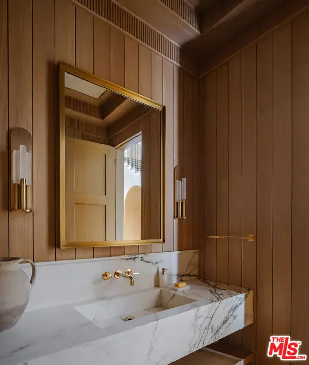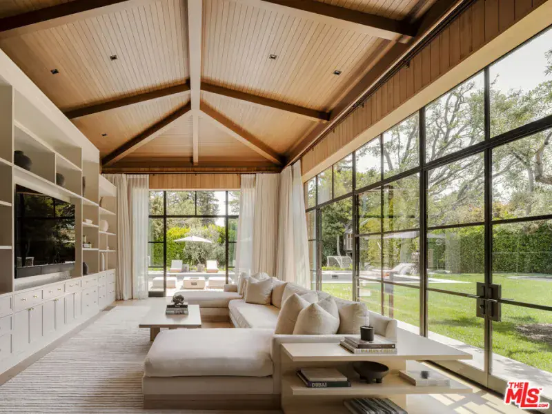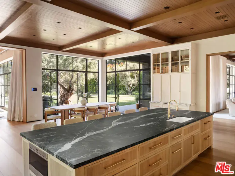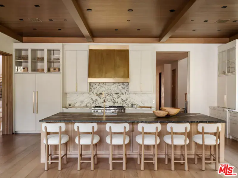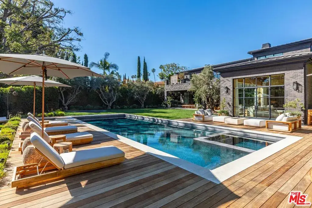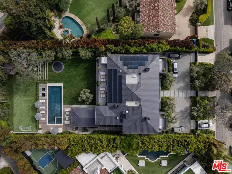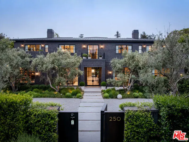 A gorgeous feat of modern design, Two Fifty South unites high style with timeless livability. Set behind gates on a rare, flat parcel in the heart of Brentwood Park, this renovated estate was recently reimagined by acclaimed fashion designer Petra Ecclestone and Sam Palmer. Warm yet modern, Two Fifty South blends architectural sophistication with an inviting California sensibility. Thoughtfully transformed in 2024, the home spans approximately 13,500 square feet across three levels and sits on over half an acre of manicured grounds offering privacy and elegance in one of Los Angeles’s most coveted neighborhoods. Twelve-foot ceilings rise across all three floors, complemented by hand-applied Roman plaster walls and wide-plank white oak floors in soft, neutral tones. The main level flows through three distinct sitting areas, dual offices, and a formal dining room that seats 20 guests. At the heart of the home is a stunning open kitchen with an oversized center island connected to a fully appointed secondary chef’s kitchen, designed for seamless entertaining.Upstairs, five bedrooms each with an ensuite bath anchor the private wing. The primary suite offers vaulted ceilings, dual spa-inspired bathrooms, two custom dressing rooms, and a private terrace with treetop views. On the lower level, a curated collection of amenities includes a golf simulator, bar, guest suite, gym with steam room, and a private theater, all designed to elevate day-to-day living. A canopy of mature olive trees and California native landscaping sets the tone for the gardenlush, expansive, and designed for both leisure and play. Wood decking surrounds a sparkling pool, while hot and cold plunge pools, an outdoor shower, and a thoughtfully placed soccer pitch invite year-round activity and connection. A custom-built treehouse adds a sense of charm, and is seamlessly integrated into the landscape.Additional features include a dedicated staff area with kitchen, lounge, dog room, and a security suite with the latest monitoring technology. The estate also offers garage and motor court parking for up to 12 vehicles, with a carriage-style driveway for guests.Moments from the Brentwood Country Mart, the Riviera, and top private schools, Two Fifty South is an uncompromising expression of inspired modern design offering an exciting opportunity to own a fully realized, resort-like estate in the heart of Brentwood Park.