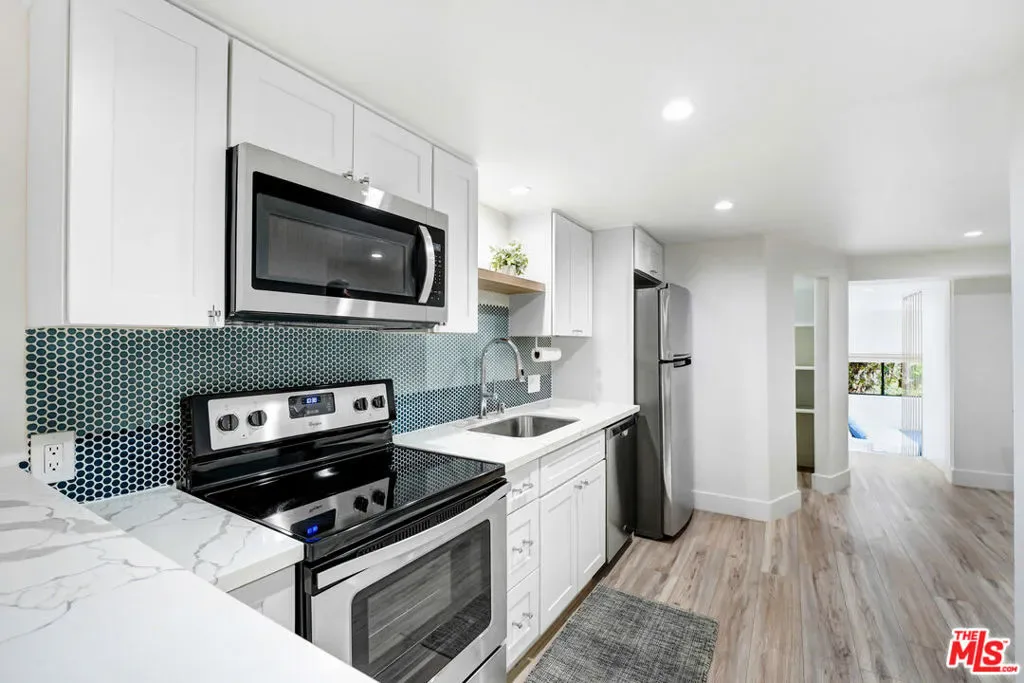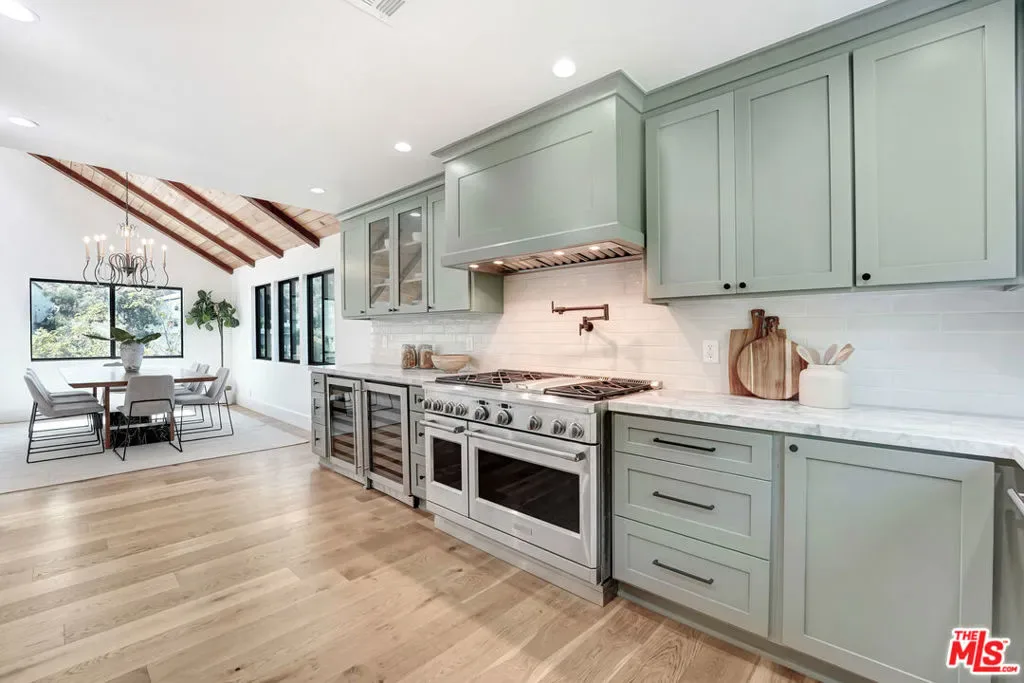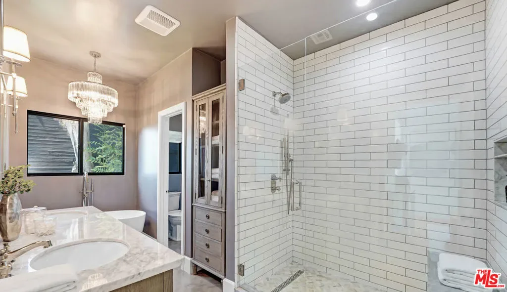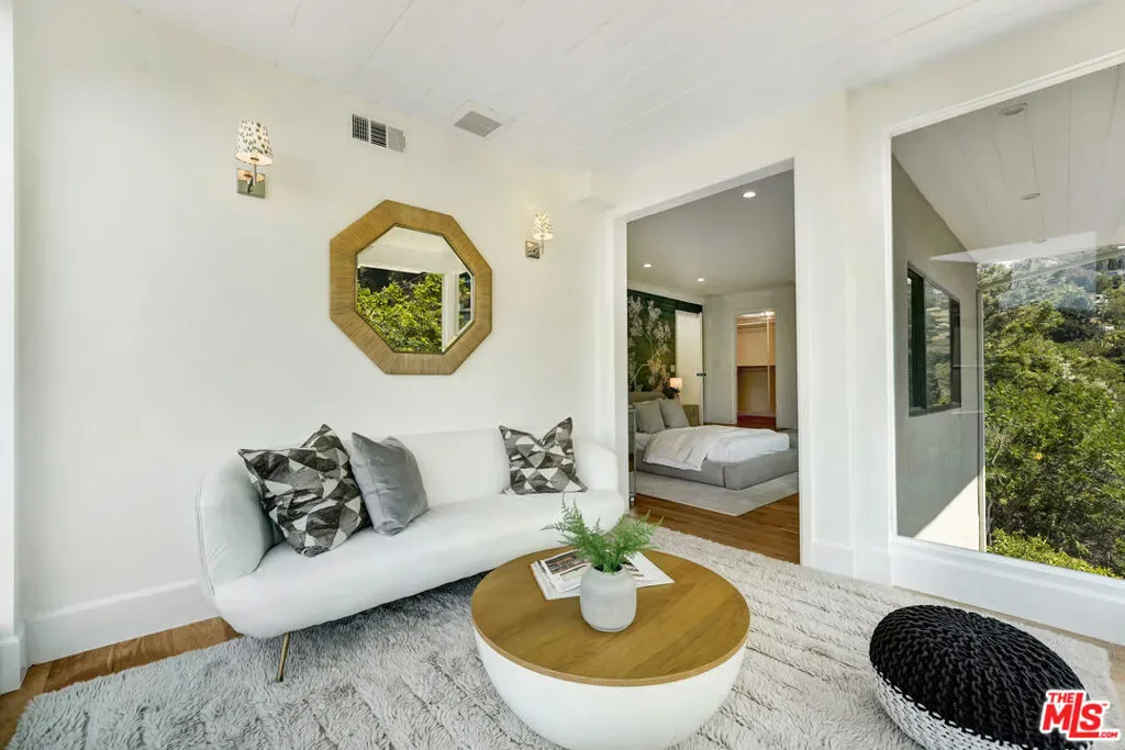 Meticulously renovated 3 bedroom home PLUS a separate, stylish bonus unit with kitchen, bathroom, and laundry! Breathtaking Panoramic city and canyon Views just minutes from the famous Sunset strip- the pictures DO NOT do the views justice. Making this home even more exceptional is its expansive quarter-acre double lot. The home features vaulted ceilings, wood floors, two fireplaces, new windows, new roof, and an upgraded electrical panel wired for an electric vehicle charger. Additional highlights include a laundry room, ample storage, a two-car attached garage, and much more. The chef’s kitchen boasts a high-end suite of GE Monogram appliances, built-in wine storage, an outfitted pantry, Carrera marble countertops, and beautiful custom cabinets. The primary suite is a private sanctuary on its own floor, offering views from every window, a custom walk-in closet, sitting room with city and canyon views, private office or nursery, additional closet, plus a spa-inspired en-suite bathroom featuring dual vanity sinks, Carrera marble counters, designer polished nickel finishes, freestanding soaking tub, and spacious shower. *Bonus* a separate suite below the main home with its own private entrance, wine bar, living/dining area, full kitchen, bathroom, and laundry ideal for guests, creative/office space, or a possible income opportunity. Multiple decks and a tiered backyard offer outdoor entertaining space with a barbecue area, seating and dining areas overlooking the relaxing sounds of the creek that flows at the foot of the property. Truly an exceptional opportunity to live in peaceful tranquility in a modern, sophisticated home close to several hiking trails, and with easy access to freeways. Advertised square footage is an estimate, and reflects the combined total of both home and bonus space. Buyer to verify all details, permits and measurements to their own satisfaction as broker and agents do not represent or guarantee the accuracy. A rare opportunity and true Hollywood Hills retreat!