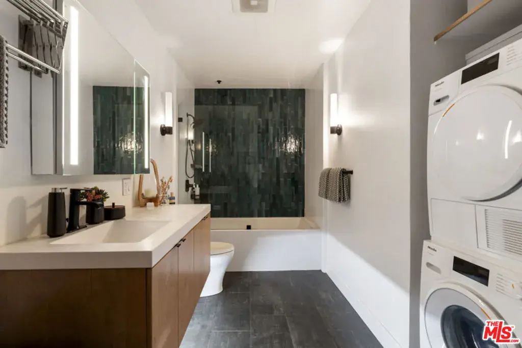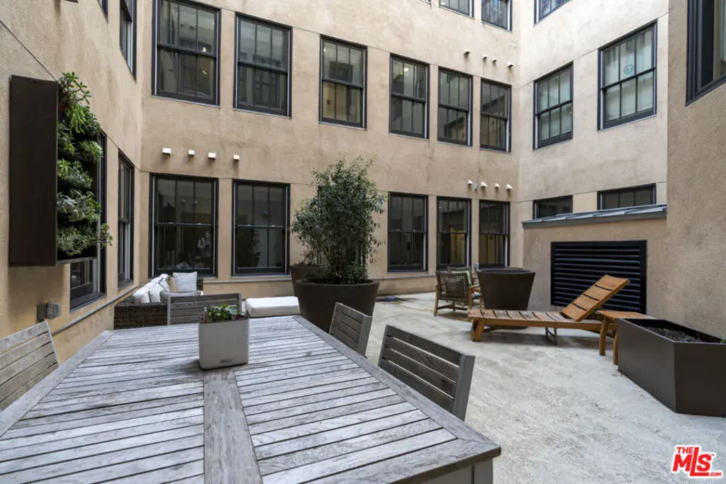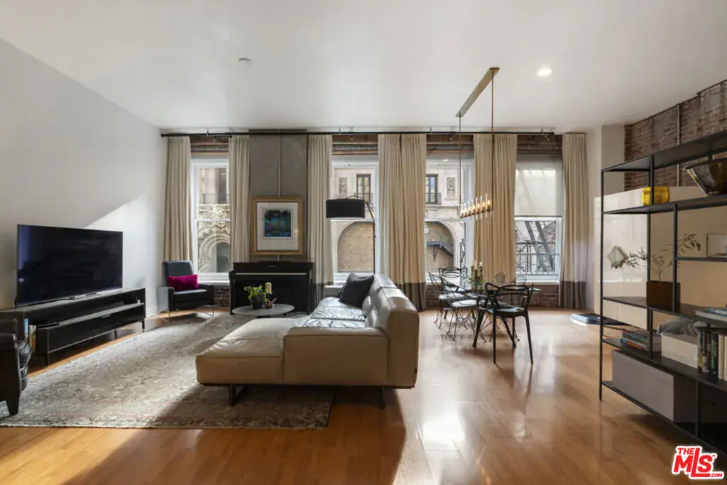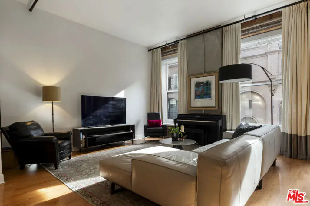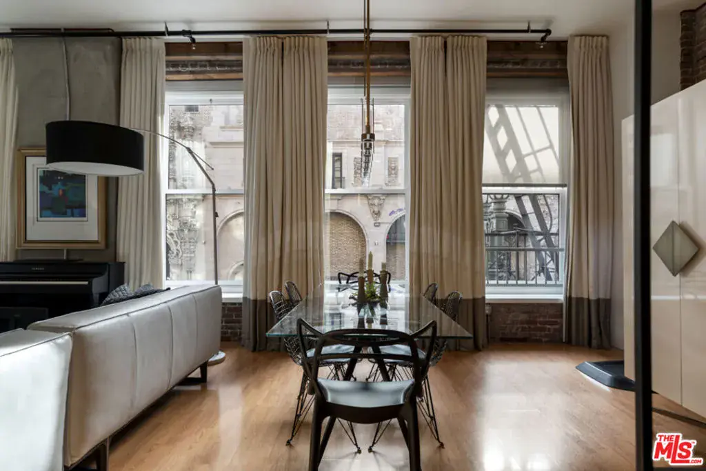A rare offering at the iconic Pan American Lofts, this beautifully renovated open-concept 1-bedroom blends historic grandeur with refined modern design. Built in 1897 and designated an L.A. Historic Cultural Monument, this intimate 40-unit Beaux Arts community qualifies for the MILLS ACT, offering significant property tax savings which helps offset the monthly HOA dues. Inside, 11′ ceilings, original exposed brick, and oversized windows flood the space with natural light. The fully renovated chef’s kitchen features custom cabinetry and high-end (Viking & Wolf) stainless steel appliances, while the redesigned bath delivers a clean, spa-like aesthetic. The open layout enhances the loft’s scale and flexibility for live/work living. Conveniences include in-unit laundry, controlled entry, a community interior courtyard lounge area, and a prime parking spot in the secured on-site parking garage. Ideally located at 3rd & Broadway, the home is directly across from Grand Central Market and moments from the Bradbury Building, Metro, Little Tokyo, and DTLA’s best dining and culture. HOA dues include water, gas, sewer, trash, high-speed internet, and premium cable (Spectrum + HBO).