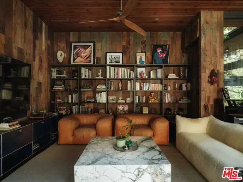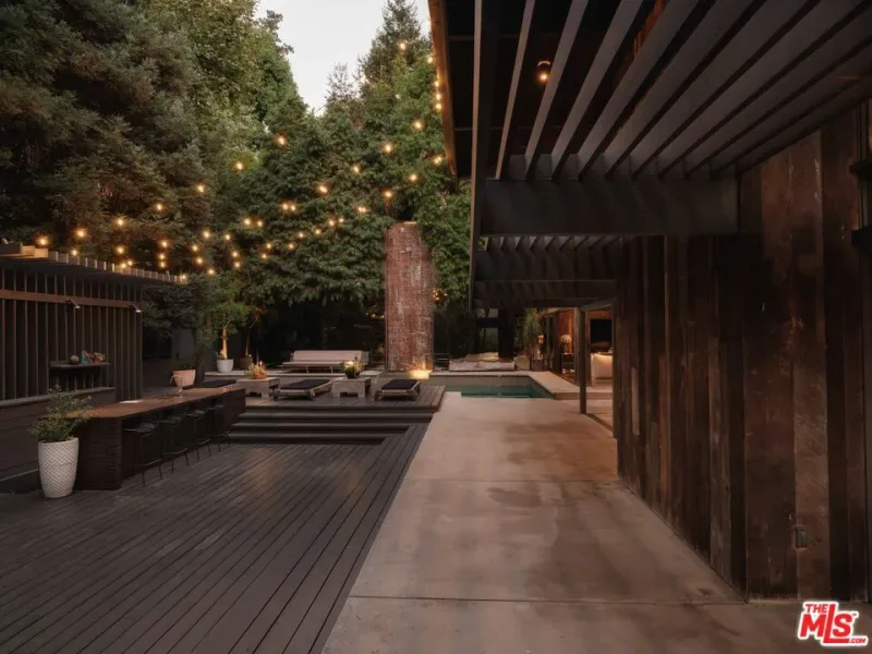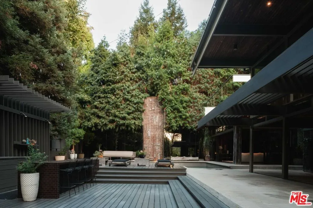 “The Ajioka House” a 1960 post-and-beam by Buff & Hensman, meticulously restored and reimagined by Commune Design. Privately tucked behind gates on nearly an acre of lush, landscaped grounds, this architectural compound unfolds across 4 detached structures: the main residence, guest quarters, and studio dwellings which are linked by lush garden pathways, sculptural fire features, and two custom Stan Bitters water installations. Each space is thoughtfully composed to celebrate light, material, and connection to nature. Interiors are wrapped in reclaimed oak cladding, grounded by polished concrete floors, exposed beams, and a dramatic brick fireplace that anchors the main living area. At the heart of the home, a 24-foot Boffi kitchen island of stainless steel and walnut serves as a sculptural centerpiece, opening effortlessly to expansive outdoor living areas, an open-air bar, and a collection of serene spaces for gathering and retreat. Surrounded by mature landscaping and canyon vistas, the property offers a profound sense of peace and privacy. Just moments from the iconic Sunset Strip, The Ajioka House endures as a preserved architectural landmark, embodying the clarity, craftsmanship, and enduring vision that define Buff & Hensman’s most celebrated works.