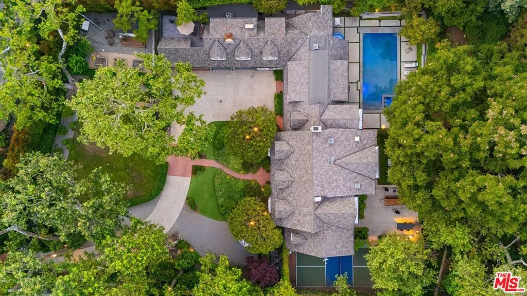 *PRICED TO SELL AMAZING DEAL* Nestled within the prestigious enclave of Mandeville Canyon, this exceptional gated estate offers an unparalleled 1.2-acre sanctuary beneath a majestic canopy of mature sycamores and oaks. Reimagined with precision and timeless vision, the 8,476-square-foot Hamptons-style residence is a masterclass in quiet luxury, blending heritage charm with contemporary sophistication to create a haven for both elegant entertaining and relaxed everyday living. Comprising eight bedrooms and ten baths, the estate has been thoughtfully curated to exude a refined sensibility. Inside, a luminous interior unfolds with reclaimed wood beams, rich oak hardwood floors, and expansive glass doors that dissolve the boundary between indoors and out, imbuing the home with warmth, texture, and a seamless connection to nature. The heart of the home is a chef’s kitchen of rare caliber designed for the culinary aficionado with a 60″ Wolf range, triple SubZero refrigeration, dual dishwashers, three sinks, and a generous walk-in pantry. Adjacent informal dining and a cozy TV alcove offer spaces for intimate gathering, while the formal living and dining rooms provide an ideal backdrop for sophisticated soirees. Anchoring the estate is a breathtaking two-story great room, perfectly appointed for entertaining, complete with a full bar, temperature-controlled wine cellar, and bespoke entertainment center. A richly paneled private study with a full bath offers a serene workspace or stately library retreat. Beyond the main residence, a detached one-bedroom guest house with private entrance and secluded patio offers guests a luxurious, autonomous escape. Two en-suite staff or flex bedrooms provide versatility for a home gym, office, or additional accommodations. Upstairs, the primary suite is a sanctuary of serenity, capturing treetop vistas and thoughtfully designed with a beverage bar, a marble-clad spa bath featuring a freestanding soaking tub and indulgent steam shower, and an expansive custom walk-in closet. Each additional bedroom suite offers its own tranquil ambiance, adorned with classic detailing and bathed in natural light. Outside, the grounds evoke a resort-like sensibility: a stunning ozone-purified pool and spa invite restful retreat, while fire tables, heated lounges, and a fully equipped outdoor kitchen create the ultimate stage for al fresco entertaining. A lighted pickle ball court encourages active recreation, while a treehouse and playground provide whimsical charm for all ages. Privately hedged and gated, with motor court parking for over 12 vehicles, including a two-car garage and a two-car carport the property is secured by a cutting-edge security system and offers the rare blend of seclusion and accessibility.Ideally located moments from the Brentwood Country Mart, world-class dining, luxury shopping, and scenic hiking trails, this remarkable estate is not merely a residence, it is a lifestyle defined by grace, privacy, and enduring sophistication.