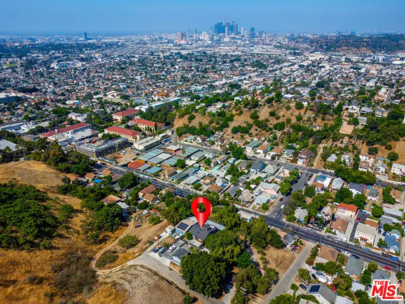 Perched high in the hills of Lincoln Heights, this 5-bedroom, 4.5-bath modern retreat invites you to experience its elegance, ease, and panoramic views of the downtown skyline! Inside, gleaming tile floors guide you to an open-concept living and dining area, blending effortlessly into a kitchen defined by stainless appliances, minimalist cabinetry, and a honeycomb backsplash. Three bright bedrooms grace the main floor, while two more, along with a stylish family corner and kitchenette, await on the lower level, where glass sliders open to an expansive entertainer’s patio. Your generous primary suite features vaulted ceilings, a walk-in closet, and a chic ensuite. A flexible bonus room, a laundry nook, and a studio ADU with its own kitchen and bath add everyday versatility. Whether hosting under the stars on your rooftop deck or unwinding on one of several serene terraces, the city feels just far enough away. Located only a short drive from Dodger Stadium, local schools, major freeways, and the vast array of leisure and shopping options of DTLA, come explore a lifestyle with elevated design!