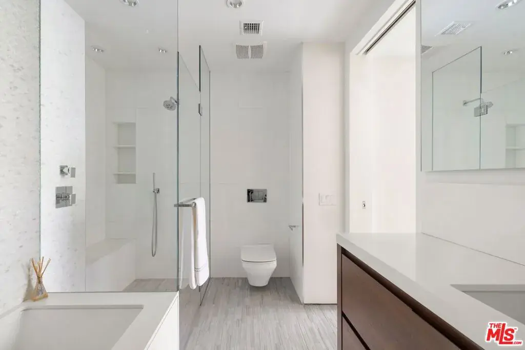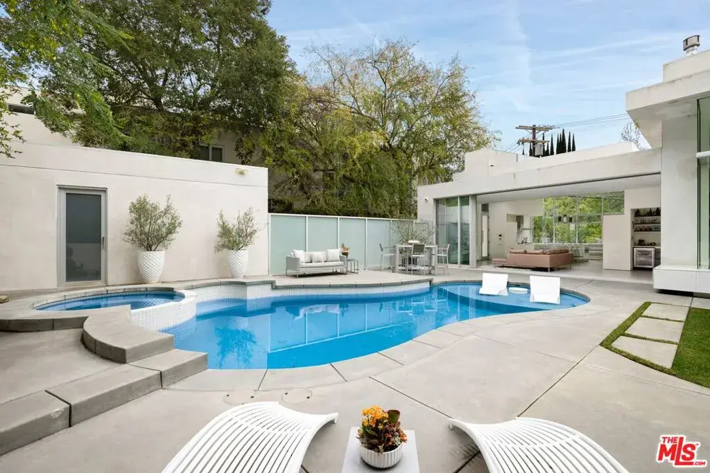 Spectacular architectural glass house in Upper Bel Air. Perched up and off the street on 3/4 of an acre. Grassy yard, sparkling pool, separate garage that could be perfect for a potential ADU or bonus space. Each en-suite bedroom is large, with generous closets. Living, dining, eat-in kitchen, and entertaining spaces flow with perfect scale. Bathed in natural light all day, yet private. Award-winning Roscomare Rd. Elementary, just S of Mulholland providing central access to the Westside of LA and the Valley.