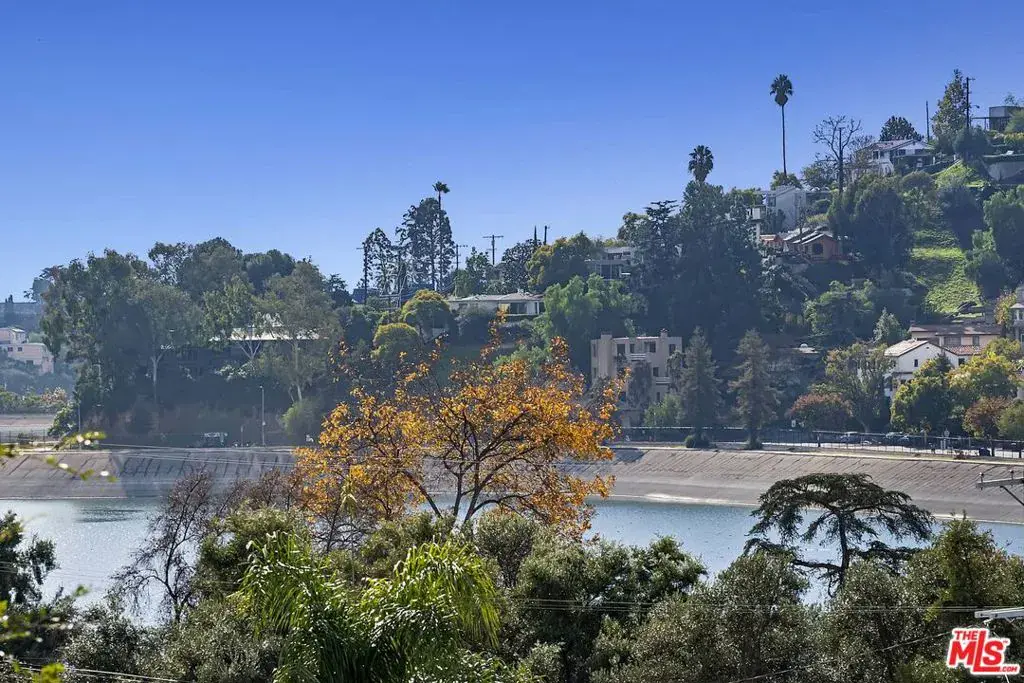 Resort style compound next to the Silverlake reservoir! Lush landscaping and palm trees surround the entertainer’s heated pool complete with cabana, outdoor bar, outdoor shower, and outdoor furniture. The house located on a rare street to street lot is walled and gated for privacy with grassy front yard and patio entry. Sun-filled upstairs features hardwood floors, living room with wood burning brick fireplace, outdoor deck with gorgeous views of the reservoir and Griffith Park observatory, formal dining room, chef’s kitchen with stainless steel appliances, 2 bedrooms, bath with vintage pink tile and direct entry 2 car garage. Downstairs showcases a spacious bedroom, bath, laundry area and a very large den with wood burning fireplace that opens out to the resort style pool area. House located in coveted Ivanhoe School District. Short distance to many beloved Silverlake destinations including Silver Lake Wine, Whole Foods, La Mill and more. Landlord pays for weekly pool maintenance and gardener. Washer, Dryer, Refrigerator, Dishwasher included. 1 year lease minimum.