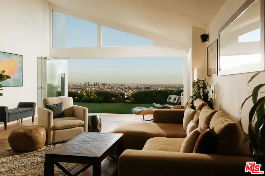 The best view in LA, perched near the top of a serene hillside cul-de-sac in coveted Outpost Estates, this home is a private, secluded sanctuary with iconic pedigree. Once owned by a legendary Rock & Roll Hall of Fame musician, this property offers both a storied past and exceptional potential, with approved plans for a 4,300+ sq ft modern residence or the opportunity to enjoy the beautifully updated home currently on site. Showcasing jaw-dropping, jetliner views from the ocean to the Hollywood sign, the existing 4-bedroom, 3.5-bath residence is an urban oasis designed for both escape and entertaining. Soaring ceilings, an open floor plan, and floor-to-ceiling windows flood the interior with natural light and connect seamlessly to a lush backyard with a heated pool and spa, capturing the essence of Hollywood Hills indoor/outdoor living. The remodeled kitchen features stainless steel appliances and opens to the main living area. Modern upgrades include Google Home controlled heating and cooling, state-of-the-art security, and a full video monitoring system. Clean lines, abundant light, and a contemporary feel make the home ideal for end users or an excellent investment opportunity. Convenient to both the city and the valley, this versatile property offers the rare chance to live, expand, or invest in one of Los Angeles’ most desirable neighborhoods. A blend of history, privacy, and design potential, 2669 Larmar Rd. is a Hollywood Hills offering unlike any other.