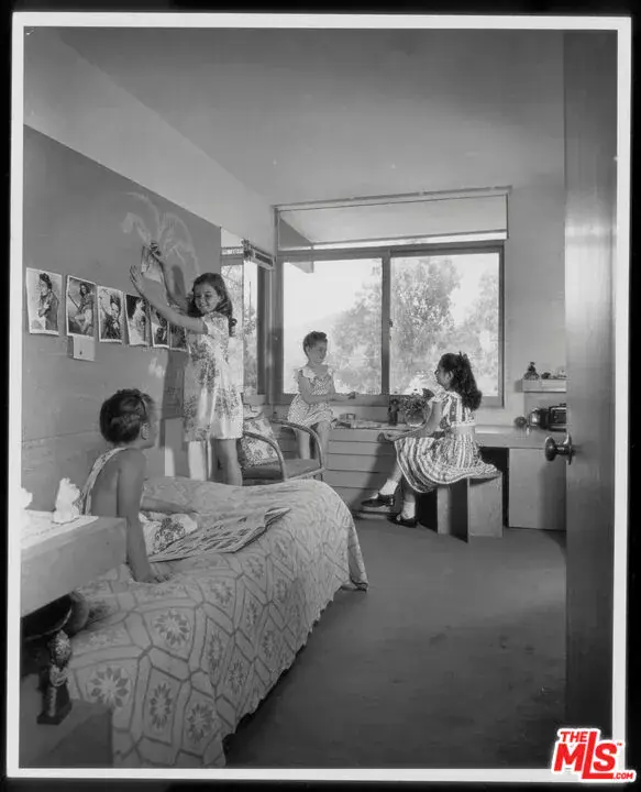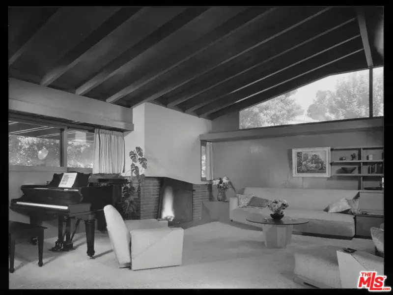 Designed in 1941 by modernist master R.M. Schindler, the Druckman Residence is a rare example of his late-period work in the Hollywood Hills. Conceived for Dr. Jacob S. Druckman and his wife, artist Margaret Druckman, the home features Schindler’s distinctly asymmetrical gabled roof–concealing the house from the street while maximizing canyon views and light through dramatic clerestory windows. The residence balances openness with intimacy through Schindler’s clever, split-level floor plan that separates the expansive public rooms from the private bedroom wing, creating both intimacy and privacy. The main living room is anchored by a dual indoor-outdoor fireplace, extending the interior seamlessly onto the front patio and reinforcing the home’s early commitment to indoor-outdoor living. The adjacent kitchen preserves Schindler’s original built-in breakfast nook, paired with updated appliances and surfaces in the spirit of the original design. A den beside the living area offers a quieter retreat with treetop views and sculptural ceiling lines. Down the split-level corridor, four bedrooms maintain a more intimate scale, adding to the home’s overall efficiency. The value focus of the mid century movement is more relevant and important today with increased cost of living and ever increasing utility costs. Each is positioned to maximize natural light and connection to the outdoors. The primary suite includes canyon views, generous closet, and a recently updated en-suite bath, while the additional guest rooms also feature original built-ins and backyard access. Outside, newly terraced landscaping leads to a private oval pool–attributed to Richard Neutra. 2764 Outpost Drive is a rare architectural offering, combining architectural significance with everyday livability, one with a deep connection to light and landscape.