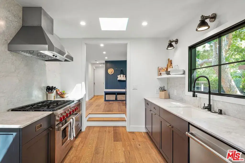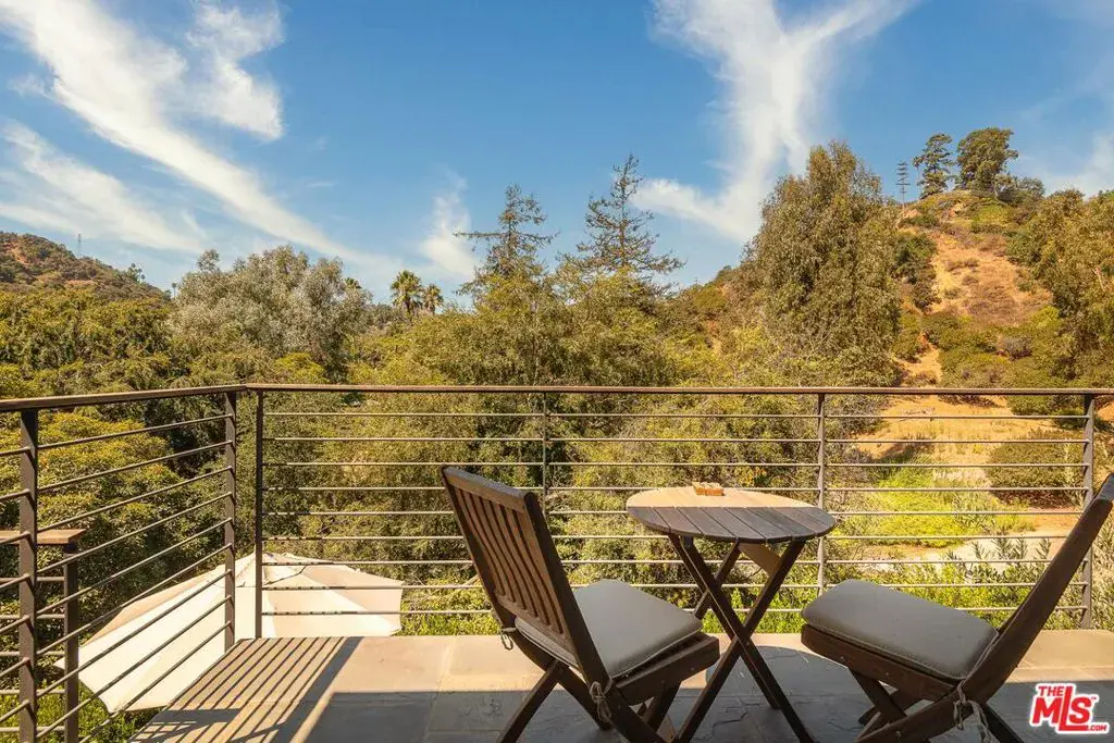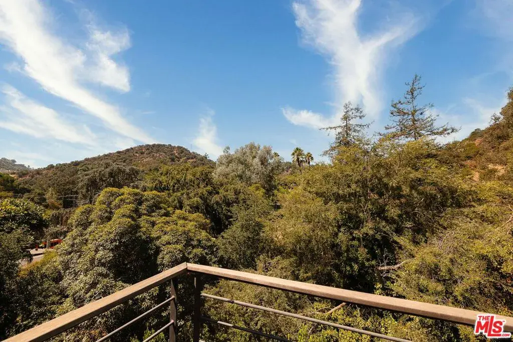 Introducing a meticulously renovated home with breathtaking canyon views, tucked away on a peaceful, tree-lined street in the hills above Laurel Canyon. This three bedroom residence features two full-size bedrooms plus a versatile third room ideal for a home office, nursery, or guest space. Step inside to an airy, open-concept layout flooded with natural light. The gourmet kitchen features premium Sub-Zero and Wolf appliances, gleaming marble countertops, and custom cabinetry. The spacious living and dining areas extend seamlessly to a private Ipe wood deck, complete with a built-in bar, ideal for outdoor dining. The primary suite offers a cozy fireplace, a private balcony with canyon views, and a luxurious spa-like bathroom featuring dual vanities and a wet room with a soaking tub and shower. The second bedroom also includes its own private balcony and a spa-inspired bathroom. Outside, the lower yard provides a lush, grassy area perfect for entertaining amidst serene landscaping. Additional amenities include built-in desks with storage, a LifeSource whole-house water filtration system, a security system with in-wall iPad control, Sonos surround sound, and more. Just minutes from the Sunset Strip and Ventura Blvd, this home epitomizes modern California living.