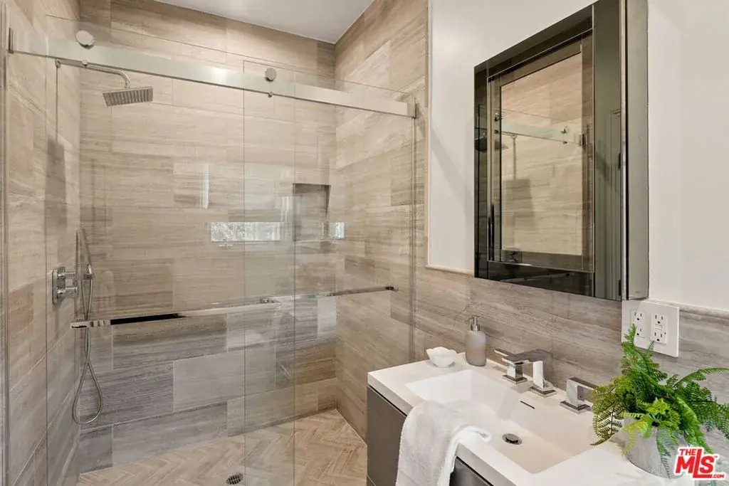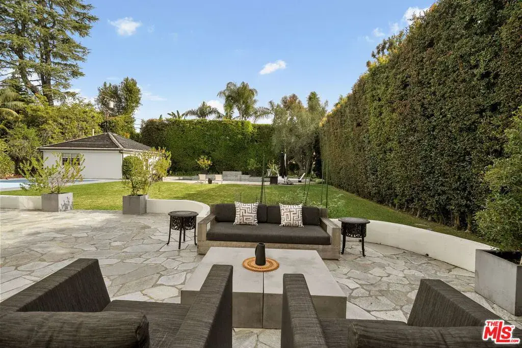 Located on one of Brentwood’s most coveted streets, Homewood Road, this newly reimagined estate offers a sophisticated balance of timeless design and effortless California living. Thoughtfully renovated by the current owner, the residence spans approximately 6,800 square feet on an expansive, flat 18,359-square-foot lot. A grand double-door entry opens to a sun-filled foyer with soaring 23-foot ceilings, immediately establishing the home’s sense of scale and light. The main level is designed for both refined entertaining and everyday comfort, featuring a formal dining room overlooking the gardens, a dedicated theater, and an expansive great room where a double-island chef’s kitchen seamlessly connects to the family room and outdoor living spaces. The kitchen is appointed with custom wood cabinetry, marble countertops, professional-grade appliances, and a walk-in pantry, while a window-wrapped breakfast nook enjoys tranquil views of the pool and grounds. Two generously sized bedrooms and a full laundry room complete the main floor. The upper level hosts four en-suite bedrooms, each with walk-in closets, including a luxurious primary suite with a private sitting area, office, and dual walk-in closets, one currently configured as a fitness studio. Set behind lush landscaping, the resort-style backyard features a sparkling pool and spa, multiple outdoor lounging and dining areas, and a broad lawn ideal for recreation. Additional amenities include a private pickleball court and a fully permitted two-bedroom, one-bath guest house with its own laundry. Situated within the coveted Kenter Canyon Elementary School district and surrounded by Brentwood’s finest estates, this exceptional property offers a rare combination of scale, privacy, and modern elegance in one of Los Angeles’ most desirable neighborhoods.