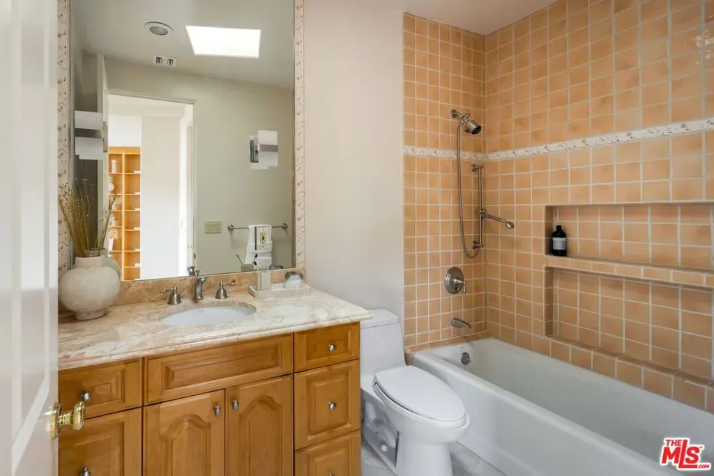 EXCEPTIONAL VALUE IN PRIME CHEVIOT HILLS. This spacious traditional home is filled with natural light and set on a large lot with mature landscaping, offering privacy, great scale, and flexible living spaces. The home features 7 bedrooms and 7 bathrooms with an excellent layout, including three bedrooms on the main level and four bedrooms upstairs. A welcoming entry showcases a beautiful custom mosaic detail in the flooring. The well-appointed kitchen includes granite countertops, double ovens, ample cabinetry, a large center island with seating, a breakfast nook, and a high ceiling with a skylight that fills the space with natural light. The living, family, and dining rooms all feature beamed ceilings, with a fireplace in the living room, creating warm and inviting spaces ideal for both everyday living and entertaining. Upstairs, the primary suite offers dual walk-in closets and a spa-like bathroom with double vanities, abundant natural light, a soaking tub, and a steam shower. Three additional ensuite bedrooms and a large bonus area complete the second level. The private backyard features a covered patio ideal for outdoor dining and entertaining, along with generous yard space. Additional highlights include a 2-car garage and abundant storage throughout. A well-scaled home with excellent natural light, privacy, and versatility, offering one of the best values in Cheviot Hills.