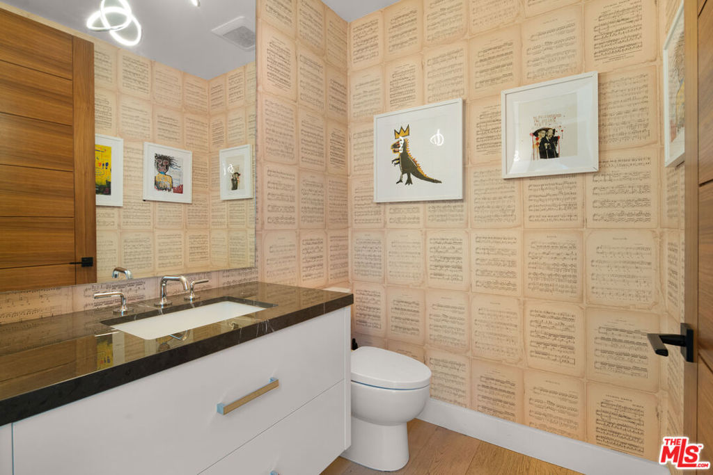 Impeccable Modern Estate in Castle Heights with Rooftop Deck, Pool, and Spa. Nestled in a quiet neighborhood between Cheviot Hills, Beverlywood, and Culver City, this stunning 4-bedroom, 5-bath features chic modern design and seamless flow between the luxurious indoor spaces and wonderful outdoor areas. The chef’s kitchen offers a large island with breakfast bar seating, custom cabinetry, and top-of-the-line appliances and flows into a dramatic dining room. The generous living room features an eye-catching stone fireplace and sliding glass pocket doors that open to the incredible backyard with pool, spa, huge patio, and large grassy lawn. One en-suite bedroom and a powder room round out the downstairs, and upstairs there are three additional en-suite bedrooms, including a spacious primary retreat with a fireplace, private balcony overlooking the pool, a massive closet, and a spa-inspired bath with custom tilework and double vanity. A large second-floor terrace offers additional outdoor living space, with a spiral staircase leading up to a huge rooftop deck with 360-degree city views, the ideal place to enjoy the beautiful LA sunsets. Solar panels with solar battery can power the whole house day and night with integrated EV car charging. Other thoughtful modern upgrades include motorized blinds, an integrated smart home system with centralized AV, security cameras, and whole-home audio. Fantastic location, just minutes from Beverly Hills, Century City, Downtown Culver City, and UCLA. Plus, convenient freeway access, proximity to renowned golf courses, and top rated schools nearby.