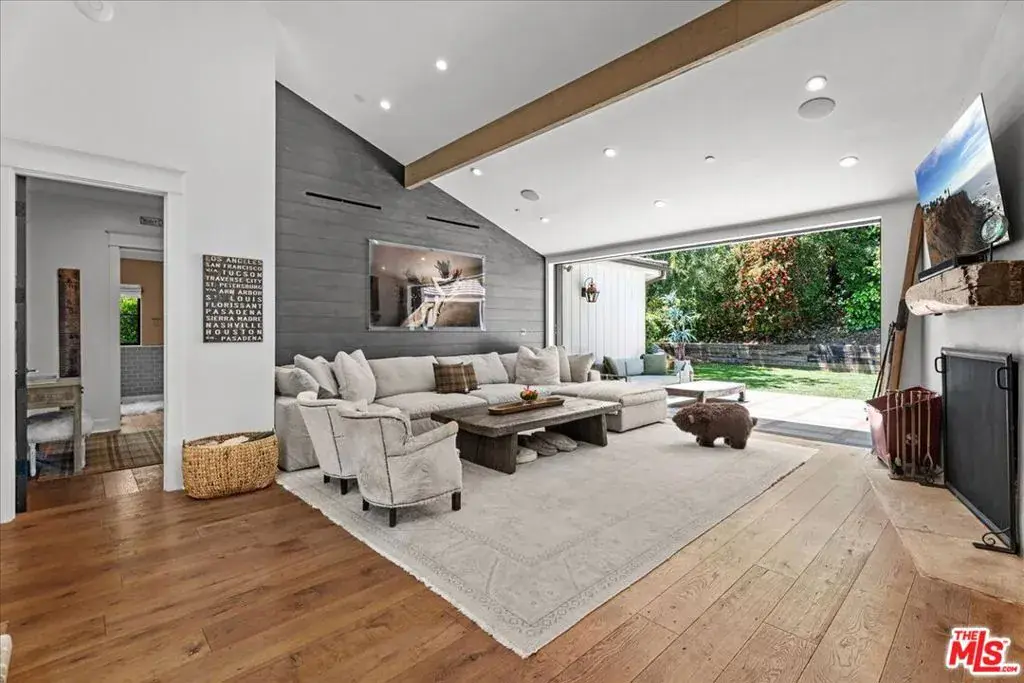 Sophisticated Hollywood Hills Sanctuary Under $4.5 Million Meticulously crafted 5-bedroom, 5-bathroom residence on a quiet cul-de-sac in one of Hollywood Hills’ most exclusive enclaves. This home seamlessly blends rustic warmth with contemporary sophistication through exceptional architectural details and premium finishes. Floor-to-ceiling windows flood interiors with natural light, while four distinctive stone fireplaces anchor the living spaces. Soundproof interior walls ensure privacy. The thoughtful layout accommodates both intimate gatherings and larger entertaining. Curated details include Farrow & Ball custom paint, Forbes & Lomax fixtures, and top-tier kitchen appliances with a custom beveled-mirror Sub-Zero refrigerators. Authentic historic materials create warmth and character: Antique French limestone fireplace hearth, antique Tuscan farmhouse stone accent wall, century-old reclaimed wood beams, vintage French oak flooring from Lorraine, and authentic Scottish Tartan carpet. Five generously-sized bedrooms offer privacy, while spa-inspired bathrooms provide retreat moments. The home features a soundproof formal bar, expansive veranda, porch swing, low-maintenance landscaping, room for a pool (see AI pool rendering picture. Seller has obtained quote to build in ground pool) Direct garage access adds convenience. Exceptional craftsmanship meets livable luxury in one of LA’s most coveted celebrity neighborhoods. Buyers should independently verify all information through personal inspection and appropriate professionals.