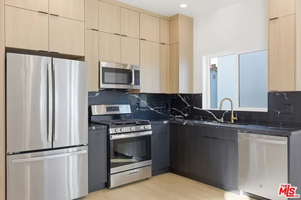 Welcome to this stunning brand new construction residence in the highly sought-after West Adams neighborhood, one of Los Angeles’ most vibrant and rapidly evolving communities known for its incredible dining scene, creative culture, and central location. Perfectly situated just minutes from Culver City, Downtown Los Angeles, USC, and the Westside, the area offers convenient access to some of the city’s most popular restaurants, cafe’s, and nightlife including Highly Likely, Mizlala, Alta Adams, Tartine, and many other local favorites that make West Adams one of LA’s most exciting places to live. This bright and spacious 3-bedroom, 3.5-bathroom modern home was thoughtfully designed with both style and functionality in mind. The open concept layout is filled with natural light and enhanced by high ceilings, skylights, and premium finishes throughout. Large living spaces flow seamlessly into the kitchen creating an ideal environment for both everyday living and entertaining. The sleek contemporary kitchen features custom cabinetry, designer stone countertops, and stainless steel appliances including a gas range, oven, microwave, refrigerator, and dishwasher. The home also includes the convenience of in-unit washer and dryer. Each bedroom is generously sized and includes walk-in or custom closets, while each room is equipped with its own individual heating and cooling system allowing for personalized comfort and energy conservation. The bathrooms showcase modern finishes and clean contemporary design. One of the home’s most impressive features is the approximately 550 square foot private rooftop deck (not included in the interior square footage) offering beautiful open views and the perfect space for relaxing, entertaining, or enjoying sunsets over the city. In addition, the residence features a private yard, providing rare outdoor space for a home of this style and location. Additional highlights include high-end materials, abundant natural light, spacious modern living areas, skylights, premium flooring, and designer finishes throughout. Located in the heart of West Adams, residents enjoy a unique blend of neighborhood charm and city convenience with easy access to the Expo Line, Culver City tech and studio hubs, Downtown LA, and the Westside beaches. A rare opportunity to live in a beautifully designed brand new modern residence in one of Los Angeles’ most desirable and dynamic neighborhoods. — (3 units on property. Photos are a mix of all the units with same finishes. Furnished photos are virtually staged)