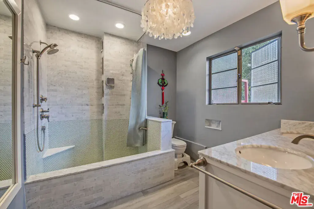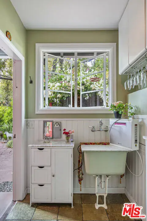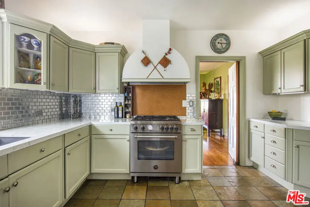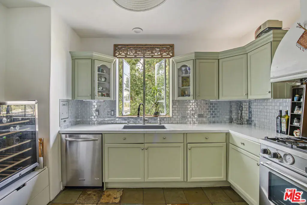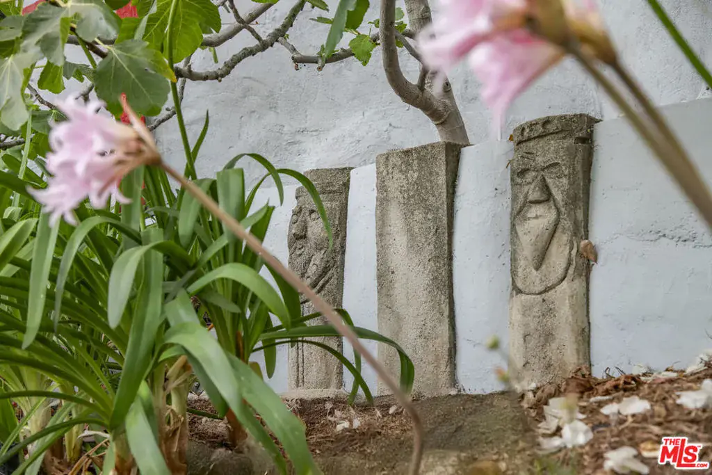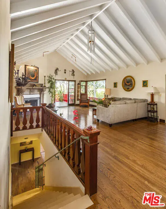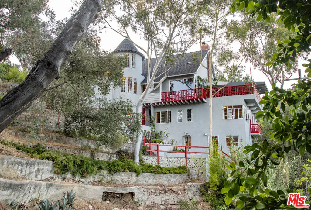 This magical estate, perched in the legendary Hollywood Hills, is a four-story architectural masterpiece and includes something very rare in the hills; when you step outside your kitchen door, it’s onto your 6495 sq.ft. terraced, private park complete with fruit trees, a large raised bed vegetable garden, and cozy, private patios draped in shade by a huge 100-year-old oak tree. This is not just a home, it’s a sanctuary above the fray, a living love letter to Classic Hollywood with a view of the iconic sign right outside your front door. Designed by acclaimed architect W. L.Schmolle and built by a renowned structural engineer, this 1948 castle blends timeless elegance with soul-stirring charm. Step through the front door and into a world of grandeur. Soaring 14-foot vaulted ceilings, a marble-clad wood-burning fireplace, and expansive picture windows open to panoramic views from Griffith Park to Long Beach. French doors lead you outside to a 400 sq. ft. entertainer’s terrace with yet another fireplace, slate floors, and treetops swaying in the breeze. Every inch of this home whispers craftsmanship: hand-milled black walnut from Michigan, custom pocket doors, leaded glass windows, and subtle elements of Feng Shui which keeps the energy flowing freely. The chef’s kitchen is a modern marvel with an Italian Bertazzoni range, stainless appliances, and ambient lighting that makes every culinary moment magical. Wander through one of the secret passageways and find yourself in the turret, a three-story tower where you’ll discover an intimate lounge leading to a sun-soaked veranda, above that a circular meditation space and a bonus bedroom nestled beneath a skylight. Its like something out of a fairytale. The primary suite is expansive with views from every window, 2 large walk-in closets, and a Juliet balcony. The main bath has been completely redone, featuring dual marble sinks and heated floors. There is abundant storage space throughout the home, including a separate wine room complete with a 170-bottle EuroCave wine fridge. An 800 sq ft guest apartment with vintage O’Keefe & Merritt stove, clawfoot tub, and two private entries occupies the home’s lower level offering even more opportunity for gracious living and creativity. Next to the property, a short walk down an historic stairway brings you to the charming Beachwood Village Square with its shops, market, and restaurant. Hiking trails to Lake Hollywood are right outside your front door, as well as access to horseback riding at Sunset Ranch. This is more than real estate. This is your storybook home! A private paradise.
