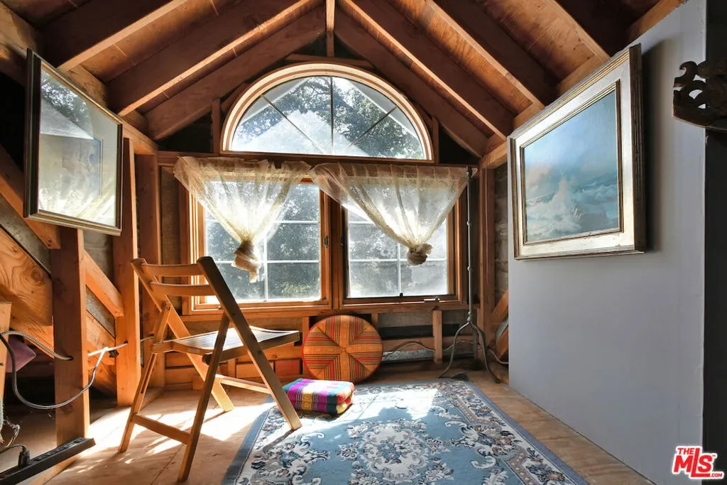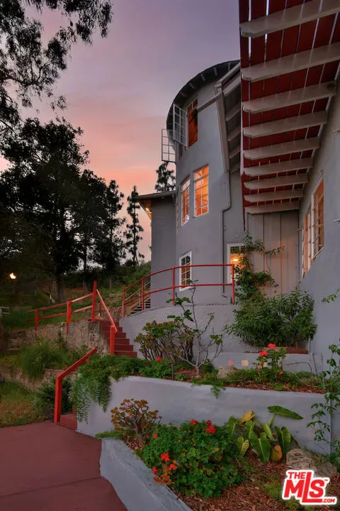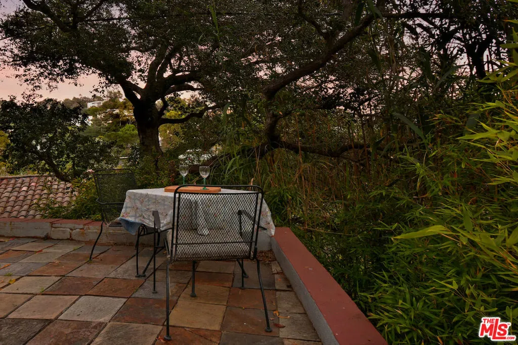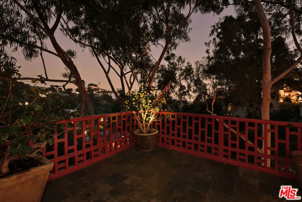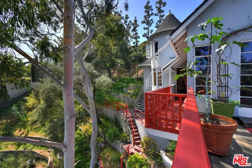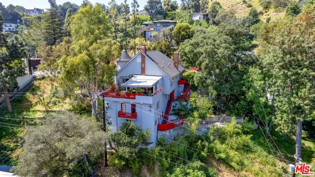 Welcome to the famed Hollywoodland enclave, where storybook style lives on today just as it has for over a century. This is a rare opportunity to reside in “The Enchanted Cottage,” a historic and whimsical retreat complete with its very own turret. If you have ever dreamed of living in a character-filled home like those found in the fairy tales of your childhood, this is that dream realized. Nestled beneath the iconic Hollywood Sign in Beachwood Canyon, the site offers pure mountainside serenity while remaining only moments away from the city. The glamour of Hollywood’s heyday is alive and well in this classic residence, which has been pristinely maintained and thoughtfully renovated. By floating the residence above the embankment like a castle, renowned architect W.L. Schmolle achieved a living environment that affords privacy, security, and stunning hillside views. Upon entering, you are greeted by soaring 14-foot Vaulted ceiling with grand wood beams in a living room anchored by a true wood-burning fireplace and expansive picture windows with views overlooking Griffith Park, the Hollywood Hills and all the way down to the Port of Long Beach. A cozy den offers a quiet respite, while the redesigned chef’s kitchen outfitted with an Italian Bertazzoni range, commercial-grade appliances, and stone counters will delight any culinary enthusiast. The formal dining room, featuring fanciful pocket doors, is both rustic and inviting for elegant dinner parties. This space leads to an impressive 450-square-foot, four-season outdoor deck that is half-covered and half-open-air, featuring its own brick wood-burning fireplace and panoramic views in every direction. Old-world craftsmanship is evident in every detail, from the hand-milled black walnut finishes to the leaded glass windows. Behind an obscure door, you will discover a hidden private bar within the turret; climb the ladder to find a circular meditation space and a secret bedroom nestled beneath a skylight for whimsical nights spent sleeping under the stars. The expansive primary retreat offers views from every window, two large walk-in closets, and a Juliet balcony, while the redone main bath features dual marble sinks and heated floors. The property provides ample storage, including an apx. 600-square-foot East Coast-style attic and a wine room with a 170-bottle EuroCave. Additionally, an apx. 800-square-foot lower-level guest apartment featuring a rare, vintage red color O’Keefe & Merritt stove and a clawfoot tub in the full bath offers a private entrance perfect for a home office, creative studio, or potential rental. Outside, a terraced personal park with fruit trees, meandering pathway, a raised-bed vegetable garden, and private patios shaded by a 100-year-old oak tree invites a sustainable lifestyle. A few steps past your next door neighbor you can walk down one of the six hidden, historic 1920″s Stone Beachwood Canyon Steps that brings you to the charming Beachwood Village Square with its shops, grocery market, and the world Famous Beachwood Canyon Cafe. Hiking trails to Lake Hollywood are right outside your front door, as well as close by access to horseback riding at Sunset Ranch Hollywood. A One-of-a Kind Enchanting Retreat-not to be missed. An opportunity like this to own a piece of history doesn’t come around every day. Lot next door is 2890 Belden and is priced at $249,000 which is the personal park adjacent to the home. This is a bundled offering; the residence and secondary parcel are inseparable components of this sale to ensure the seclusion, privacy and buffer zone of the estate-sized footprint in the heart of the neighborhood.