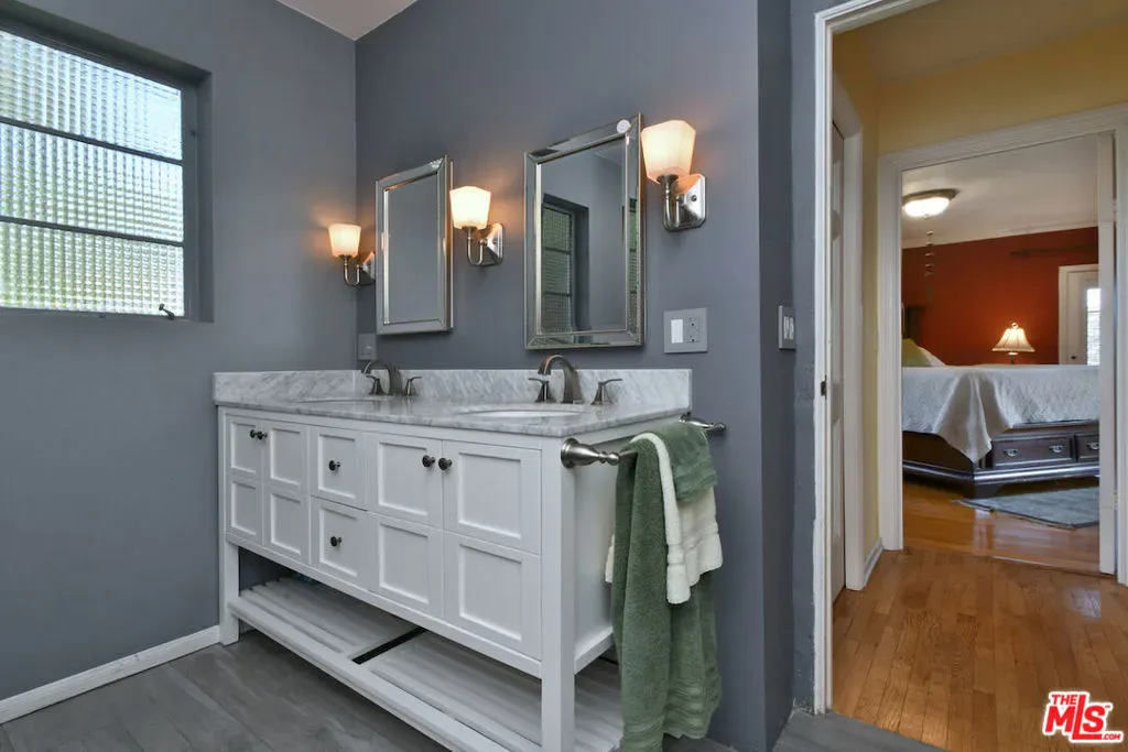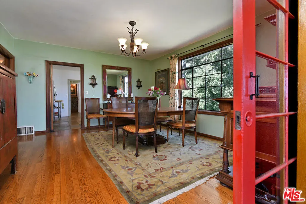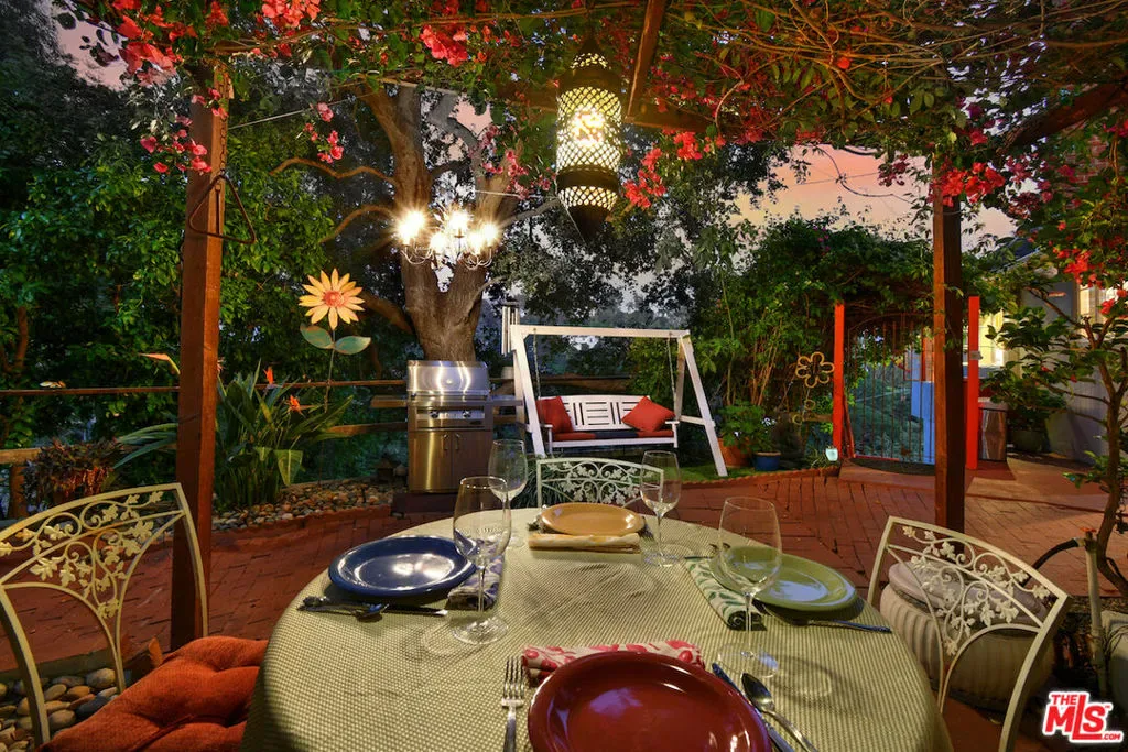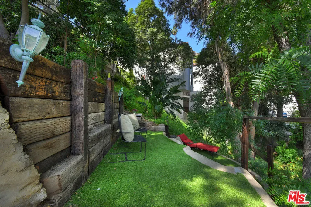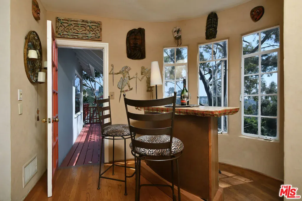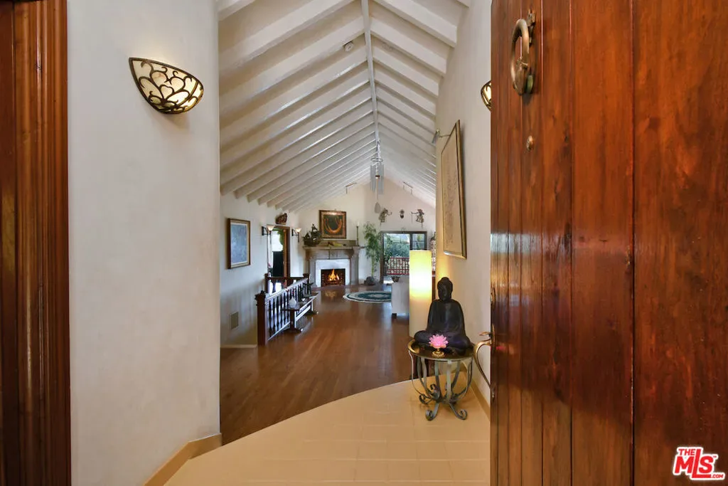 Welcome to the famed Hollywoodland enclave, where storybook style lives on today just as it has for over a century. This is a rare opportunity to reside in “The Enchanted Cottage,” a historic and whimsical retreat complete with its very own turret. If you have ever dreamed of living in a character-filled home like those found in the fairy tales of your childhood, this is that dream realized. Nestled beneath the iconic Hollywood Sign in Beachwood Canyon, the site offers pure mountainside serenity while remaining only moments away from the city. The glamour of Hollywood’s heyday is alive and well in this classic residence, which has been pristinely maintained and thoughtfully renovated. By floating the residence above the embankment like a castle, renowned architect W.L. Schmolle achieved a living environment that affords privacy, security, and stunning hillside views. Upon entering, you are greeted by soaring 14-foot Vaulted ceiling with grand wood beams in a living room anchored by a true wood-burning fireplace and expansive picture windows with views overlooking Griffith Park, the Hollywood Hills and all the way down to the Port of Long Beach. A cozy den offers a quiet respite, while the redesigned chef’s kitchen outfitted with an Italian Bertazzoni range, commercial-grade appliances, and stone counters will delight any culinary enthusiast. The formal dining room, featuring fanciful pocket doors, is both rustic and inviting for elegant dinner parties. This space leads to an impressive 450-square-foot, four-season outdoor deck that is half-covered and half-open-air, featuring its own brick wood-burning fireplace and panoramic views in every direction. Old-world craftsmanship is evident in every detail, from the hand-milled black walnut finishes to the leaded glass windows. Behind an obscure door, you will discover a hidden private bar within the turret; climb the ladder to find a circular meditation space and a secret bedroom nestled beneath a skylight for whimsical nights spent sleeping under the stars. The expansive primary retreat offers views from every window, two large walk-in closets, and a Juliet balcony, while the redone main bath features dual marble sinks and heated floors. The property provides ample storage, including an apx. 600-square-foot East Coast-style attic and a wine room with a 170-bottle EuroCave. Additionally, an apx. 800-square-foot lower-level guest apartment featuring a rare, vintage red color O’Keefe & Merritt stove and a clawfoot tub in the full bath offers a private entrance perfect for a home office, creative studio, or potential rental. Outside, a terraced personal park with fruit trees, meandering pathway, a raised-bed vegetable garden, and private patios shaded by a 100-year-old oak tree invites a sustainable lifestyle. A few steps past your next door neighbor you can walk down one of the six hidden, historic 1920″s Stone Beachwood Canyon Steps that brings you to the charming Beachwood Village Square with its shops, grocery market, and the world Famous Beachwood Canyon Cafe. Hiking trails to Lake Hollywood are right outside your front door, as well as close by access to horseback riding at Sunset Ranch Hollywood. A One-of-a Kind Enchanting Retreat-not to be missed. An opportunity like this to own a piece of history doesn’t come around every day. Lot next door is 2890 Belden and is priced at $249,000 which is the personal park adjacent to the home. This is a bundled offering; the residence and secondary parcel are inseparable components of this sale to ensure the seclusion, privacy and buffer zone of the estate-sized footprint in the heart of the neighborhood.