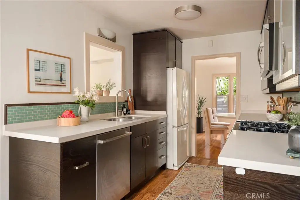 Once upon a time in the very heart of Silver Lake. The dreamiest bungalow circa 1926, with a pulse, personality, and bonus spaces galore. A stone’s throw to iconic neighborhood amenities, yet tucked away behind a redwood fence and lush landscaping, private, quiet, removed and restful. Inside, there’s space for everyone, with 2 huge bedrooms,1.5 bathrooms, plus a bonus guest suite and a bonus den. Original hardwood floors, arched transitions, coved ceilings, and generous closet and storage space throughout. Zellige tile in the stunning main bathroom mimics the garden greens, charming kitchen enjoys views of the hills, appliances by Whirlpool, Bosch and Insignia, and dedicated laundry space. Plus upgraded systems like 200 amp electrical panel, EV charger, new roof, new HVAC ducting, and more. Outside, plenty of vignettes for daydreaming and entertaining. Mature native gardens read like a real who’s who: Matilija poppies, rare coral bougainvillea, giant bird of paradise, lemon blossoms, and heirloom white-fruiting dragon fruit. Fully fenced and dog park adjacent for fur babies, and close to playgrounds, preschools and Micheltorena Street Elementary for human ones. The Swan Stairs are a treasured neighbor, and you’re just a block to the Silver Lake Reservoir, dog park, rec center, Meadows, and all of the vibey restaurants and stores on Silver Lake Blvd (Lamill, Botanica, L&E Oyster Bar). Over the hill to Sunset Junction, Silver Lake farmers market, Whole Foods, Trader Joe’s, and Erewhon. A perfectly positioned jump-off-spot for an artistic mover and shaker, in one of the most beloved and vibrant neighborhoods in Los Angeles. Nestled among multi million dollar homes, keeping the company of architectural royalty, and at a knockout price point. Come over, come see!